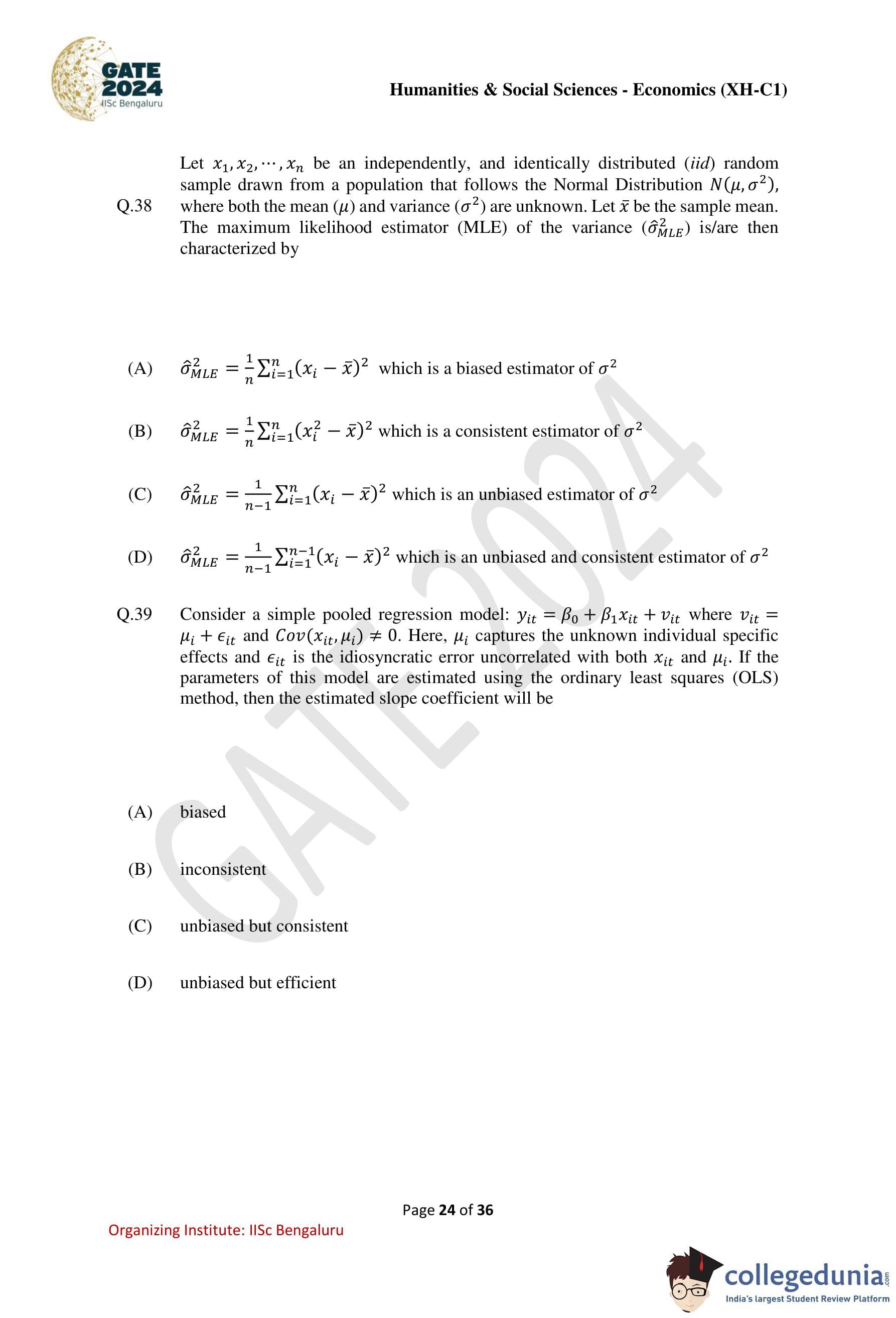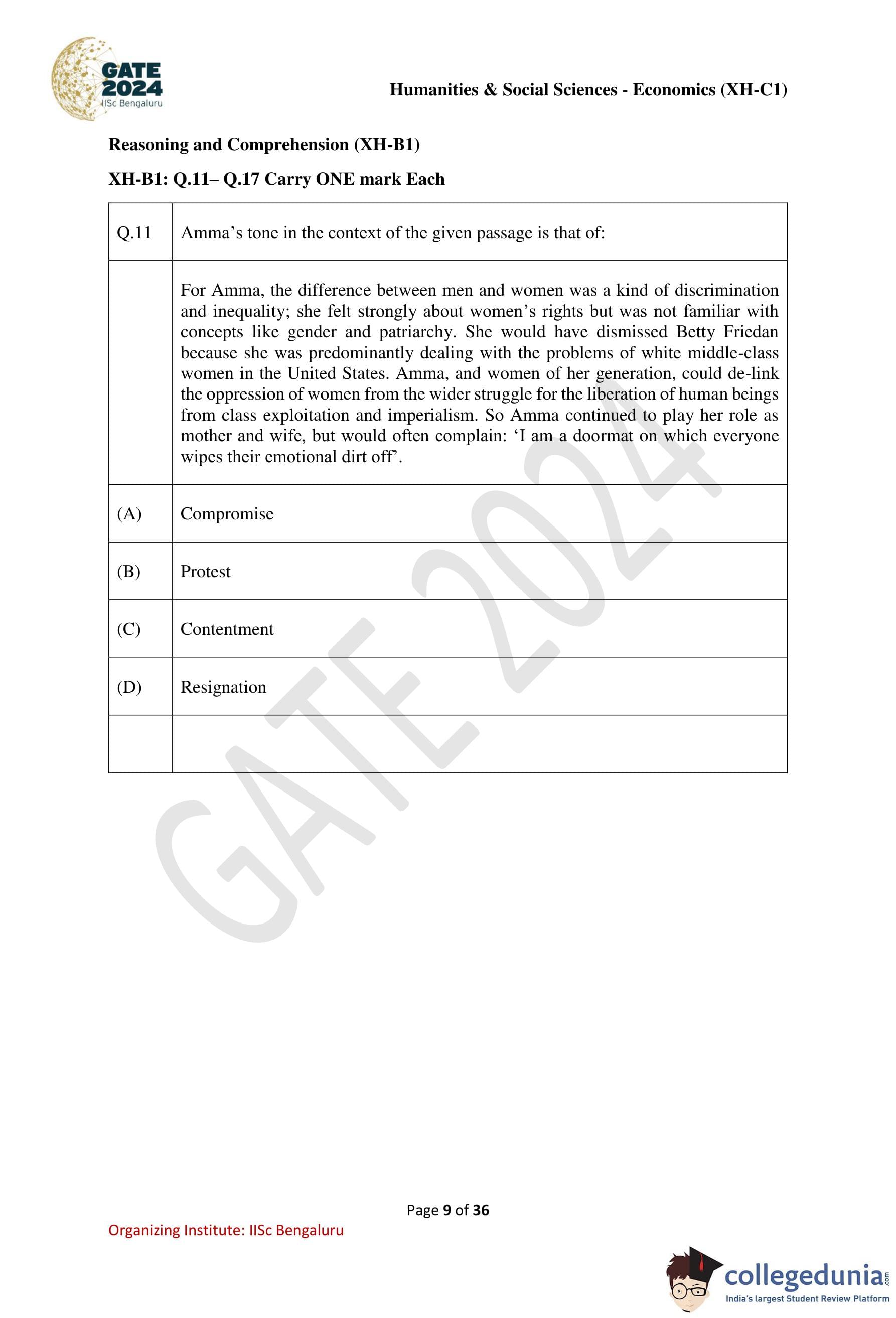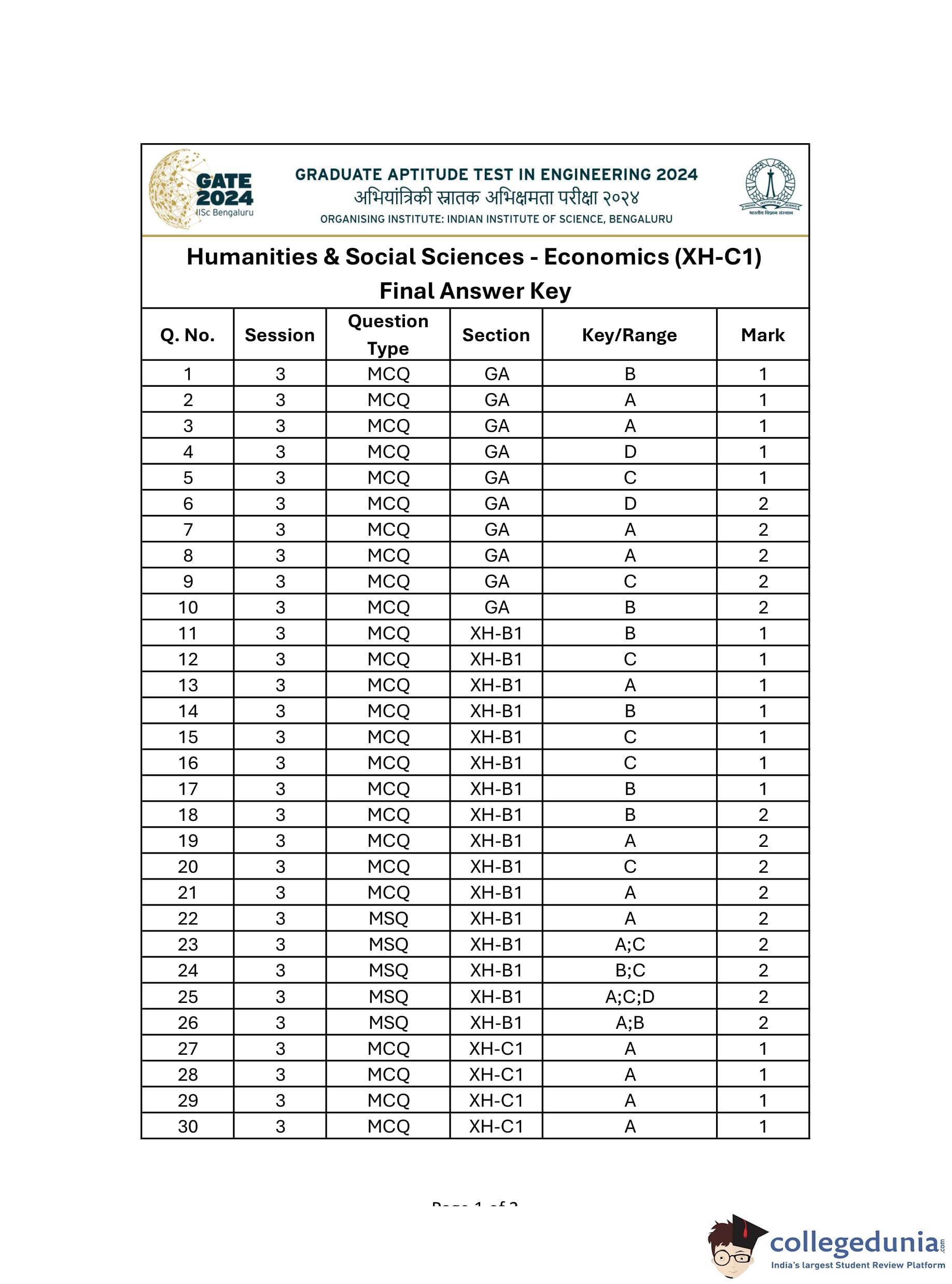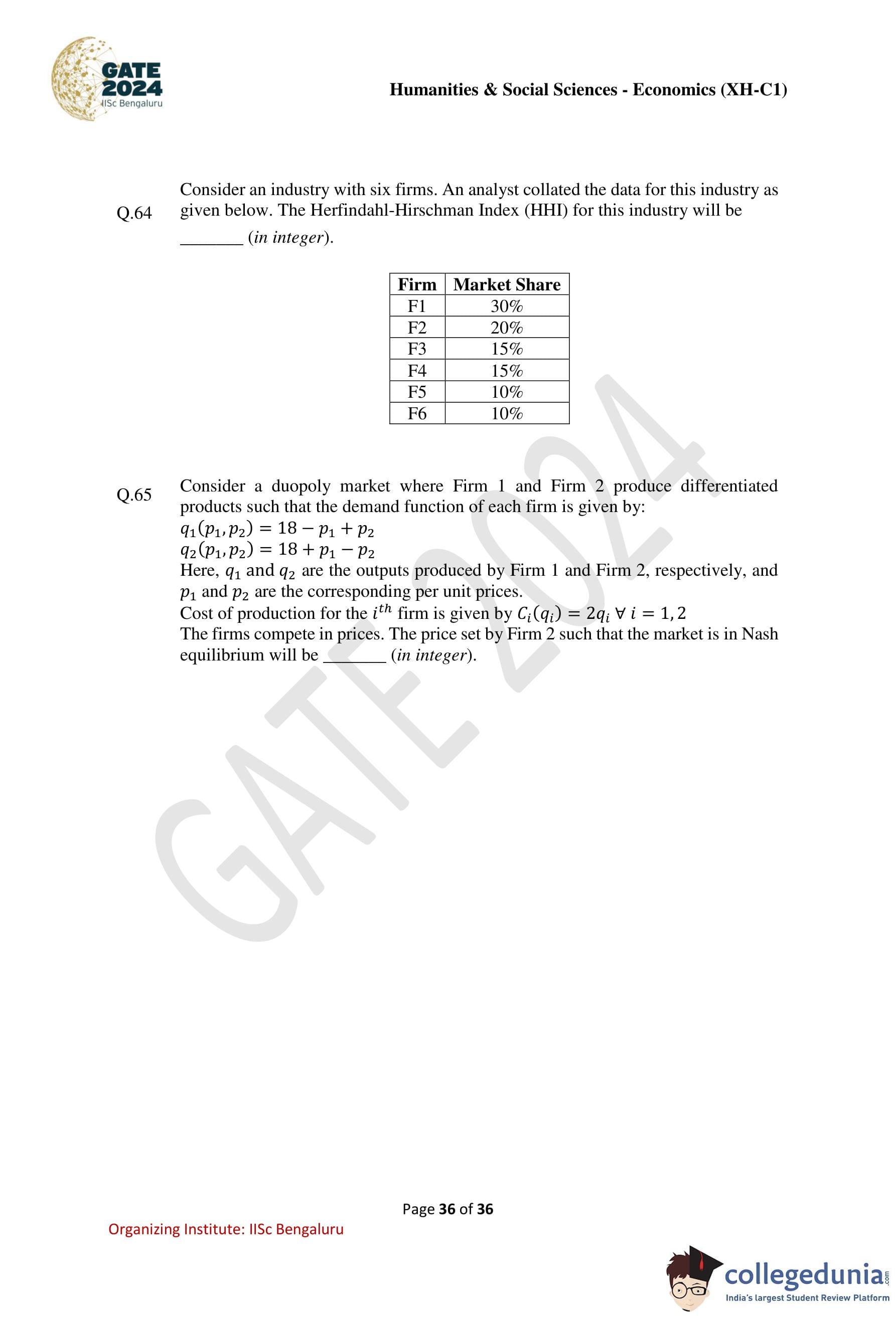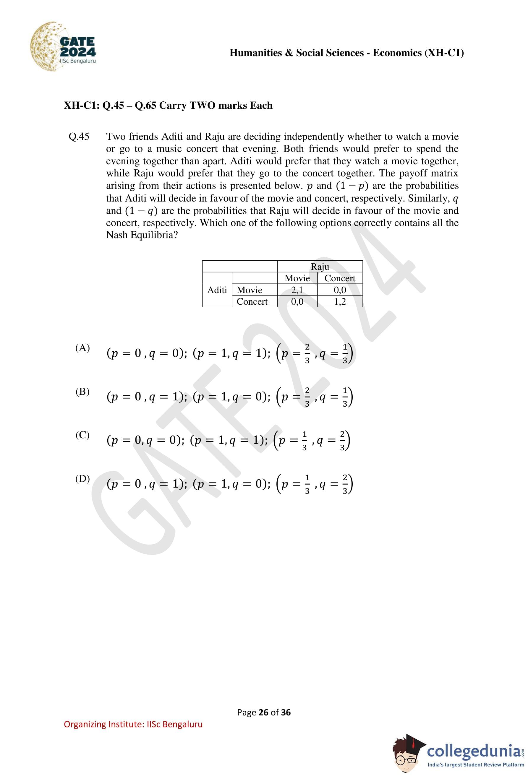 GATE 2024 Economics (XH-C1) Question Paper Solutions