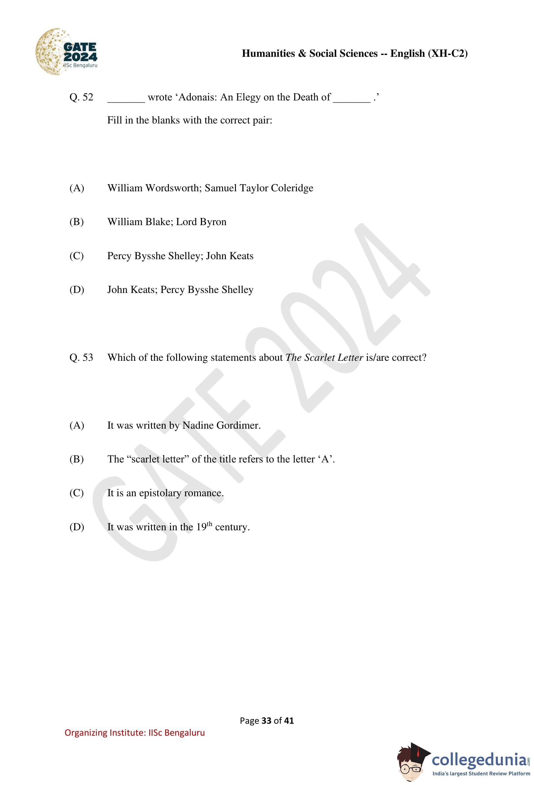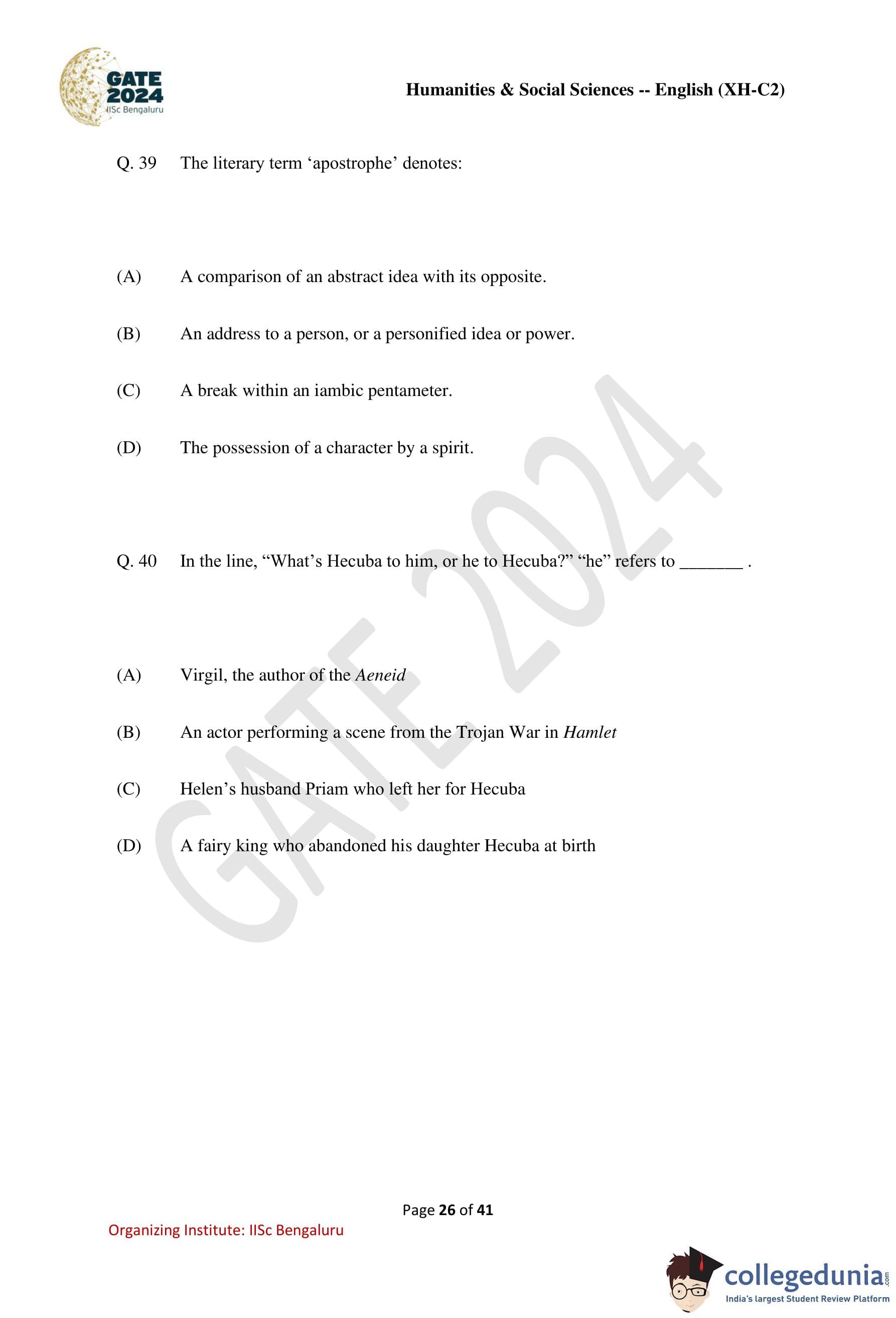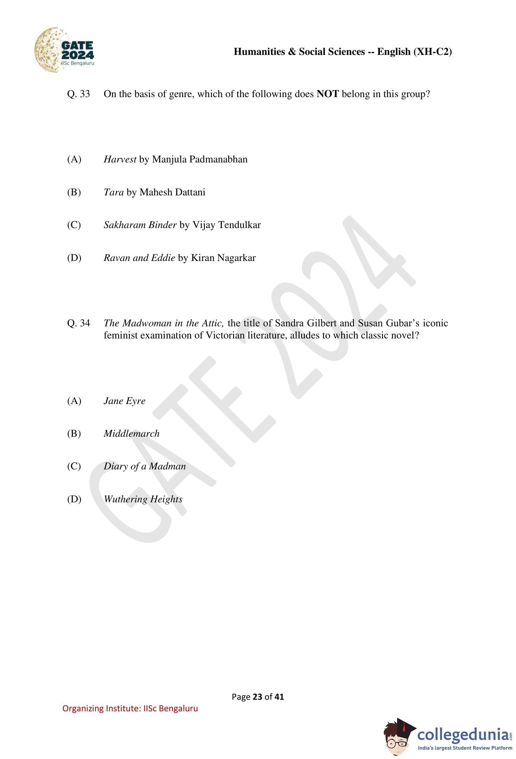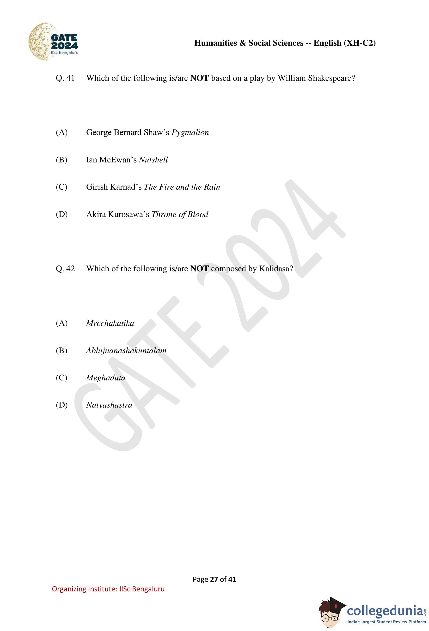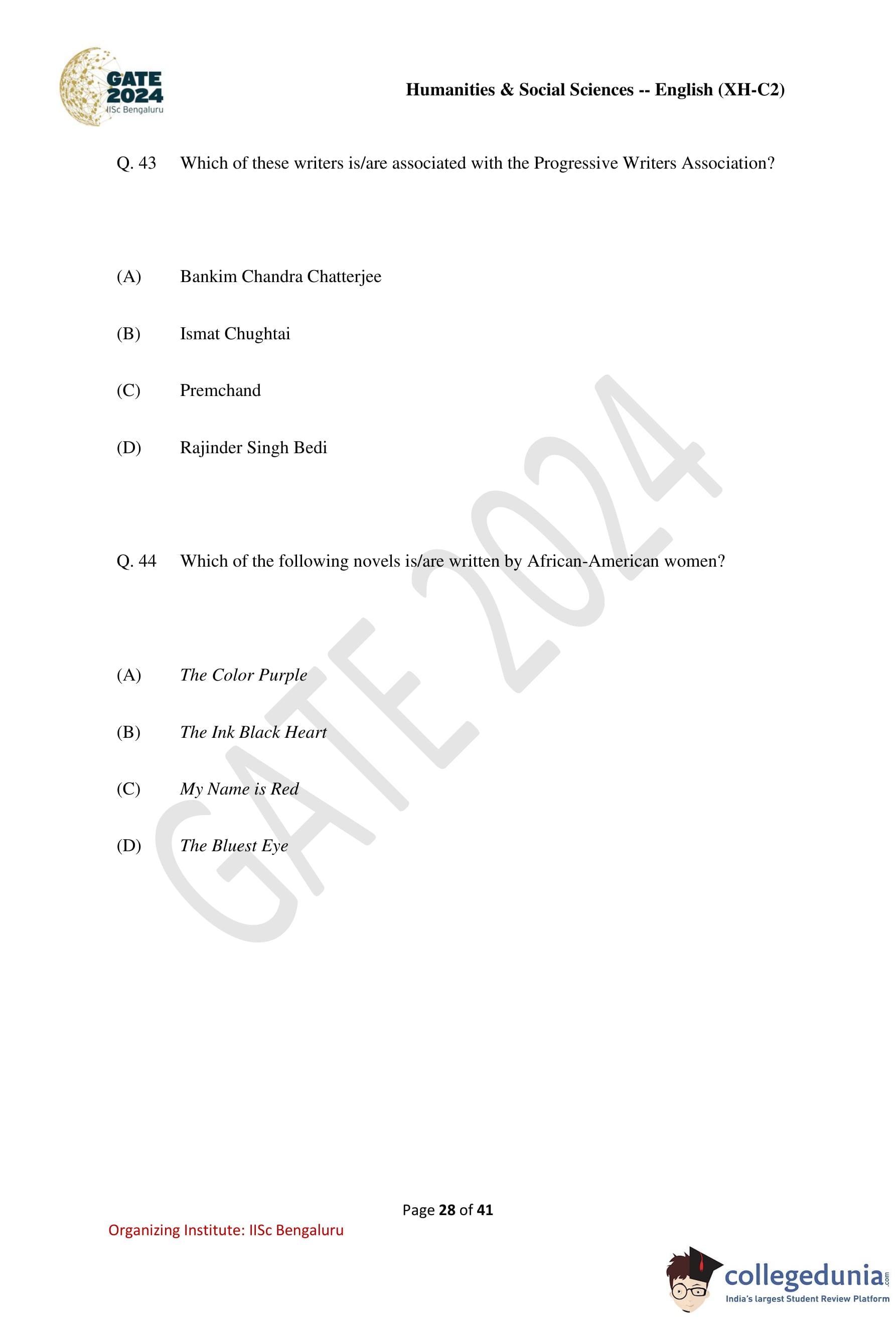 GATE 2024 English (XH-C2) Question Paper with Answer Key PDF