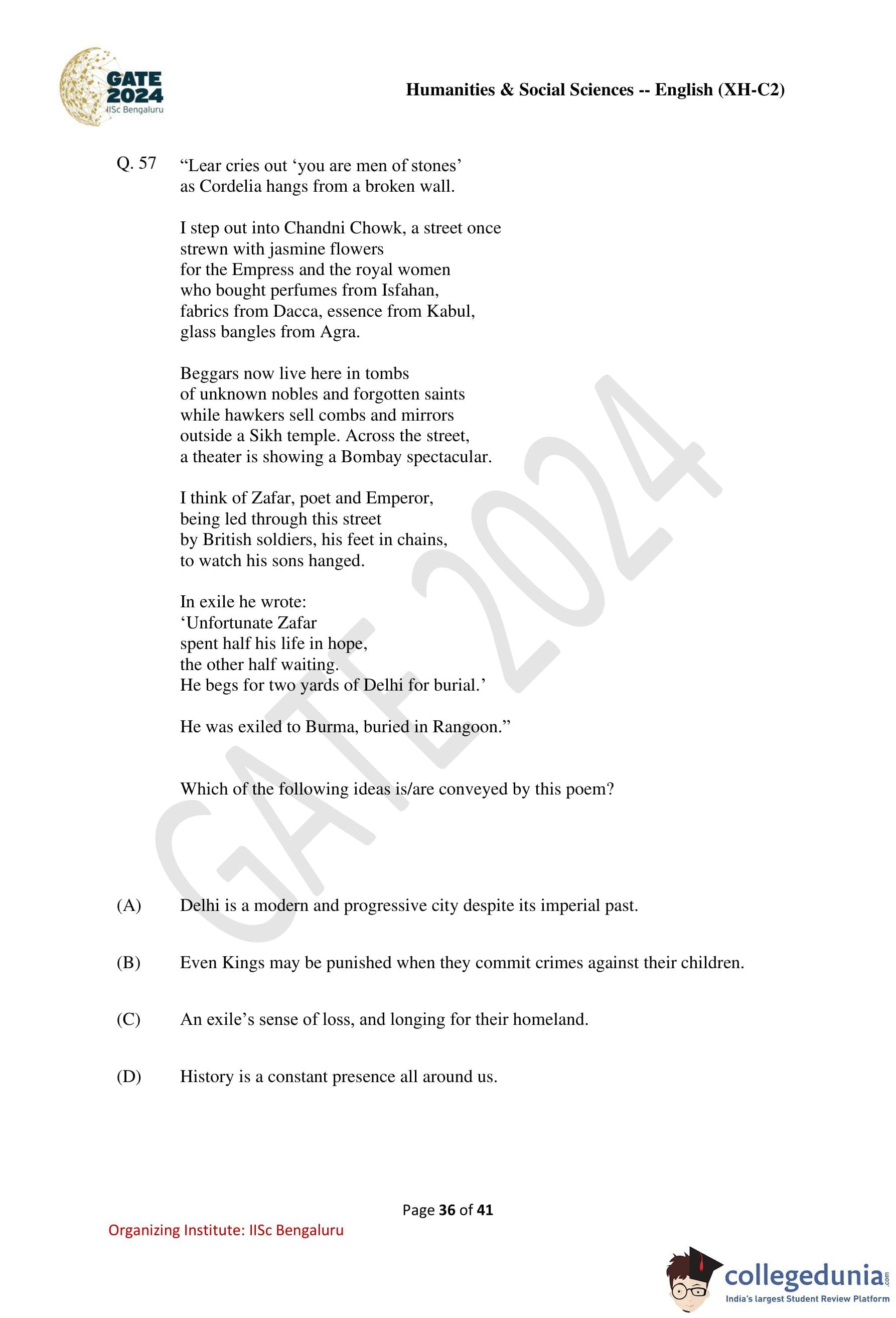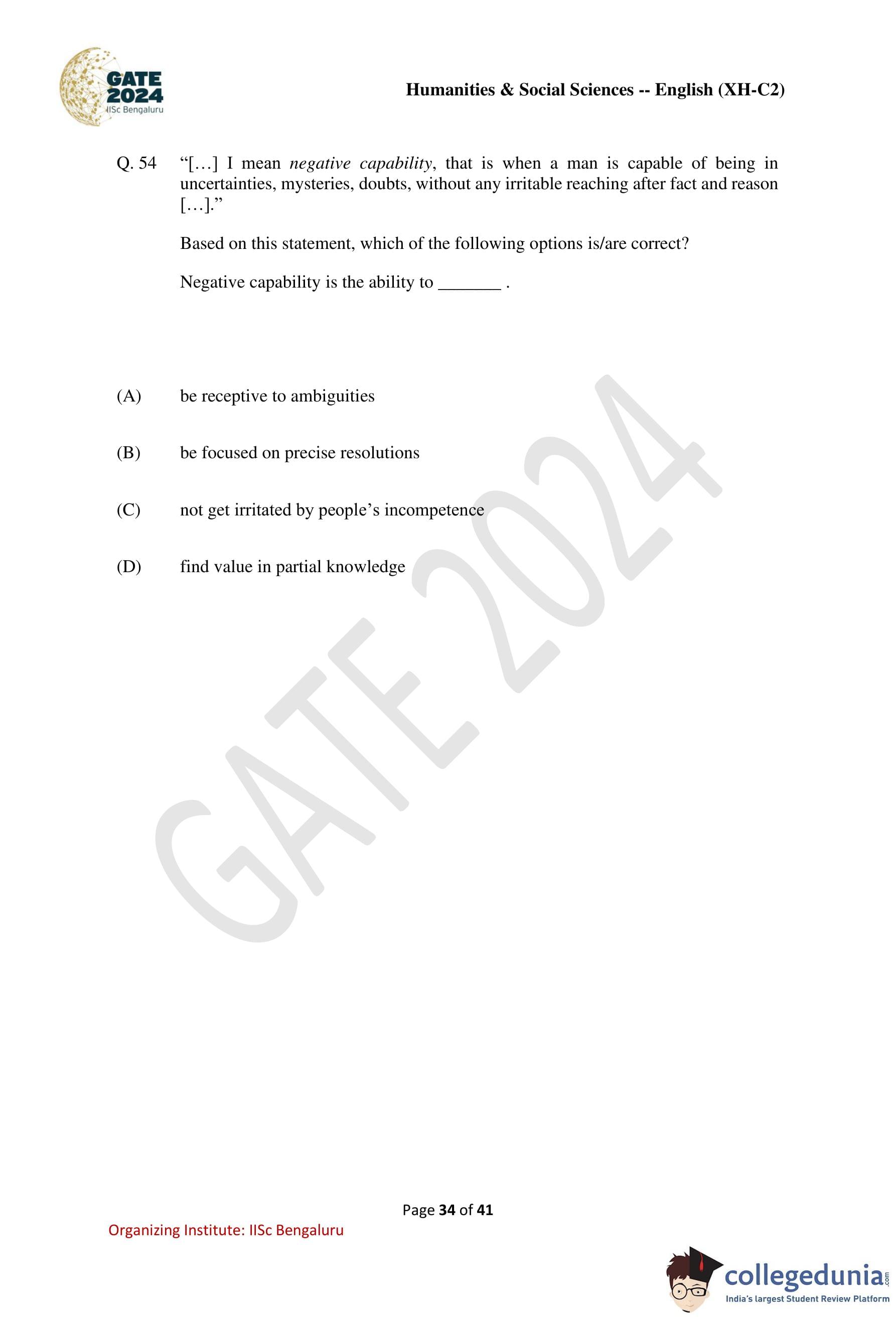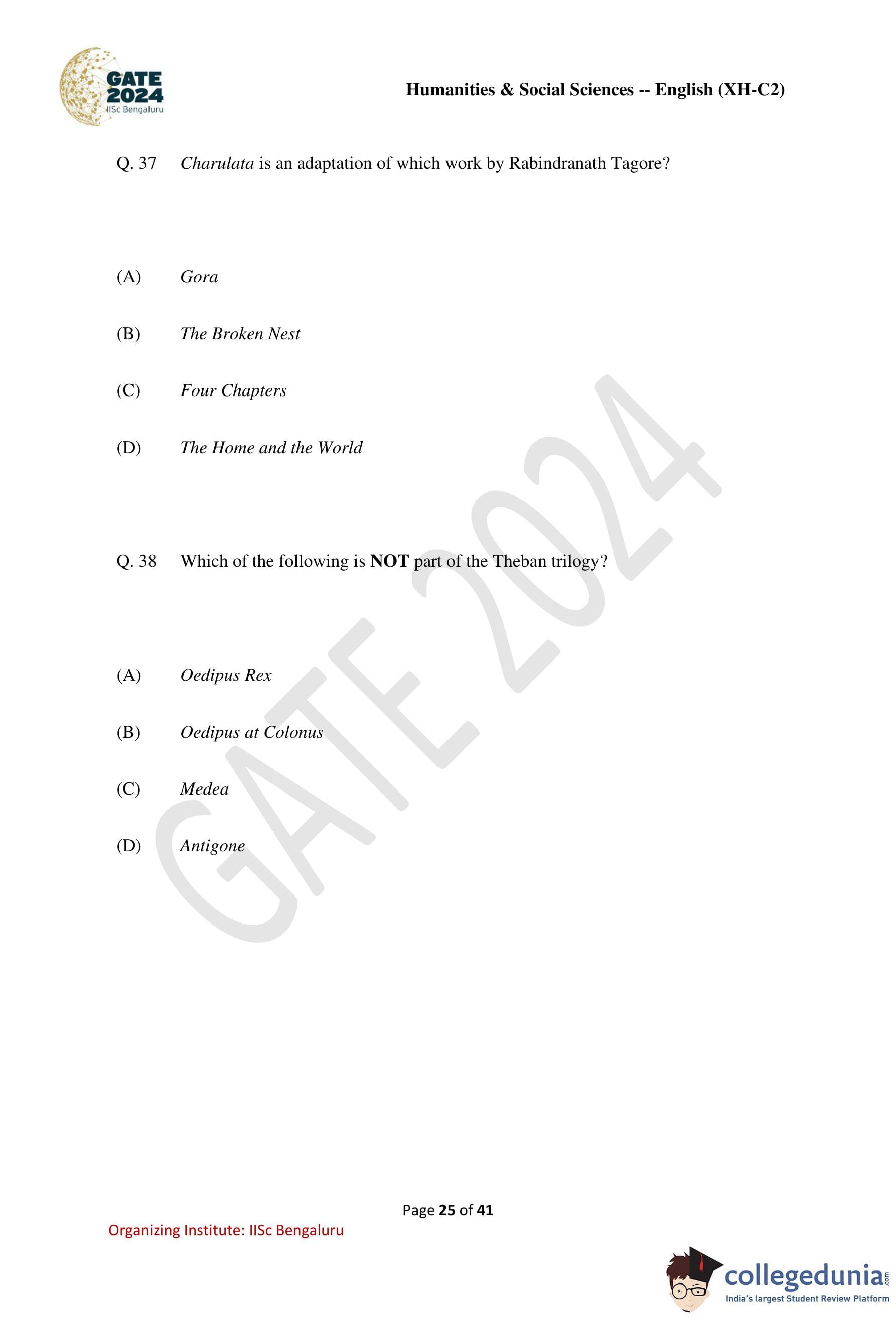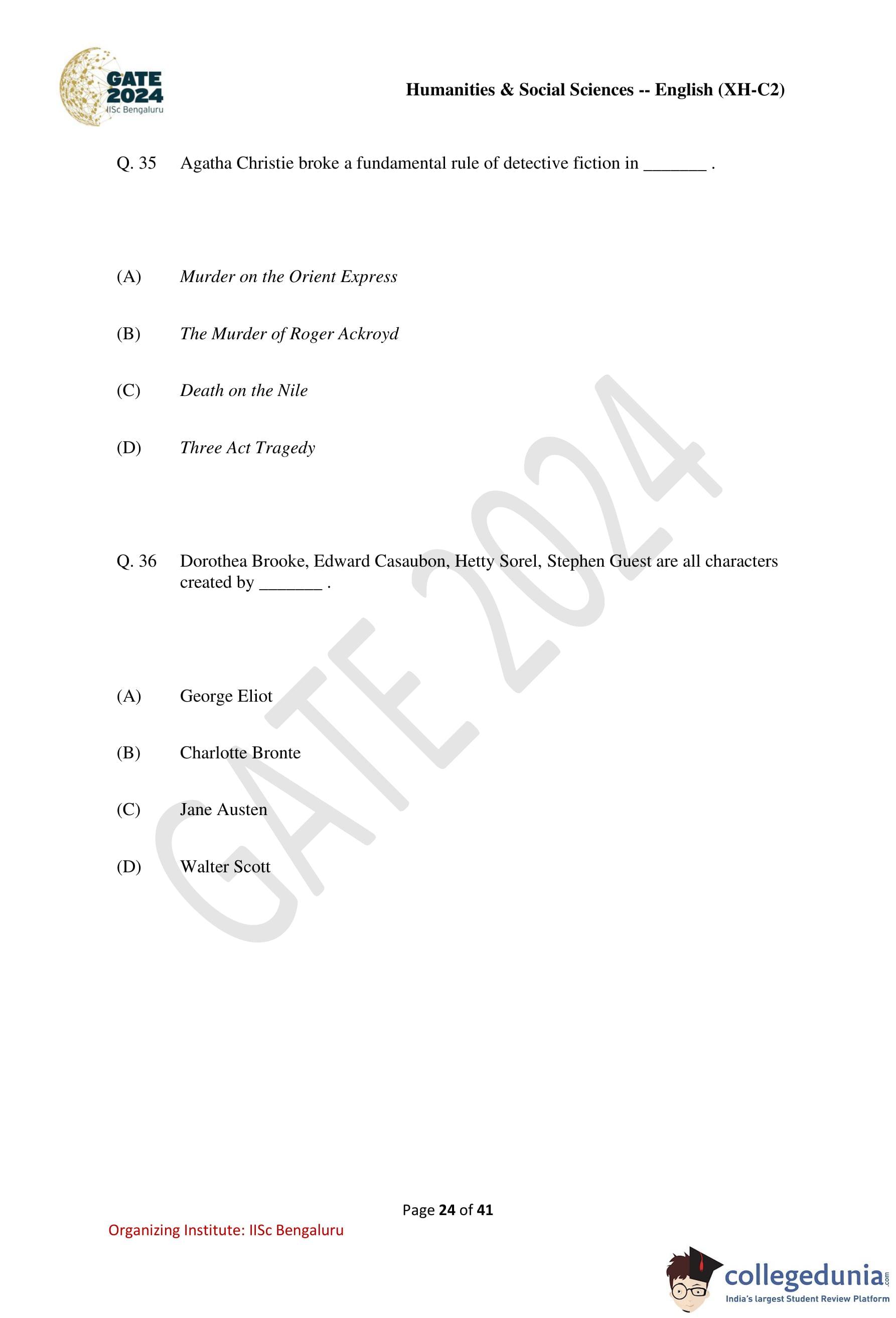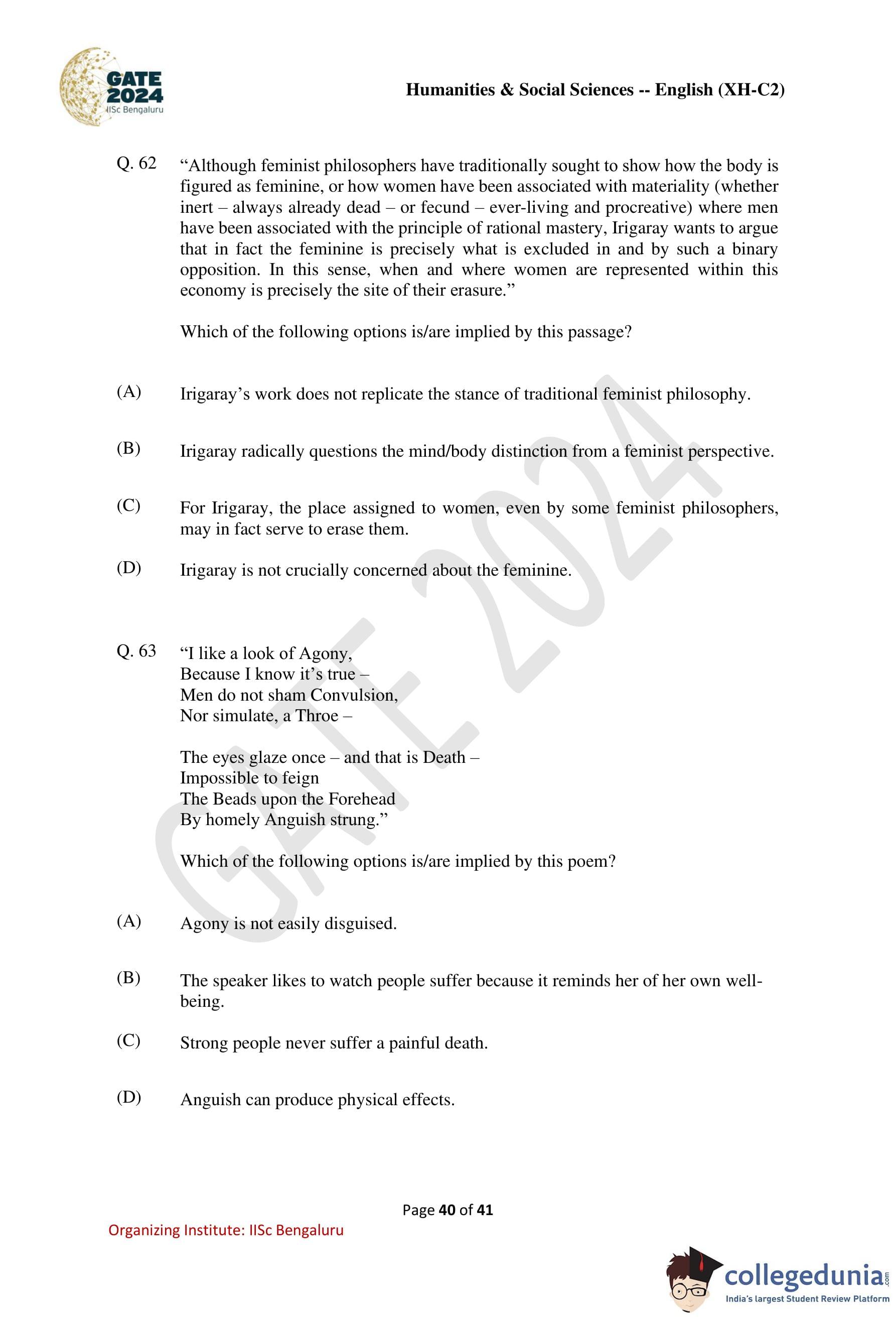 GATE 2024 English (XH-C2) Question Paper with Answer Key PDF