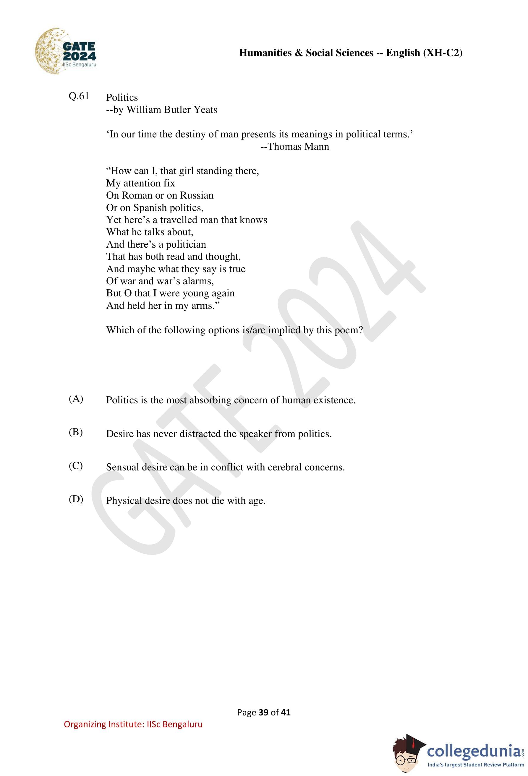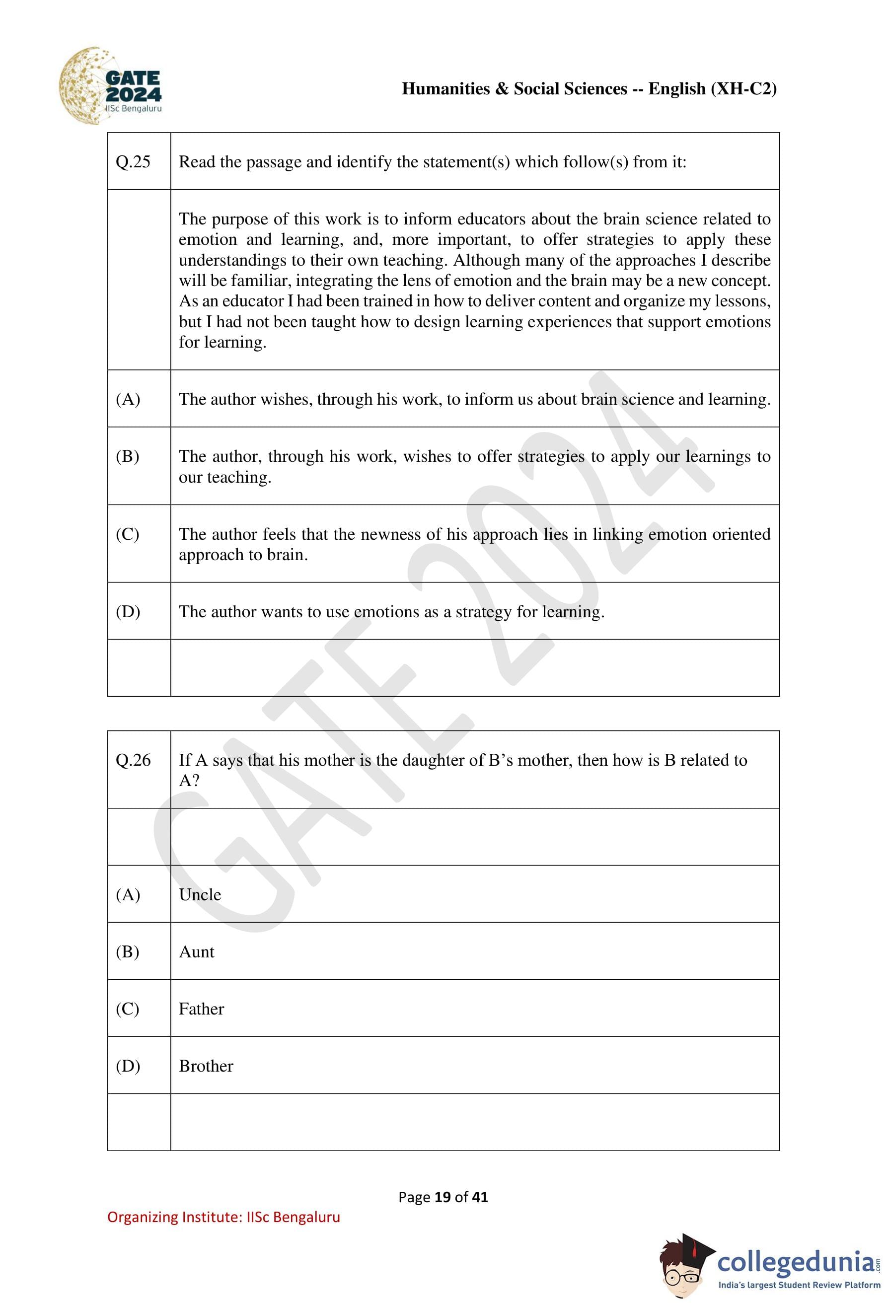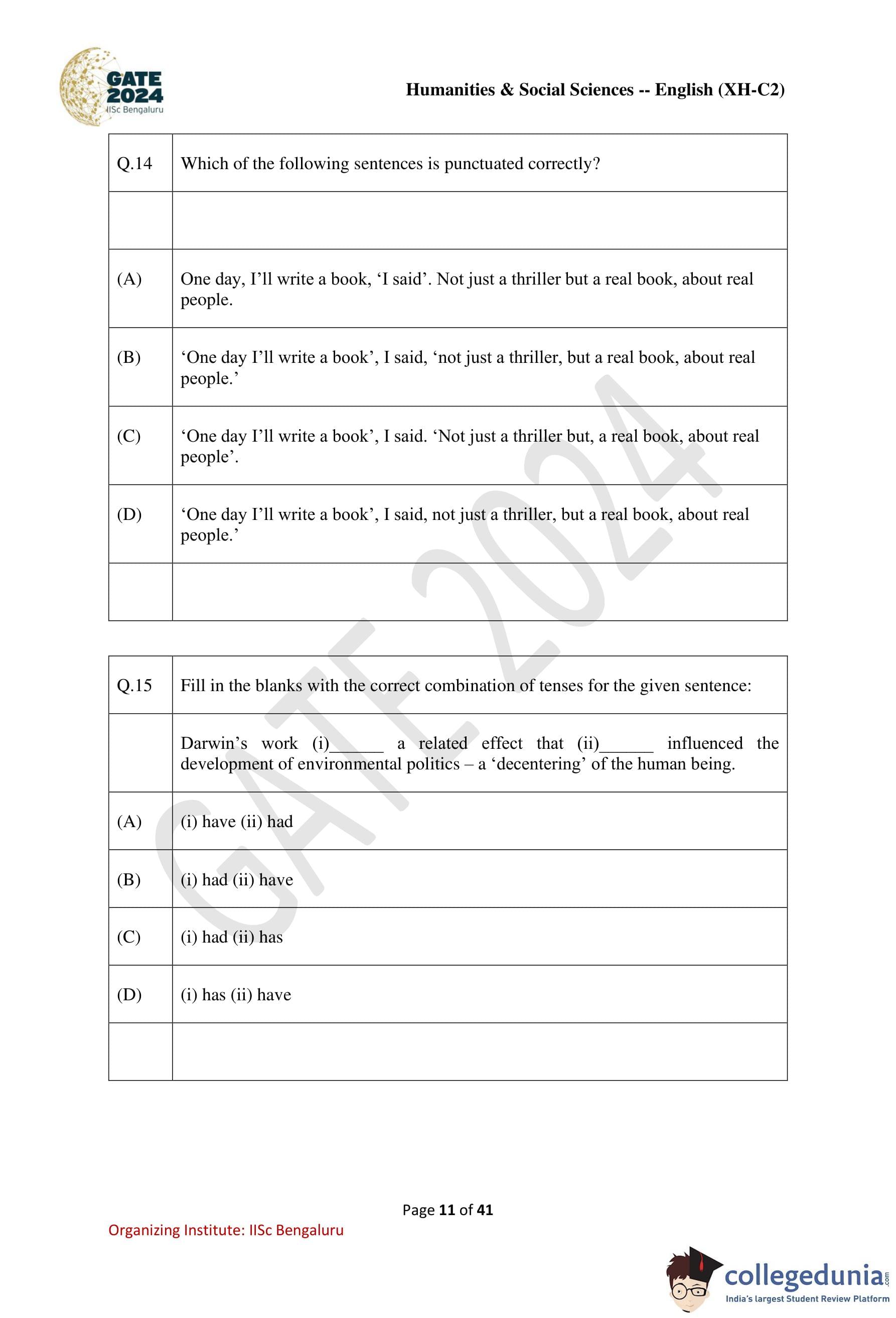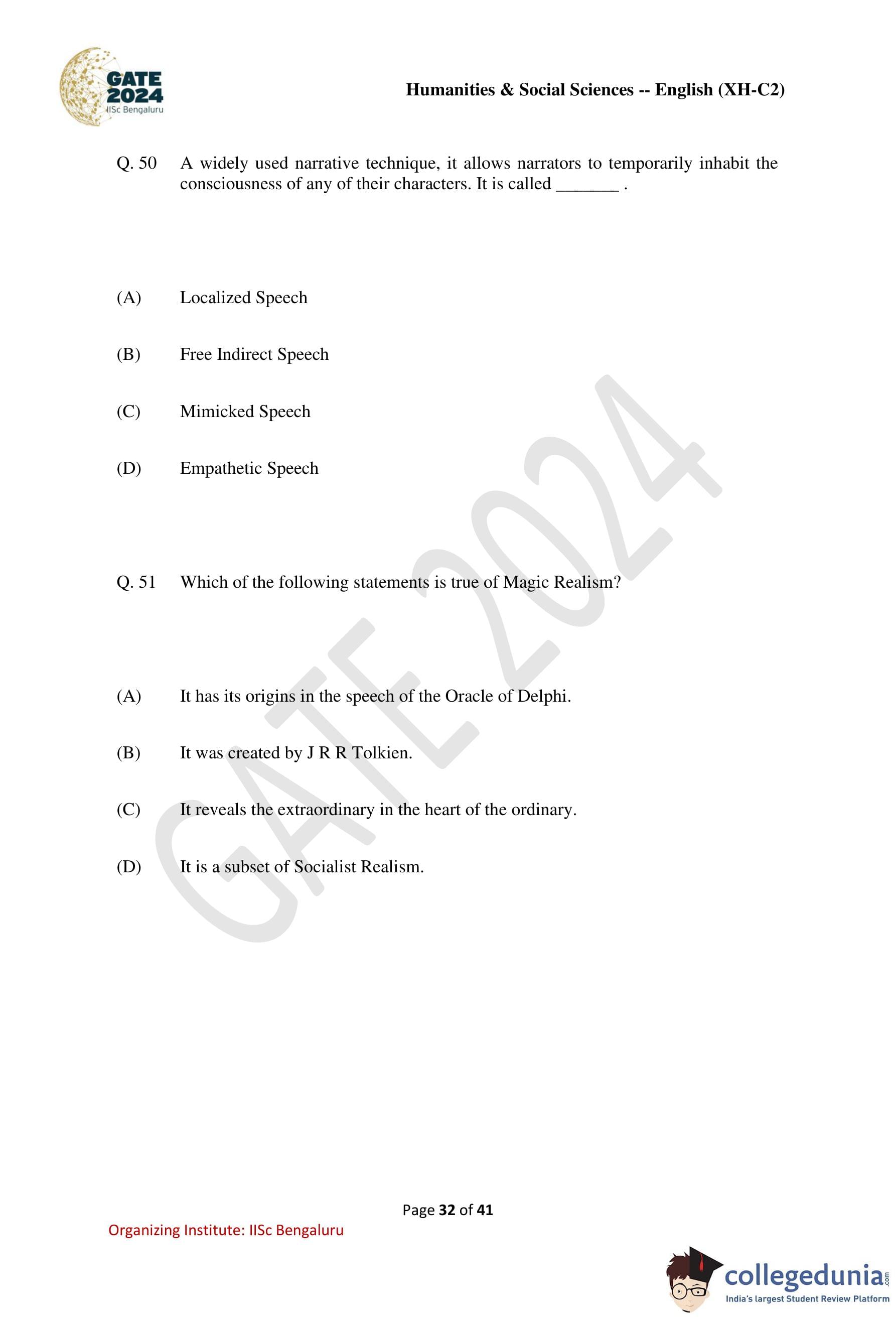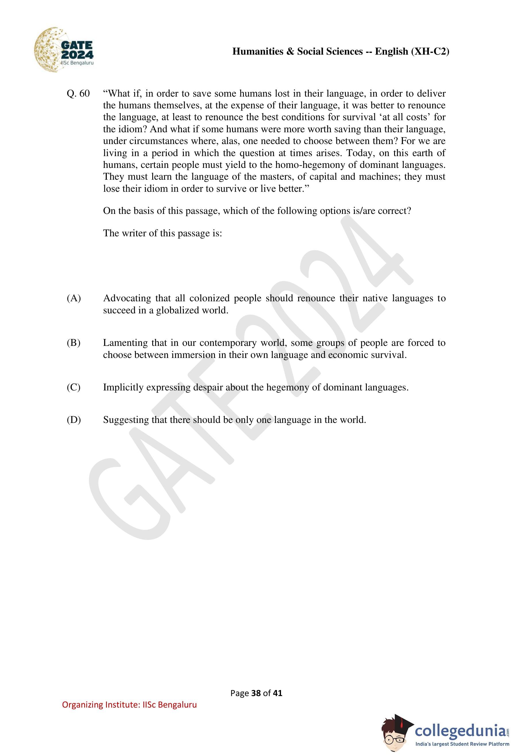 GATE 2024 English (XH-C2) Question Paper with Answer Key PDF