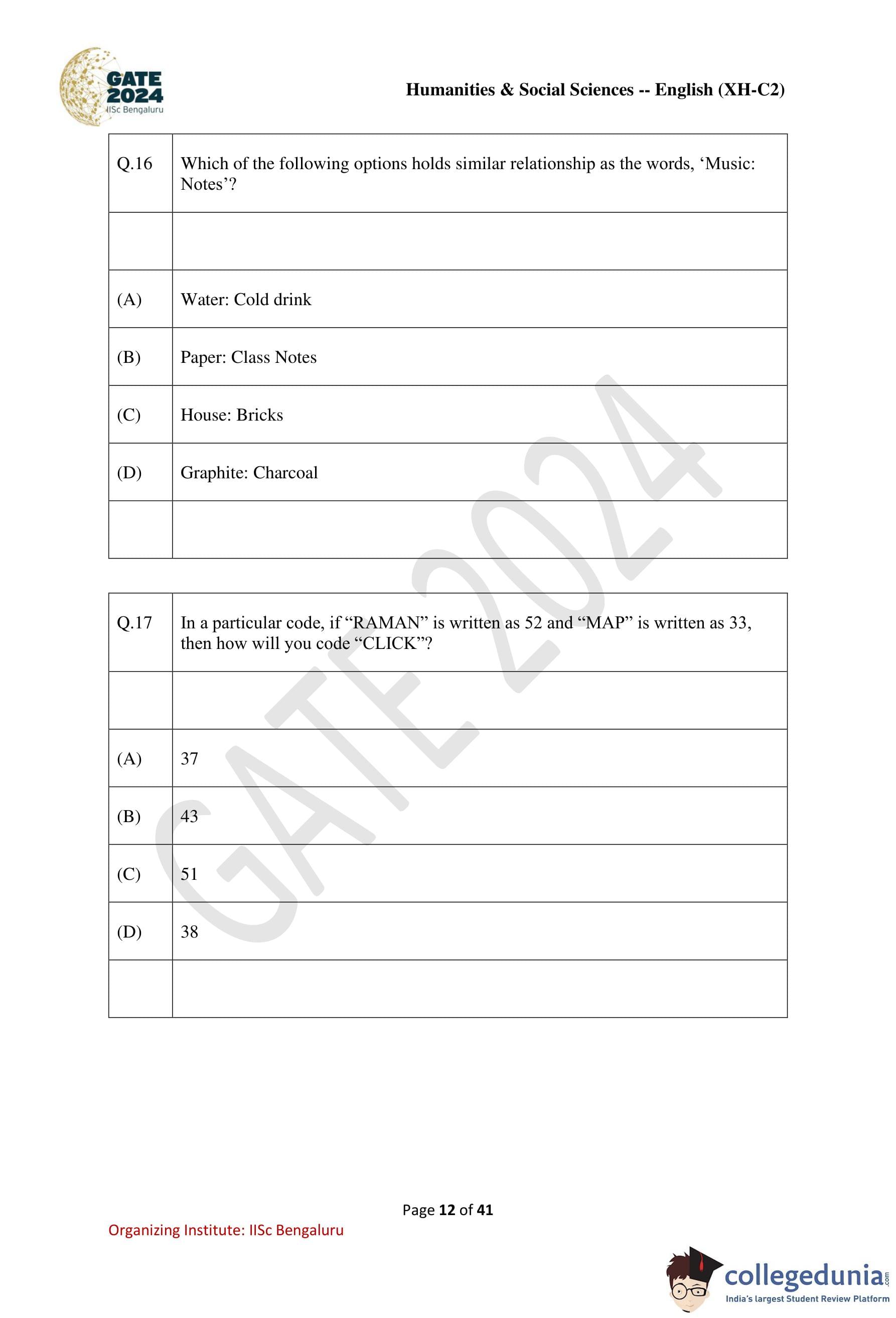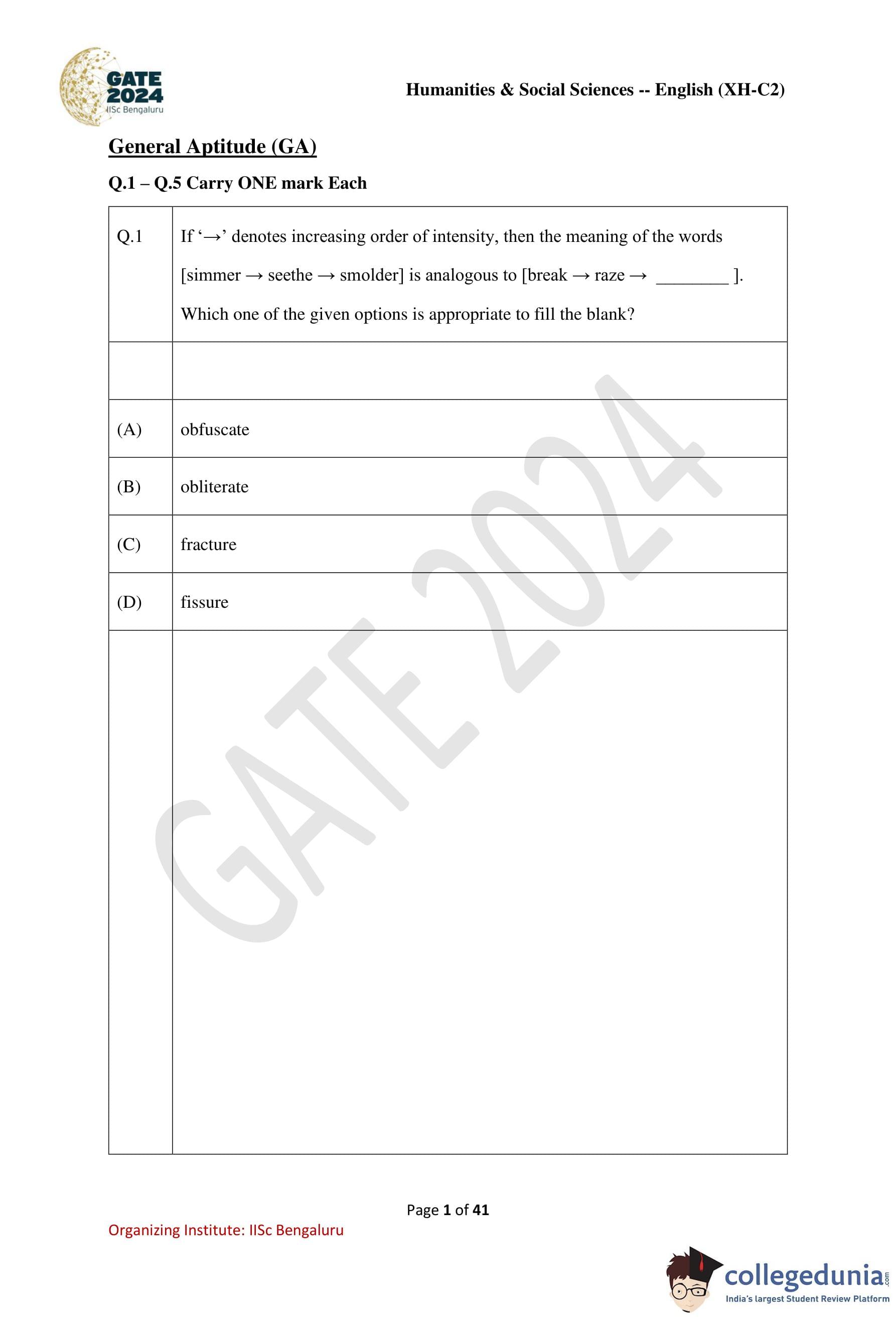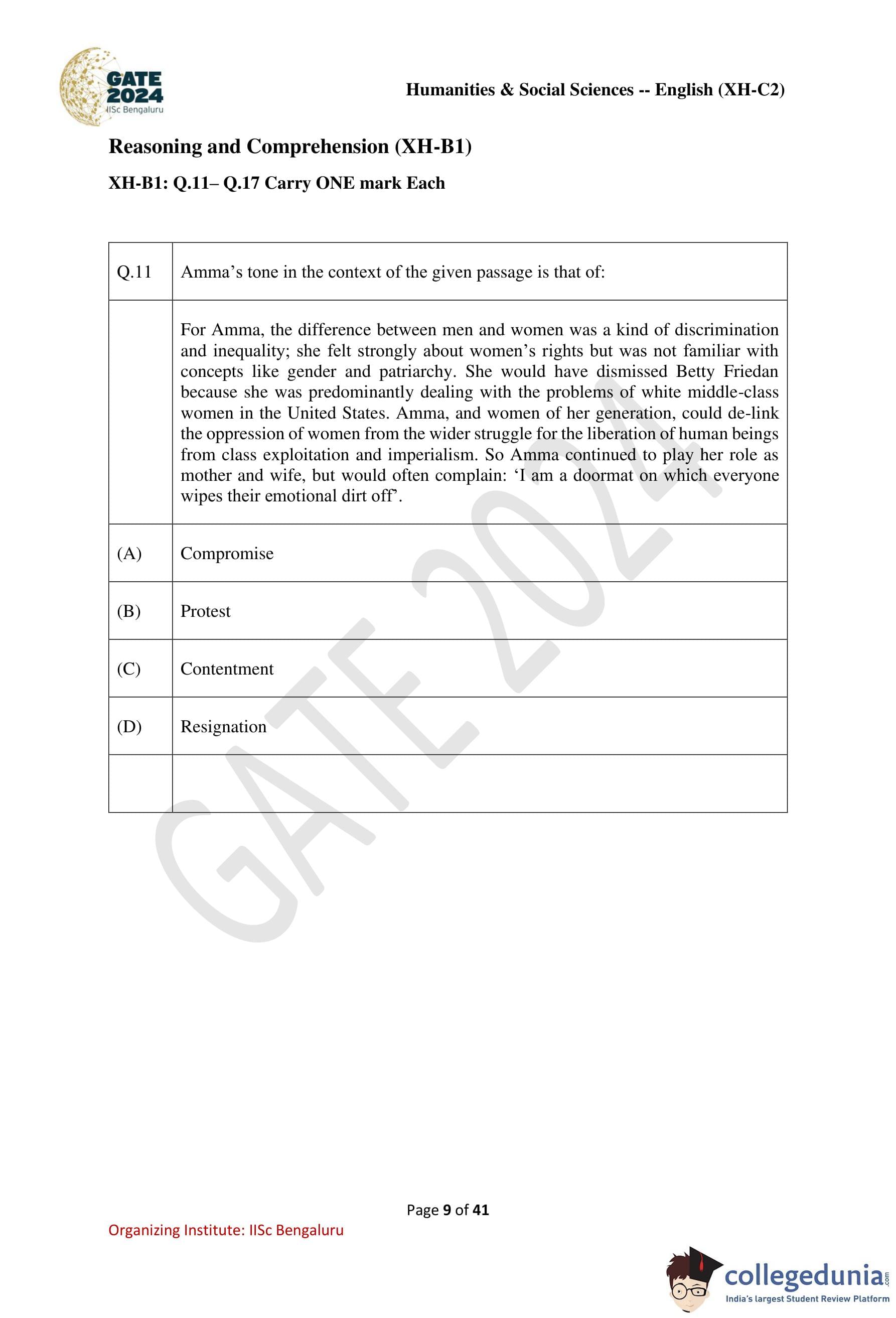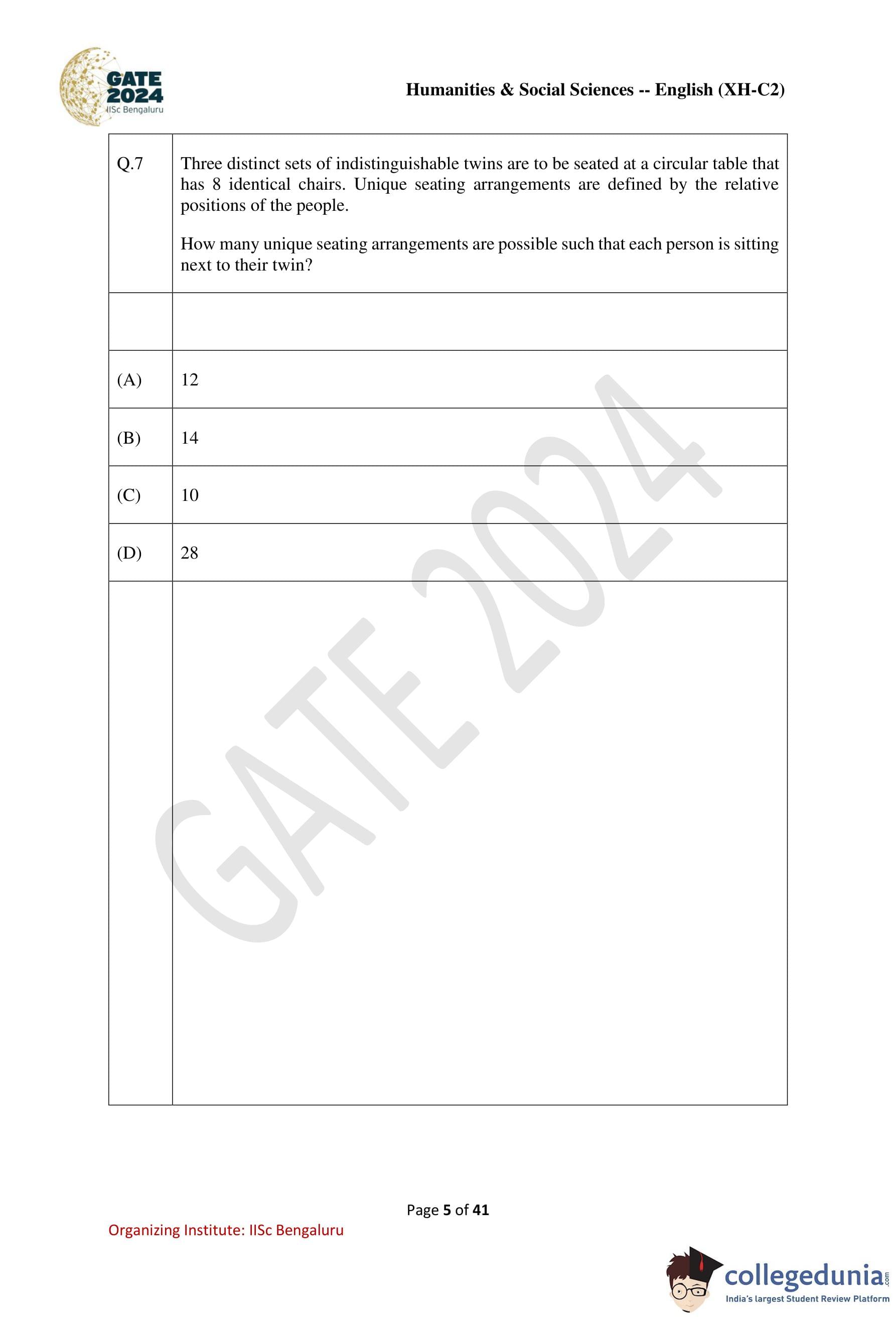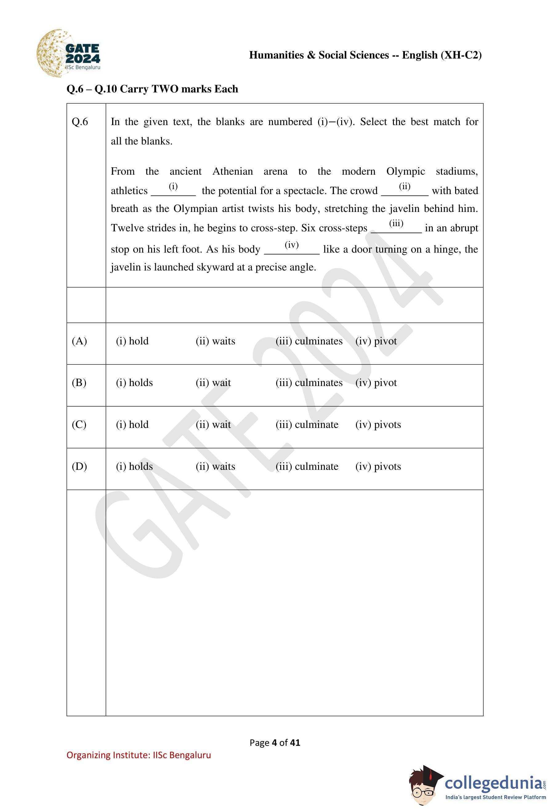 GATE 2024 English (XH-C2) Question Paper with Answer Key PDF