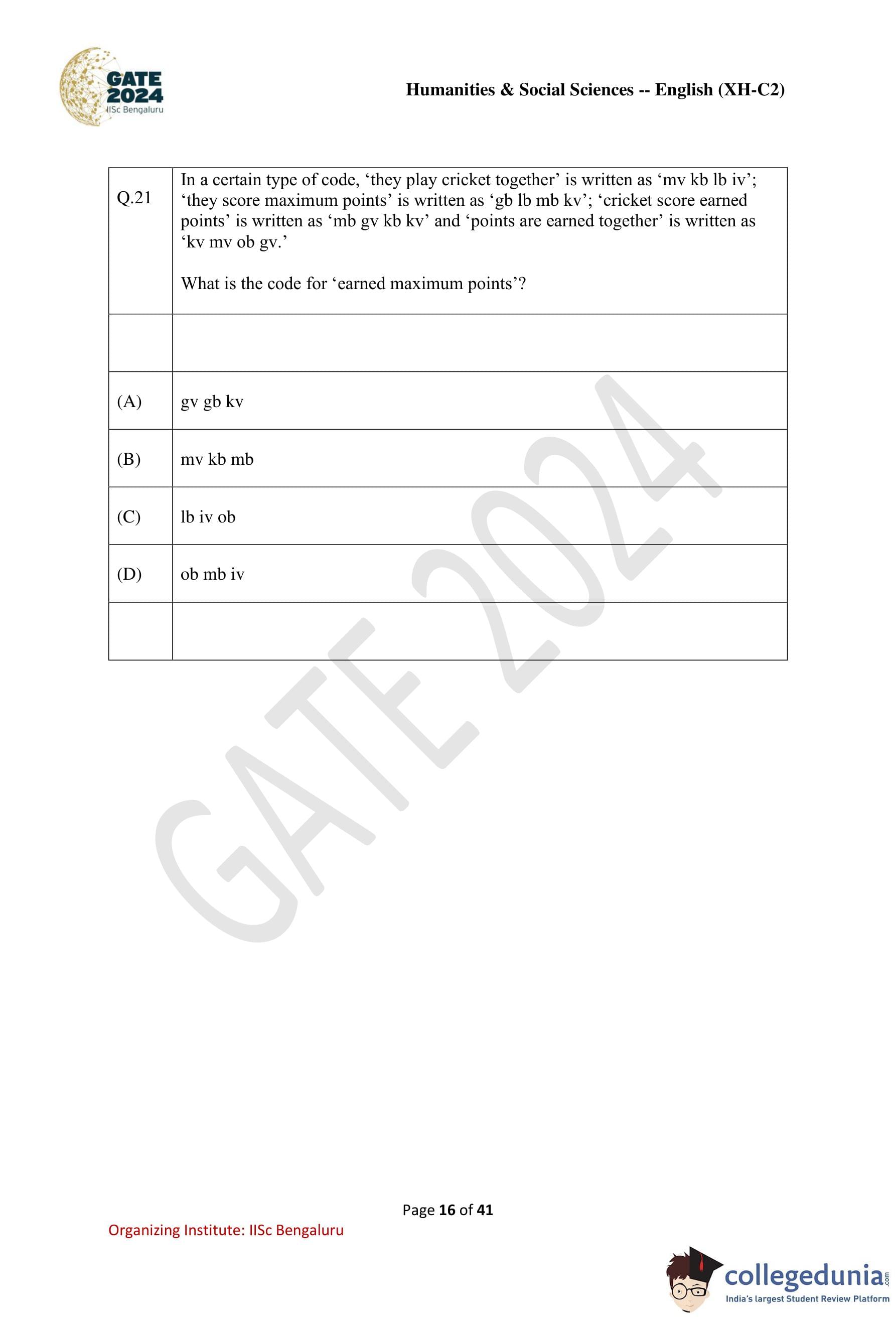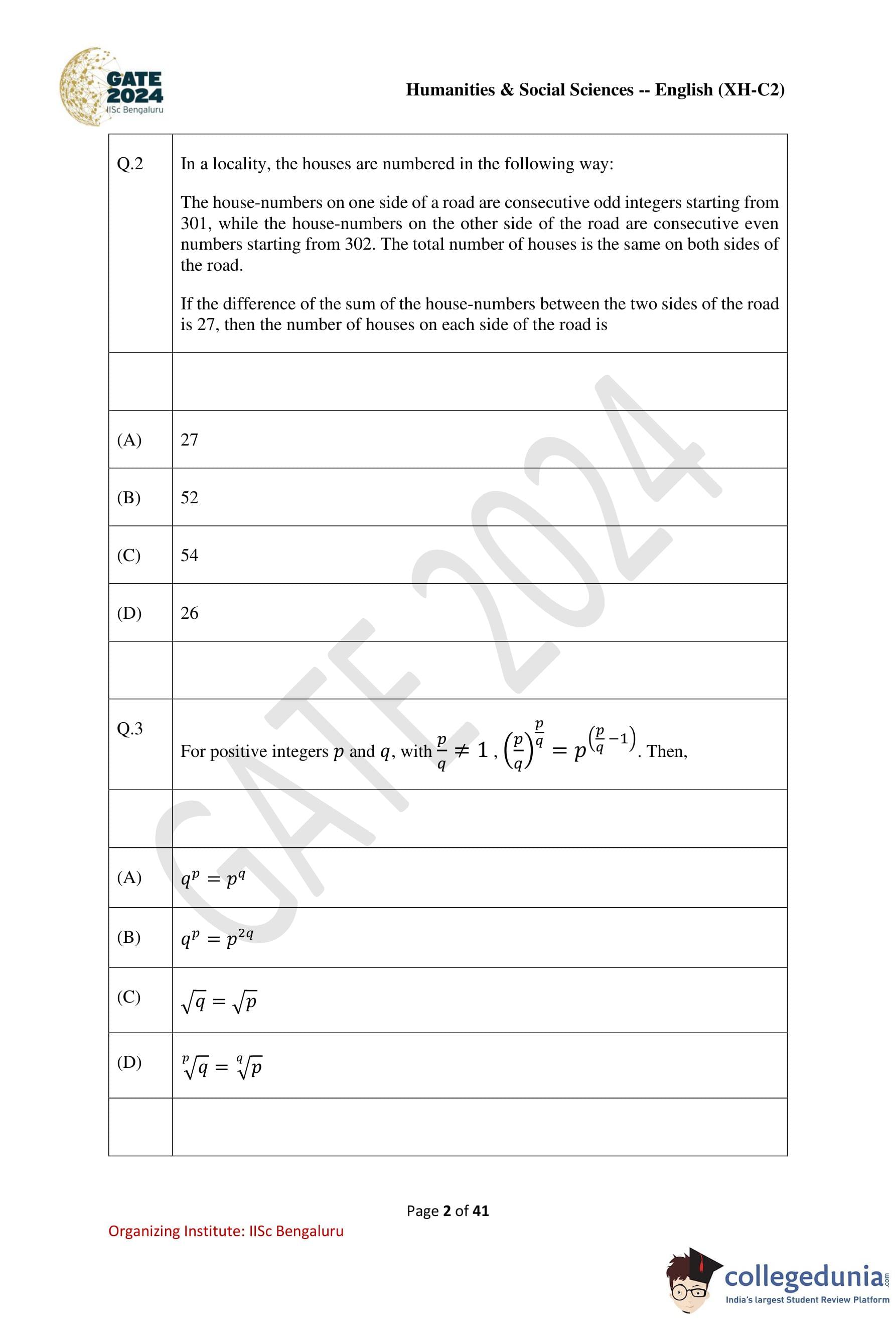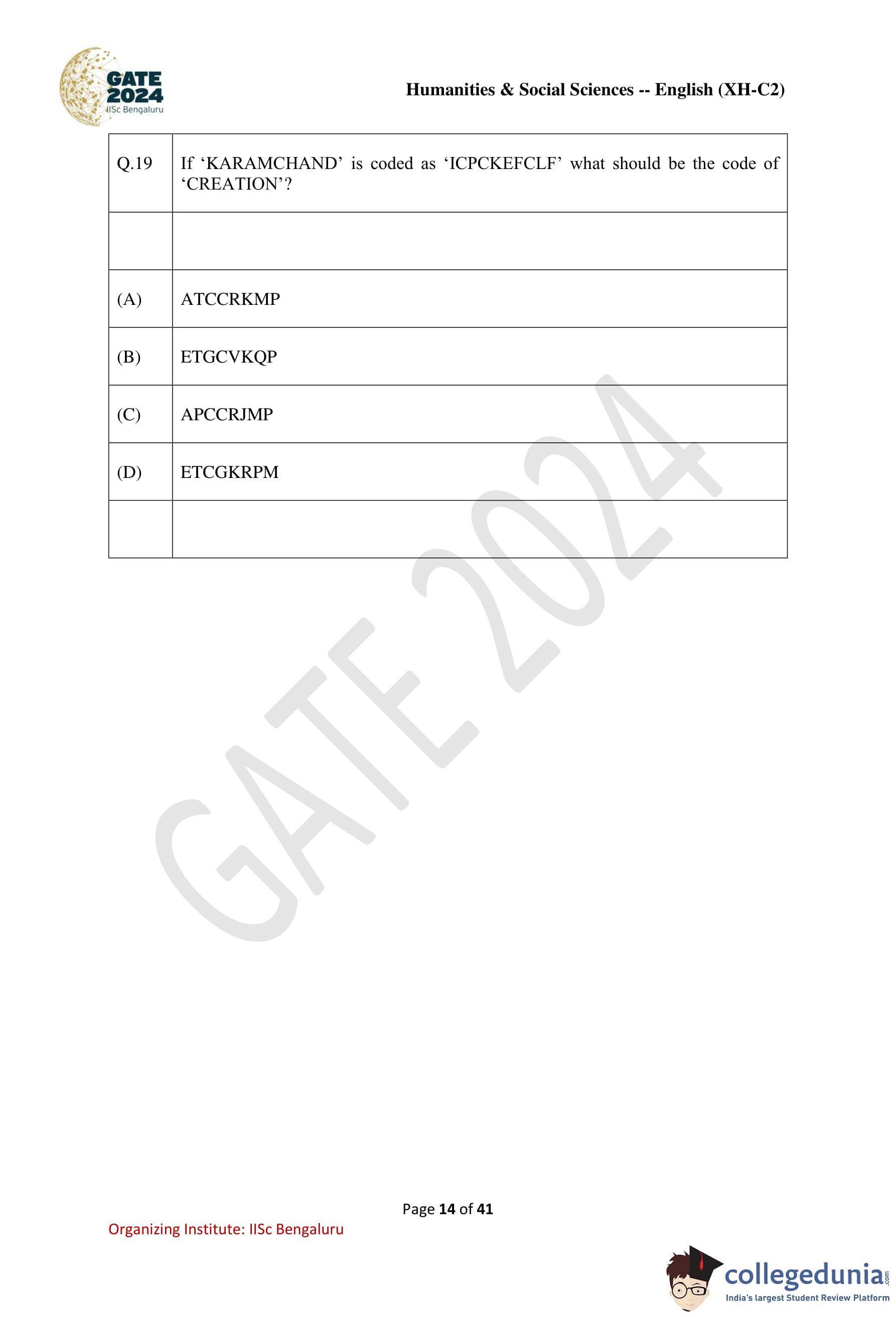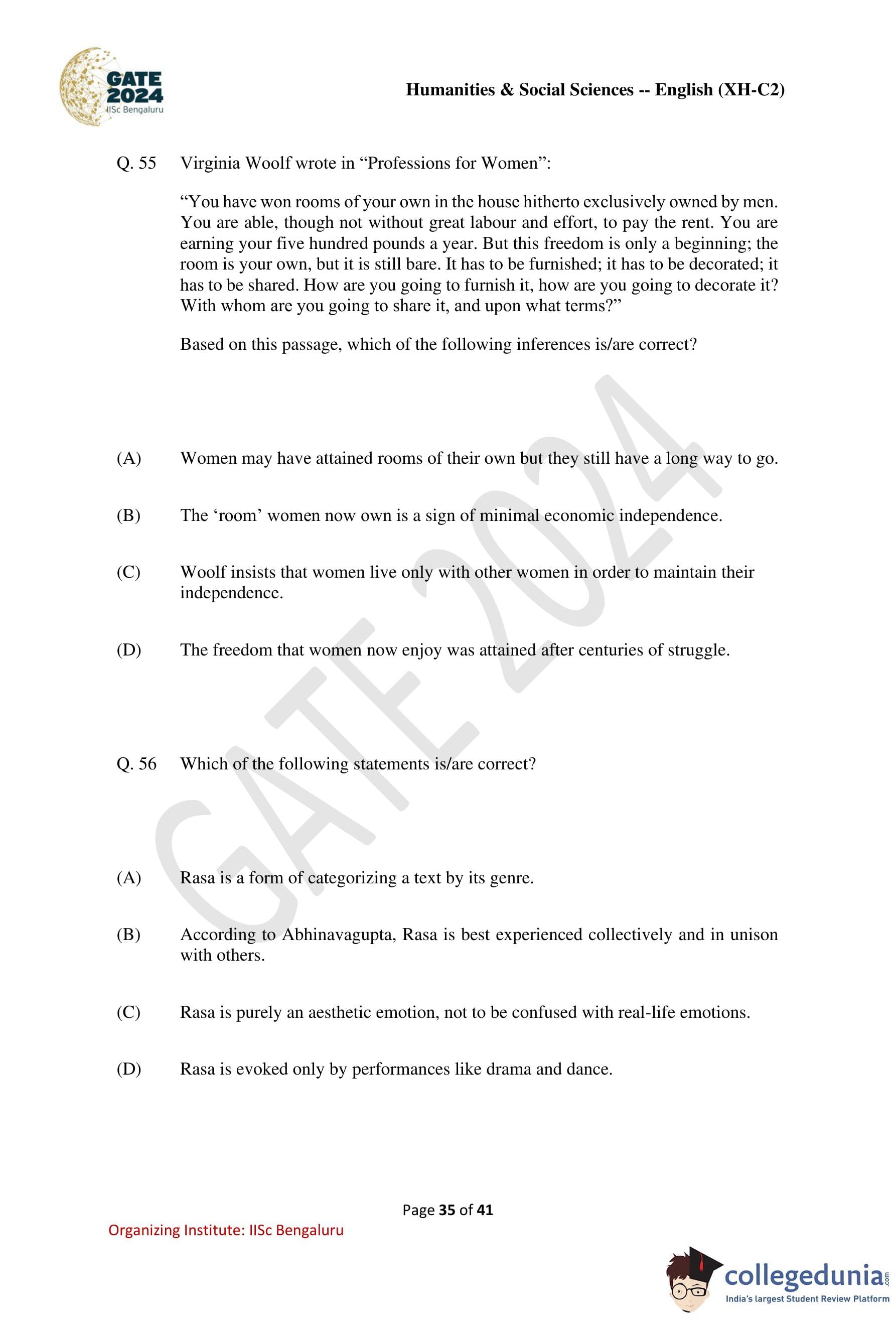 GATE 2024 English (XH-C2) Question Paper PDF is available here. IISc Banglore conducted GATE 2024 English (XH-C2) exam on February 4 in the Forenoon Session from 9:30 AM to 12:30 PM. Students have to answer 65 questions in GATE 2024 English (XH-C2) Question Paper carrying a total weightage of 100 marks. 10 questions are from the General Aptitude section and 55 questions are from Core Discipline.