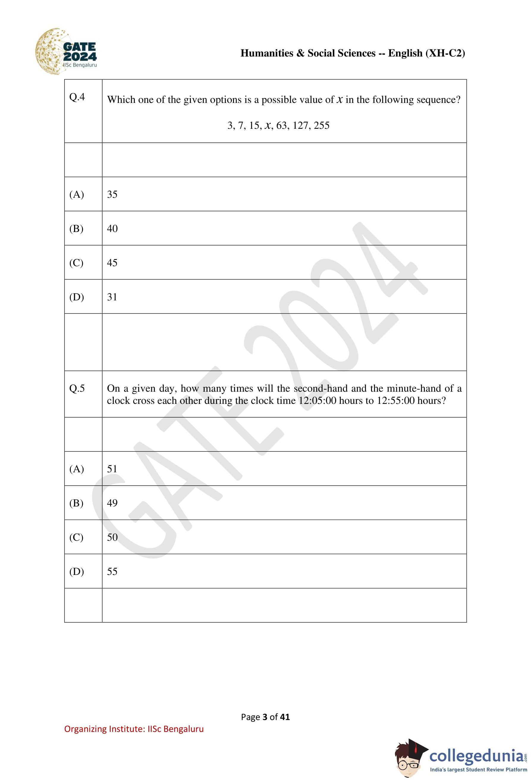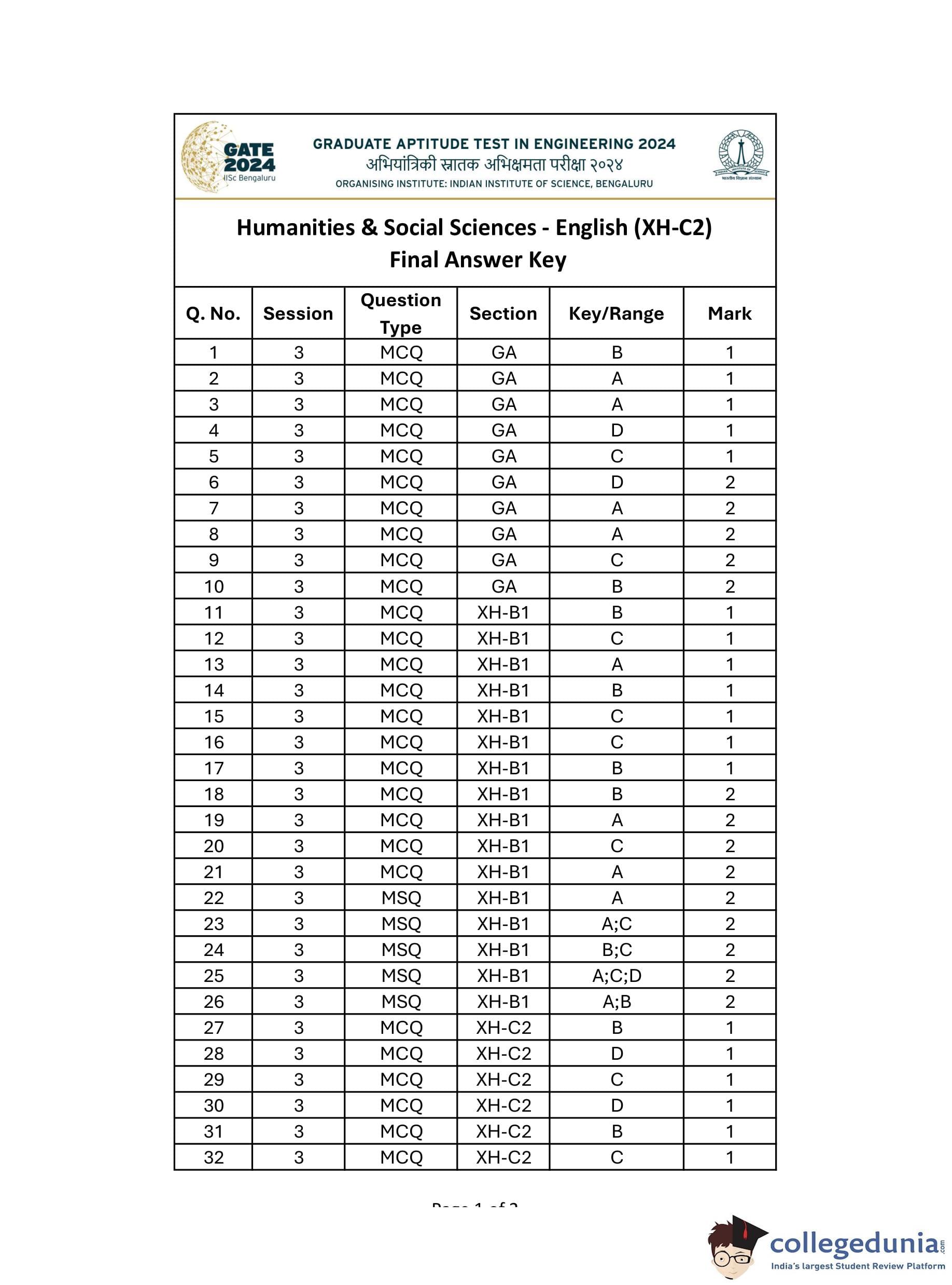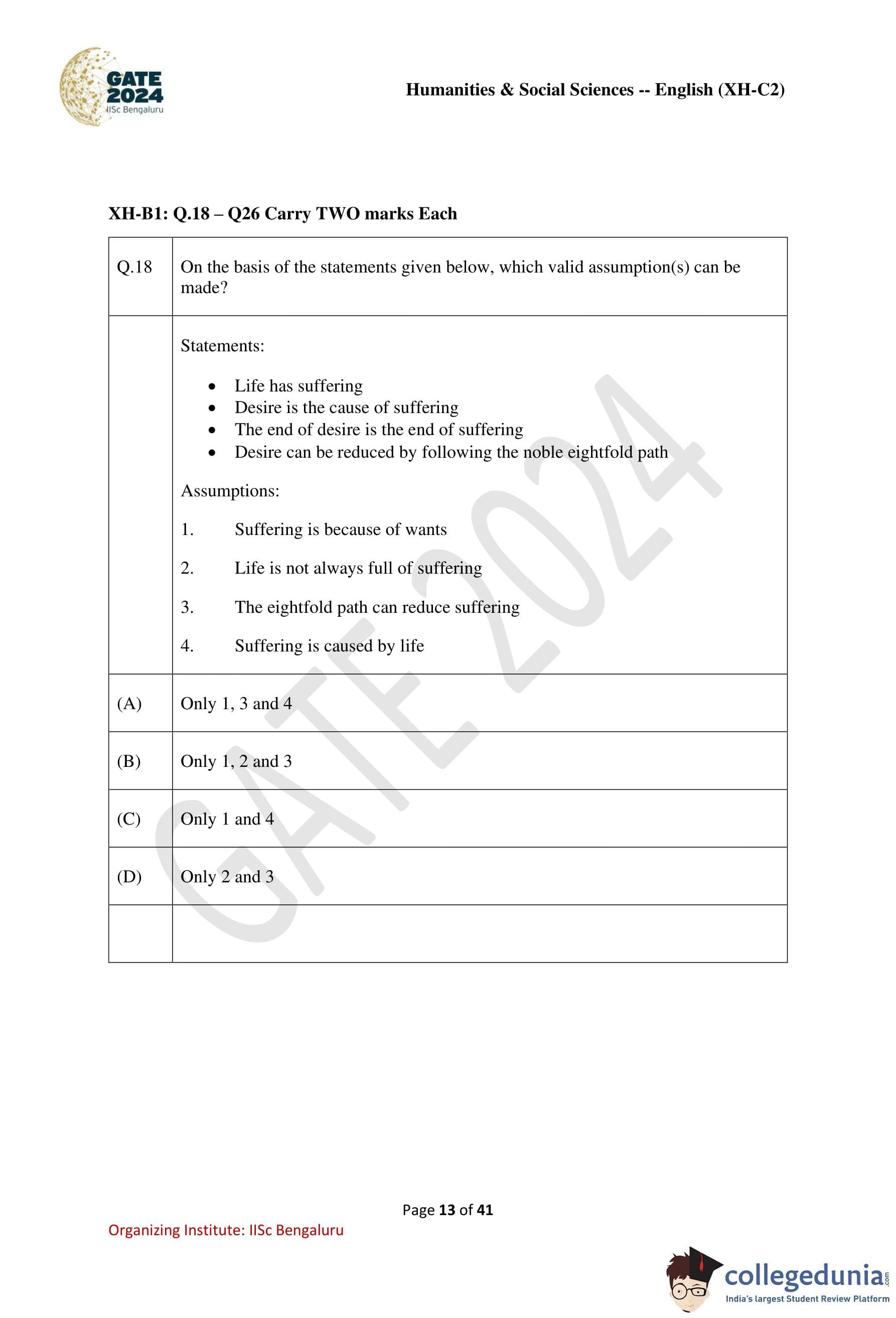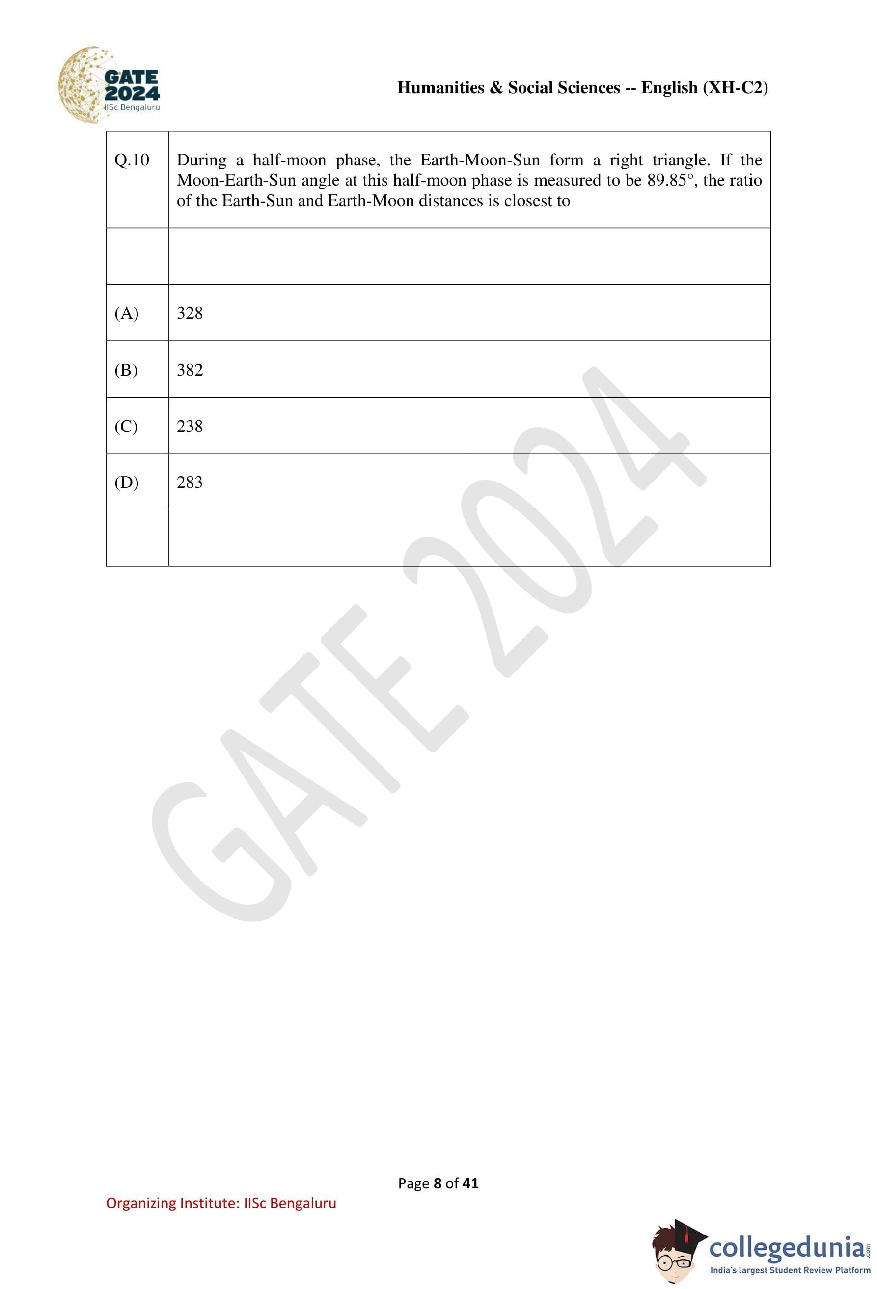 GATE 2024 English (XH-C2) Question Paper PDF is available here. IISc Banglore conducted GATE 2024 English (XH-C2) exam on February 4 in the Forenoon Session from 9:30 AM to 12:30 PM. Students have to answer 65 questions in GATE 2024 English (XH-C2) Question Paper carrying a total weightage of 100 marks. 10 questions are from the General Aptitude section and 55 questions are from Core Discipline.