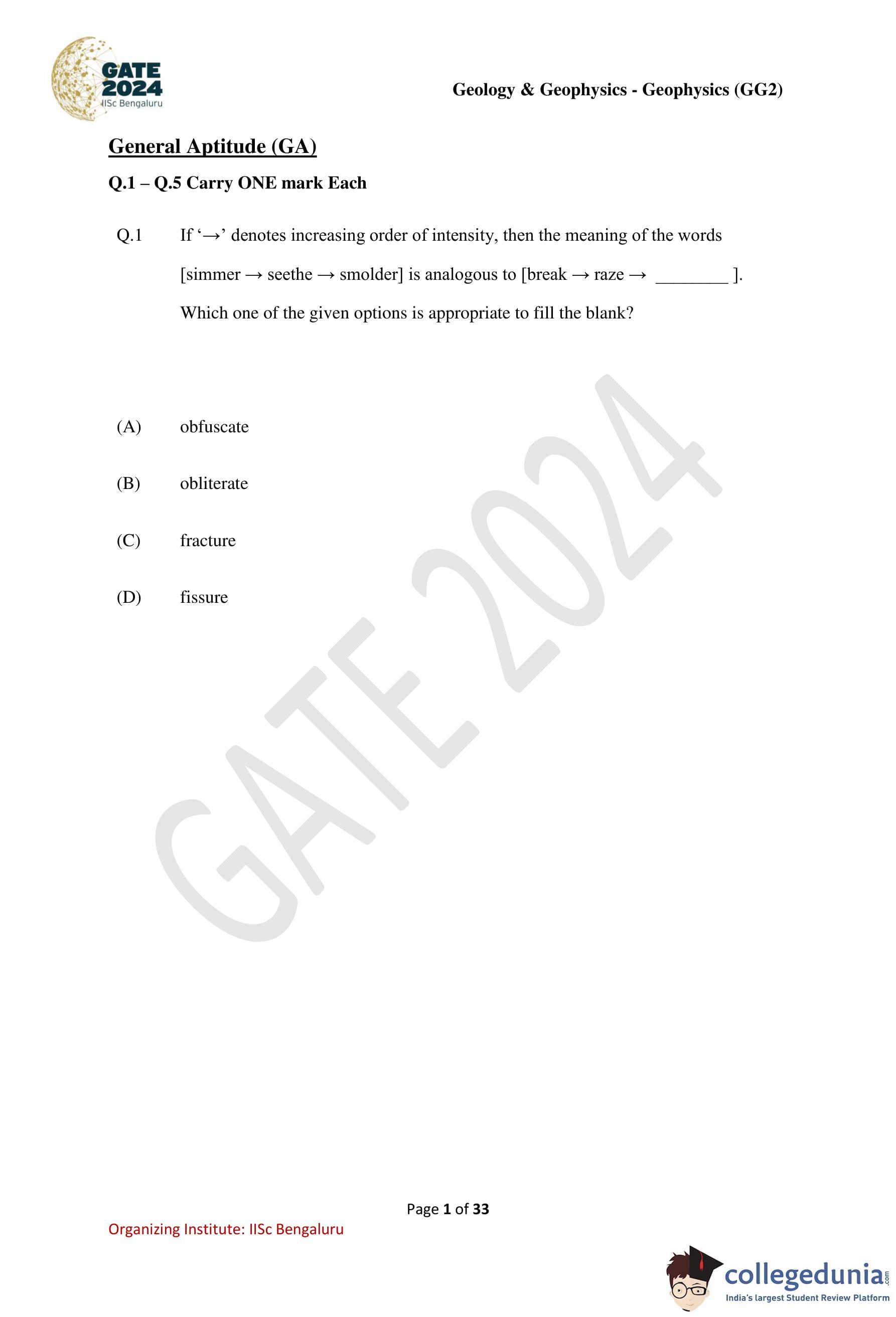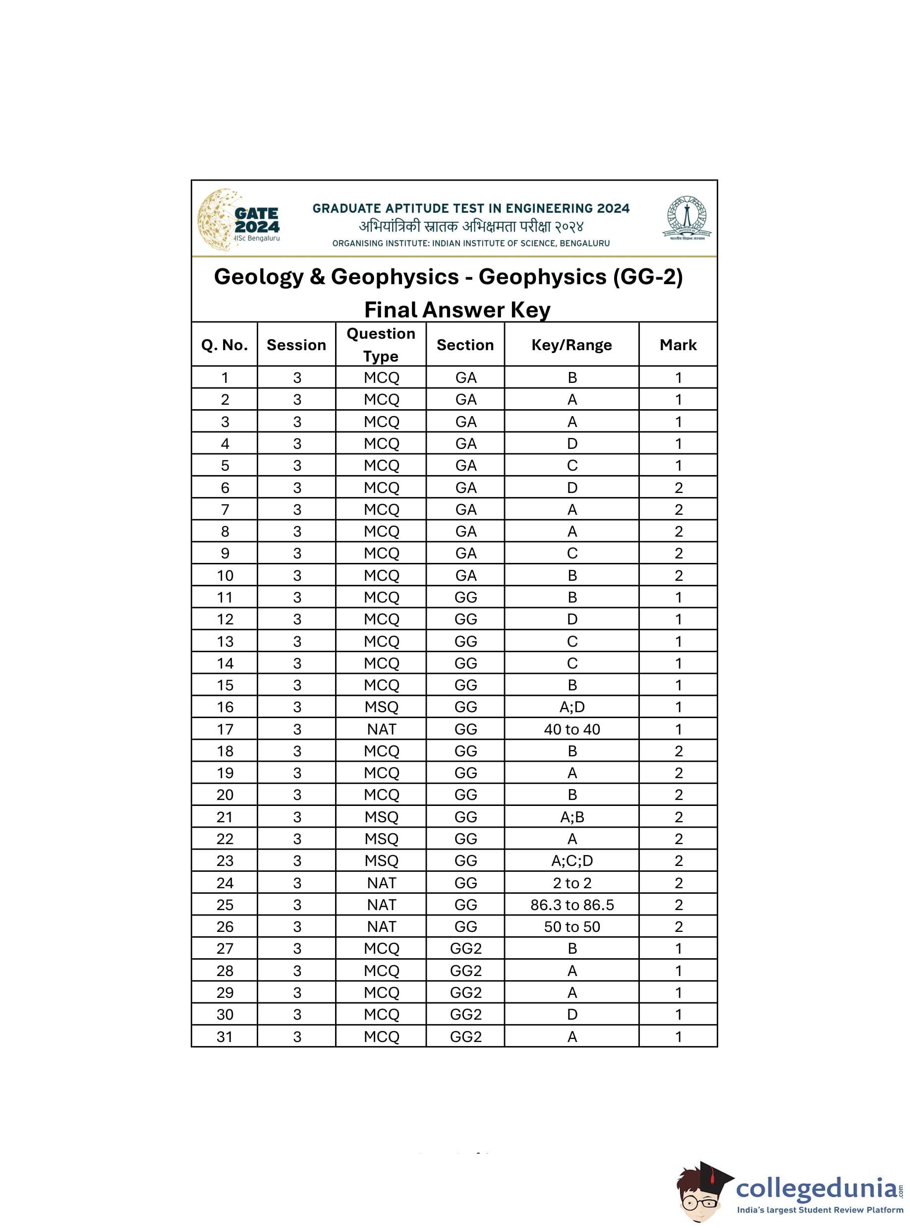 | GATE 2024 GG Question Paper PDF | GATE 2024 GG Answer Key PDF | GATE 2024 GG Solution PDF |