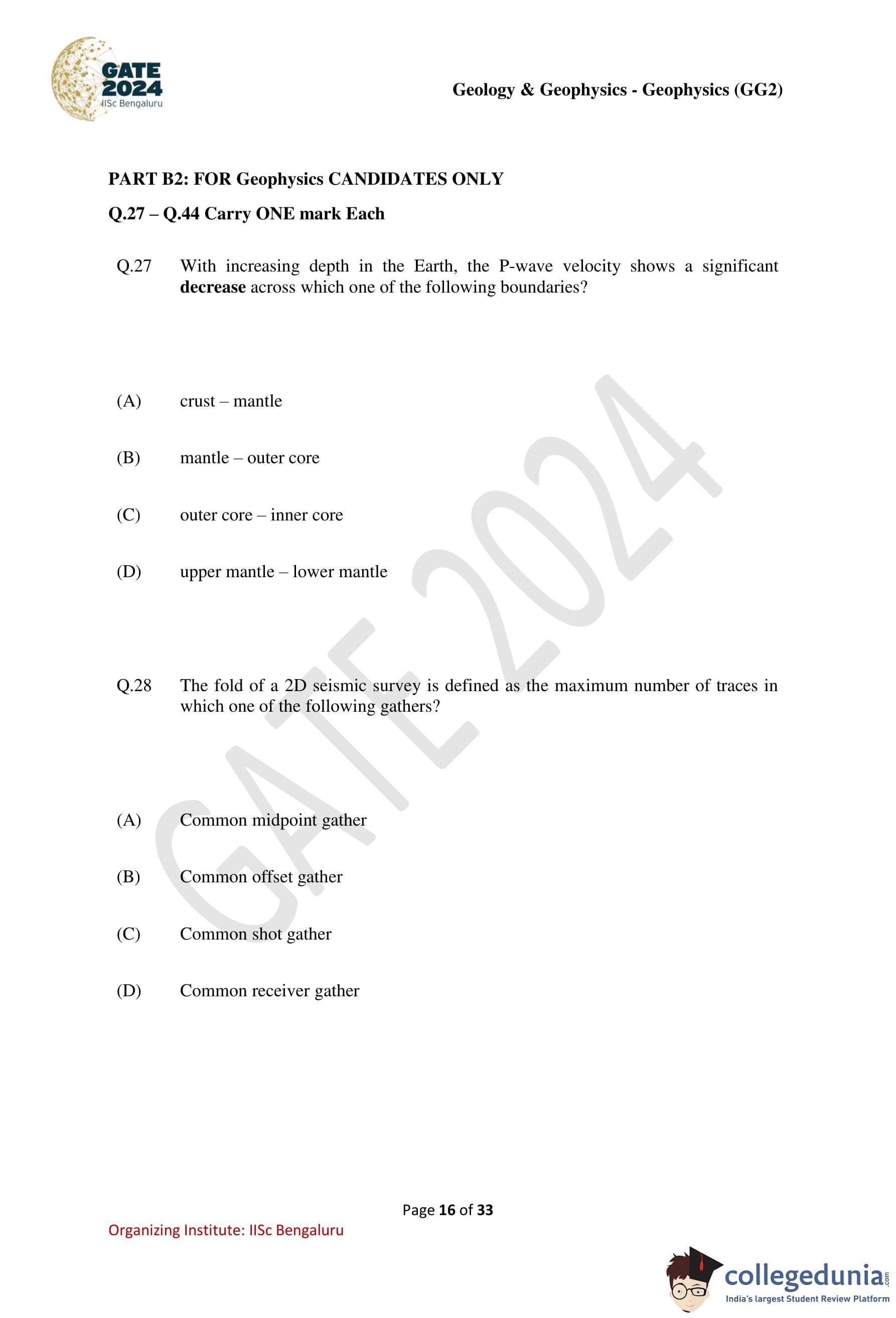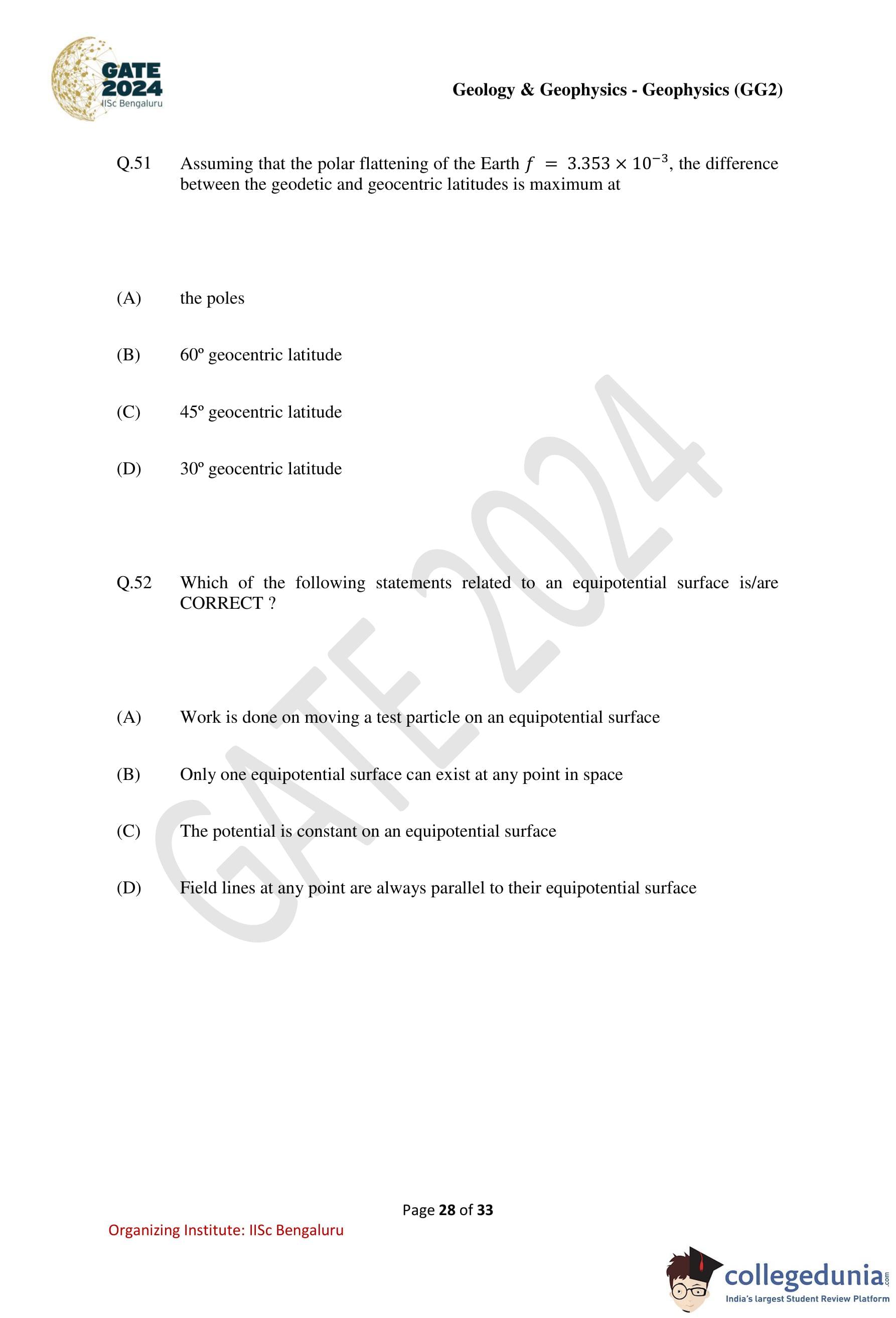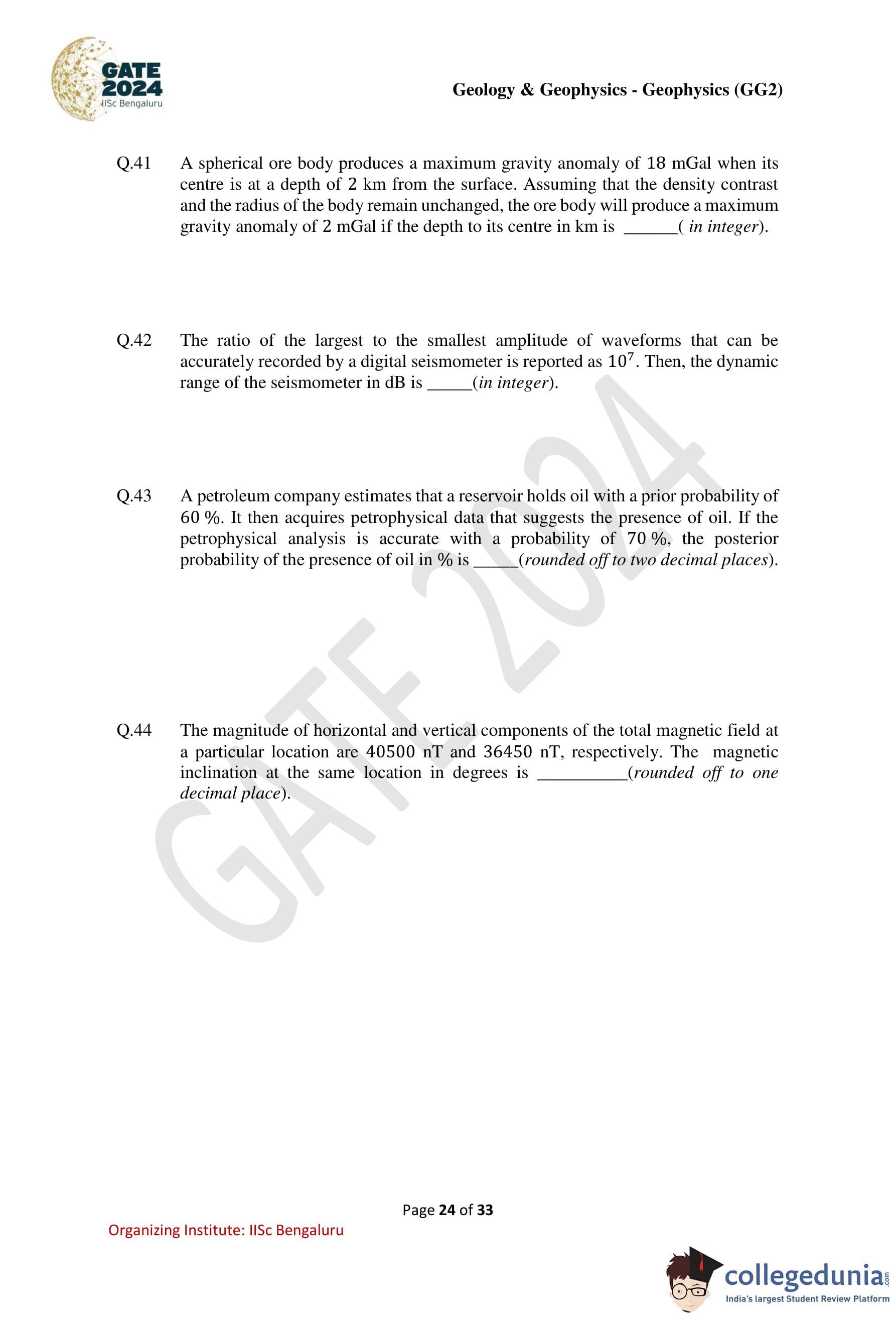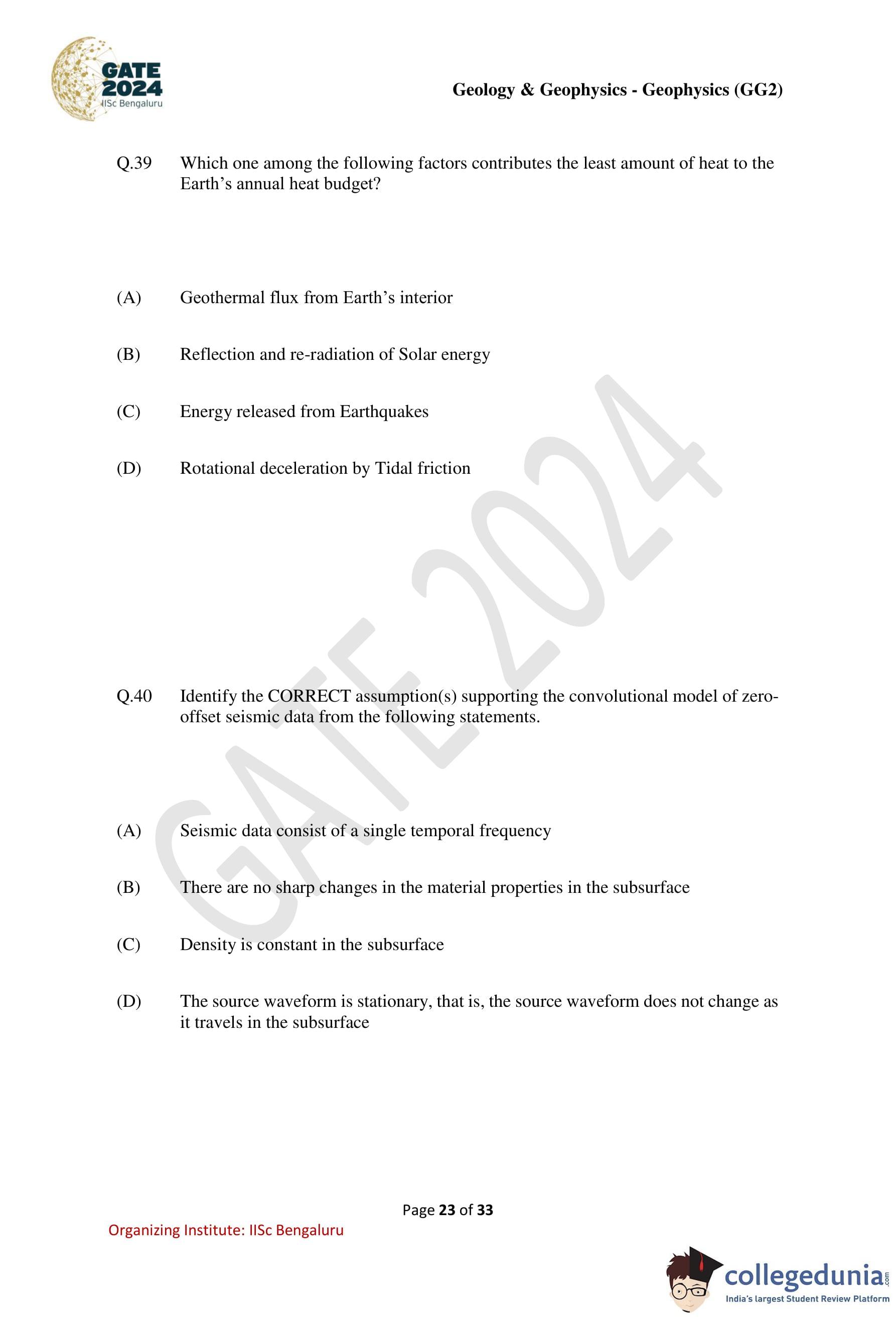 GATE 2024 Geophysics Question Paper with Answer Key PDF