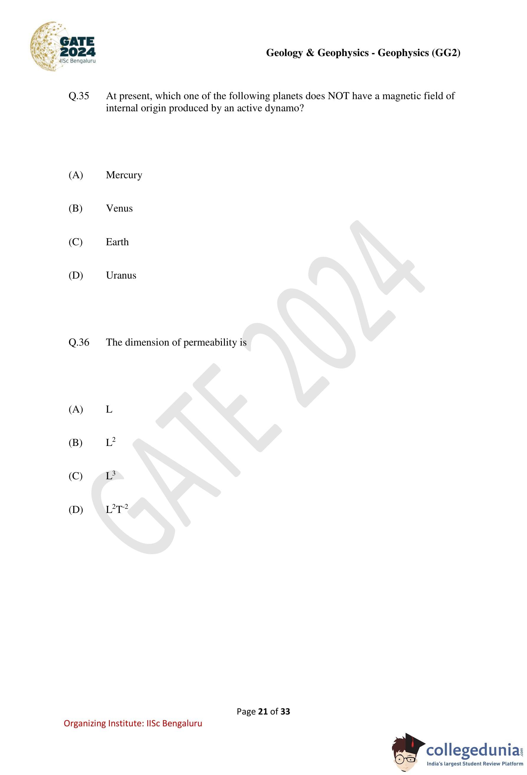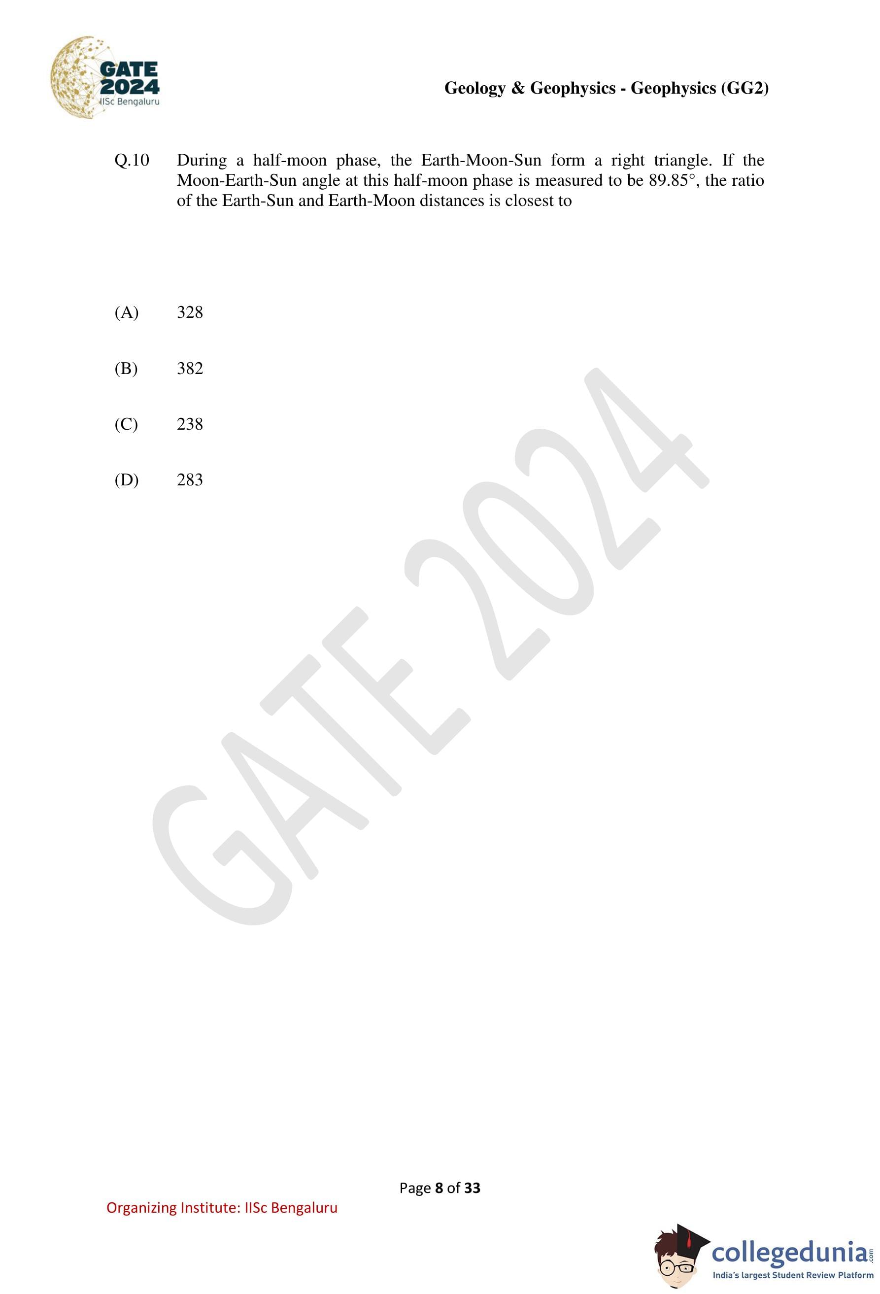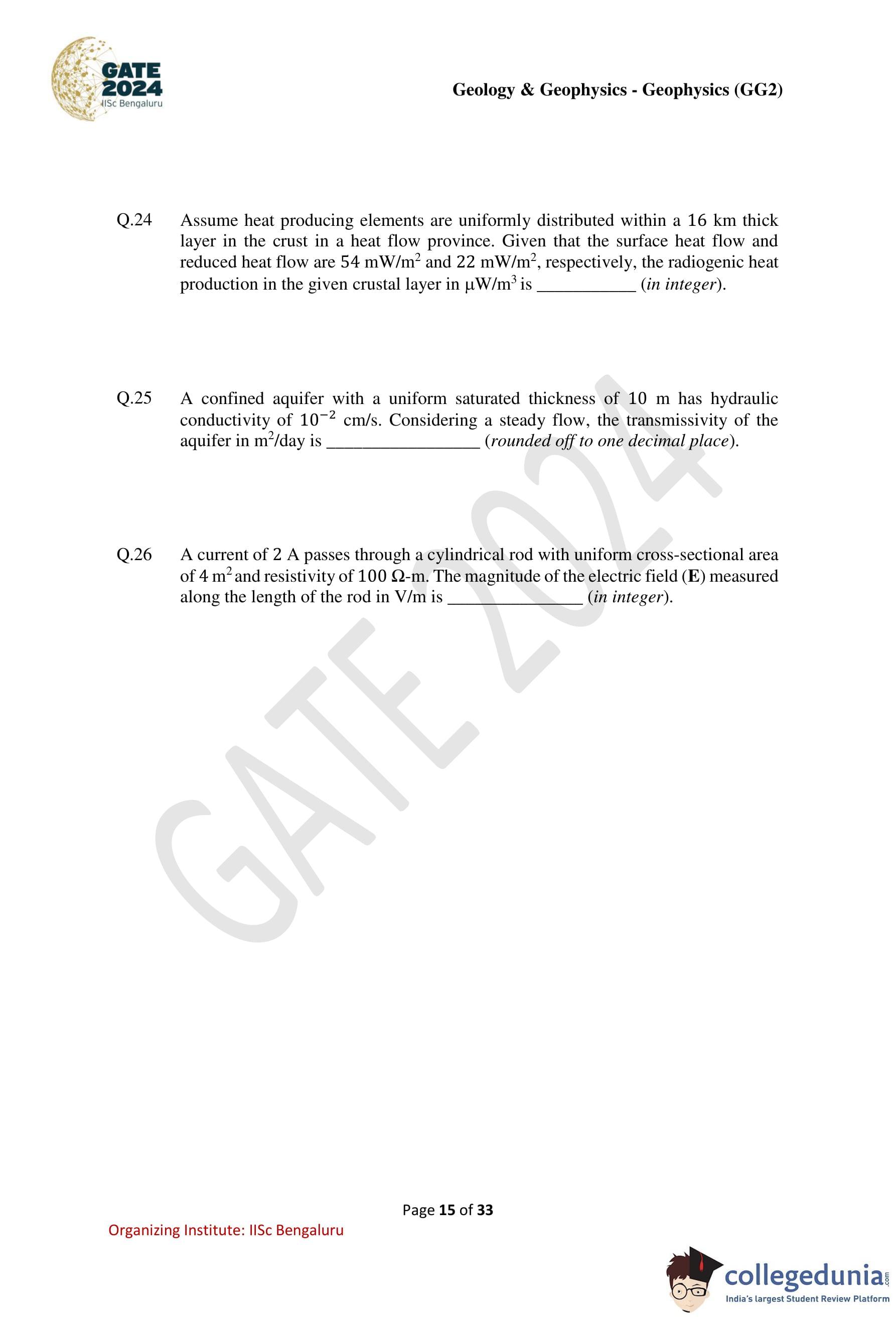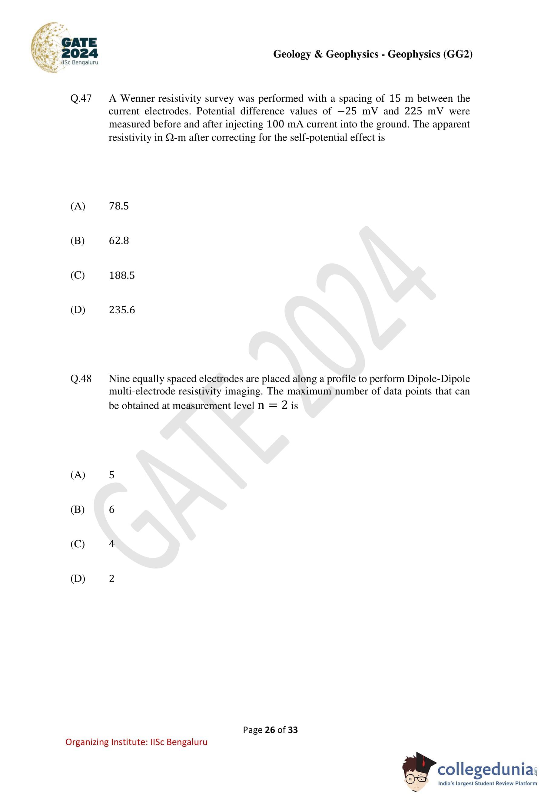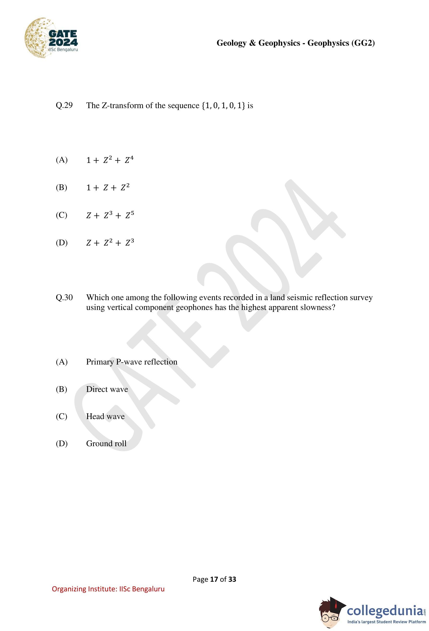 GATE 2024 Geophysics Question Paper with Answer Key PDF
