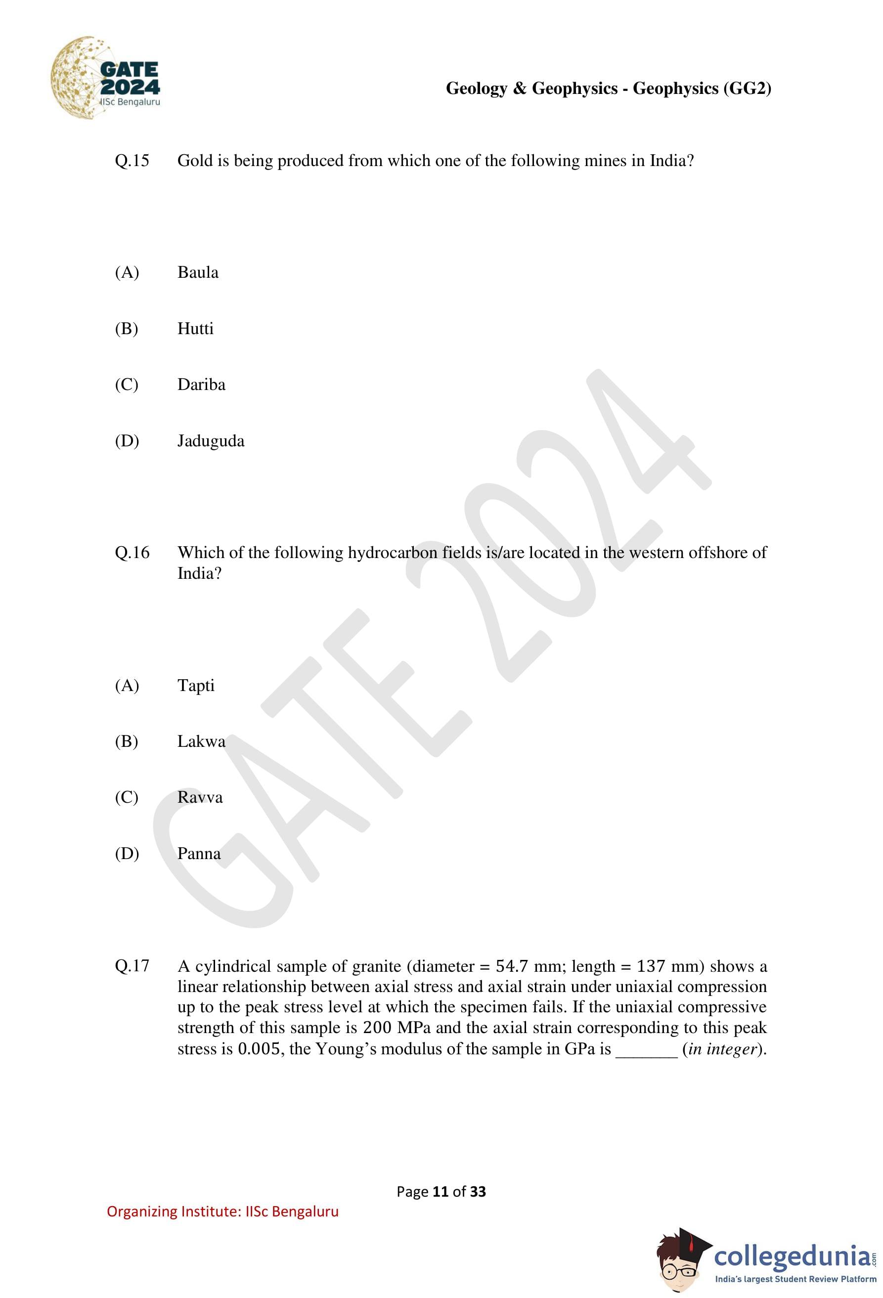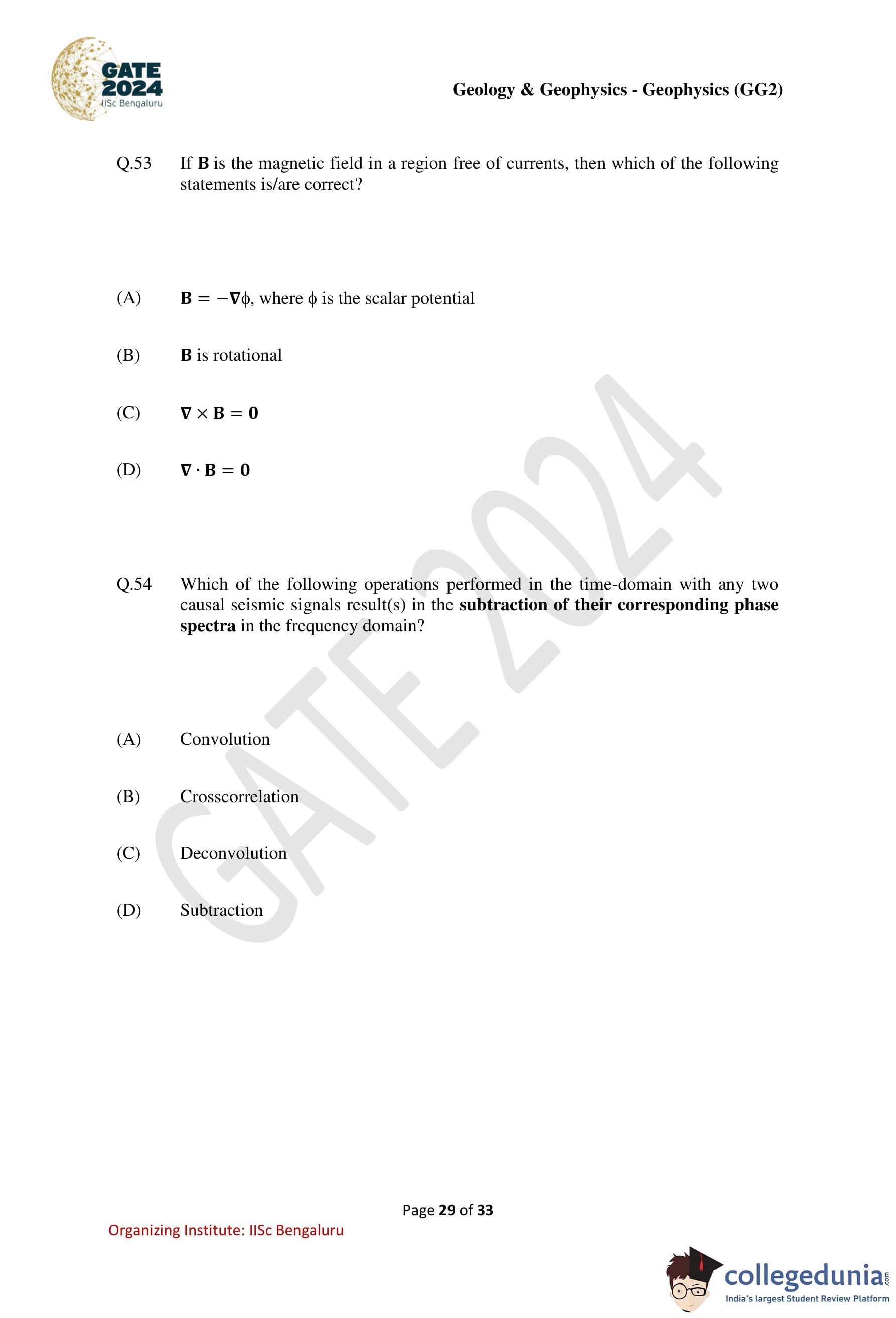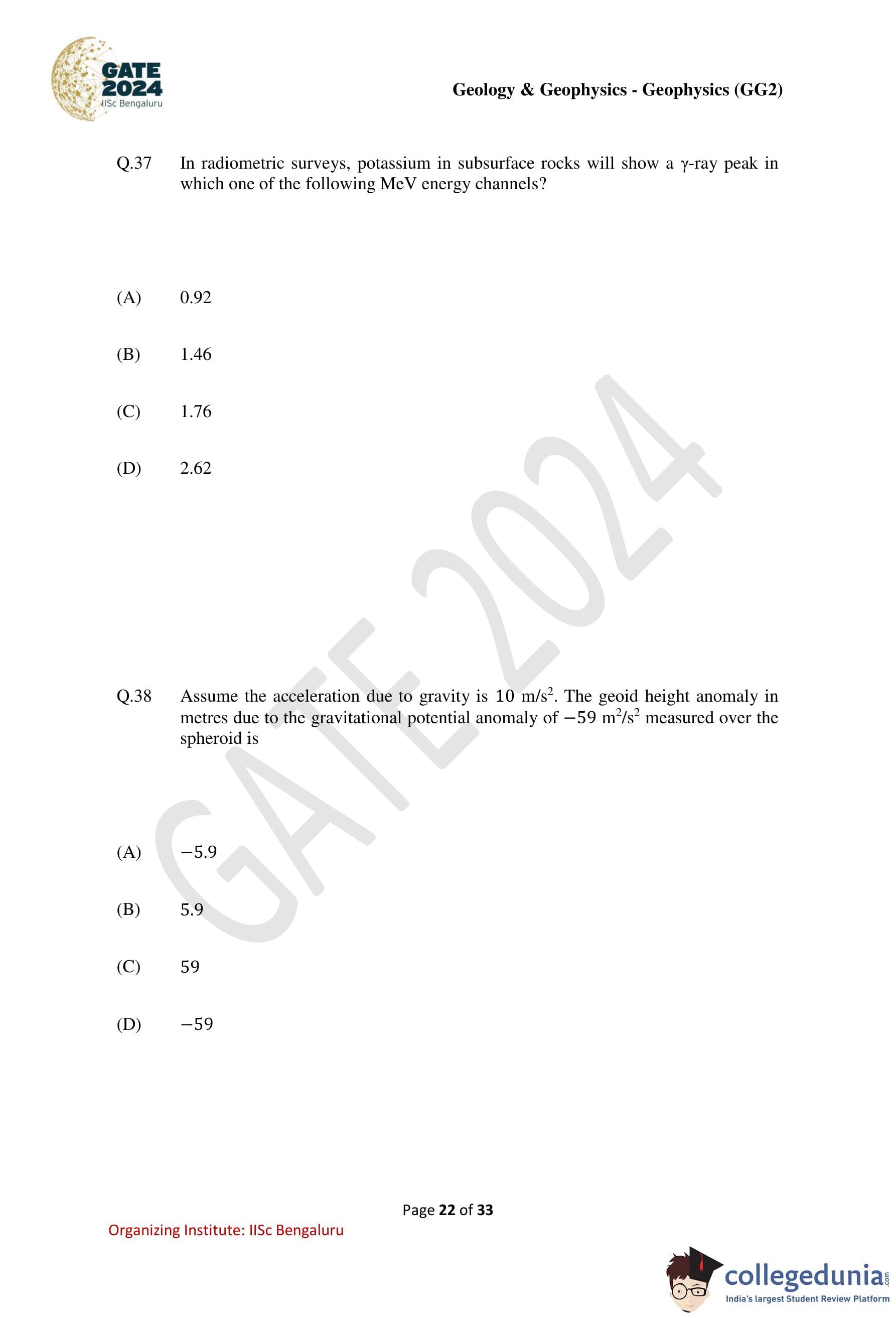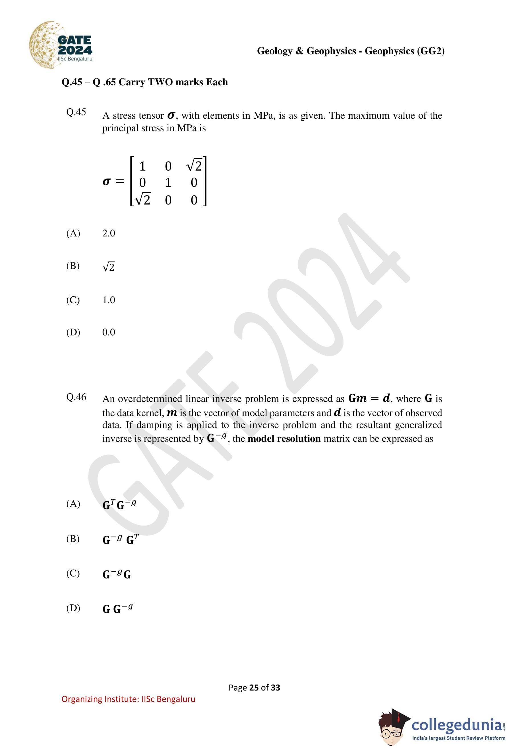 GATE 2024 Geophysics Question Paper with Answer Key PDF