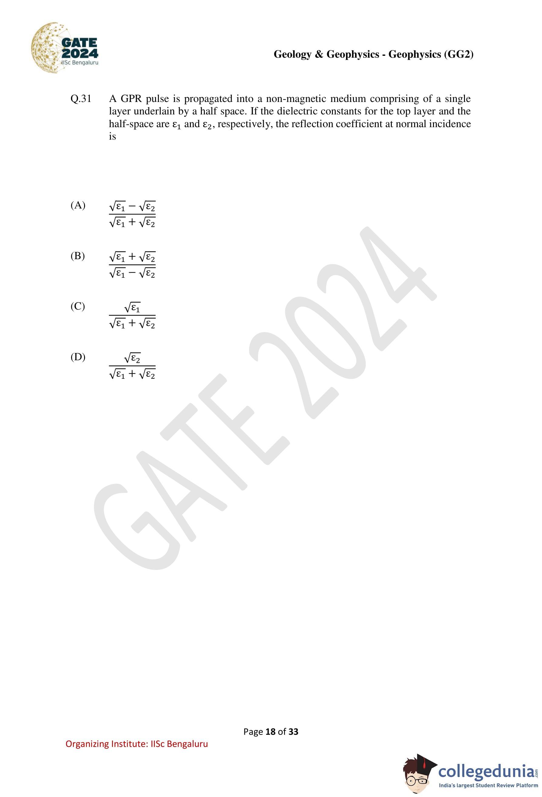 GATE Geology & Geophysics - Geophysics (GG2) Solutions