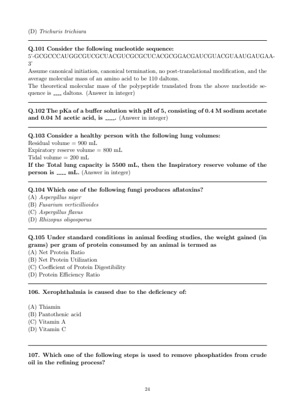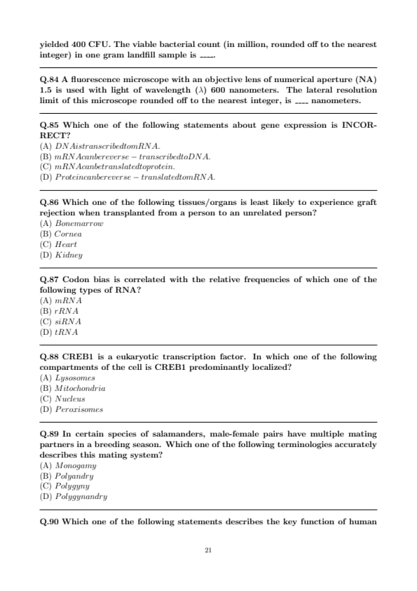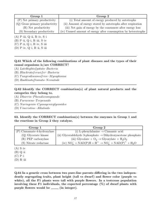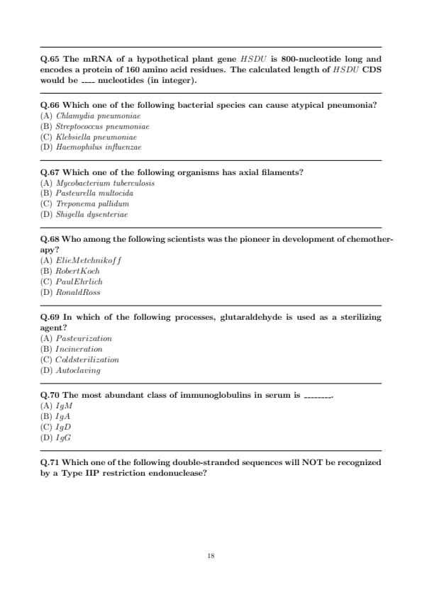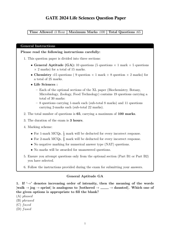 | GATE 2024 Life Sciences Question Paper with Solutions PDF | Download PDF | Check Solutions |