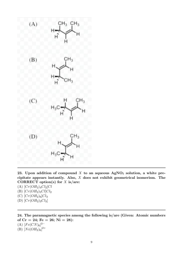 Upon addition of compound \( X \) to an aqueous AgNO\(_3\) solution, a white precipitate appears instantly. Also, \( X \) does not exhibit geometrical isomerism. The CORRECT option(s) for \( X \) is/are: