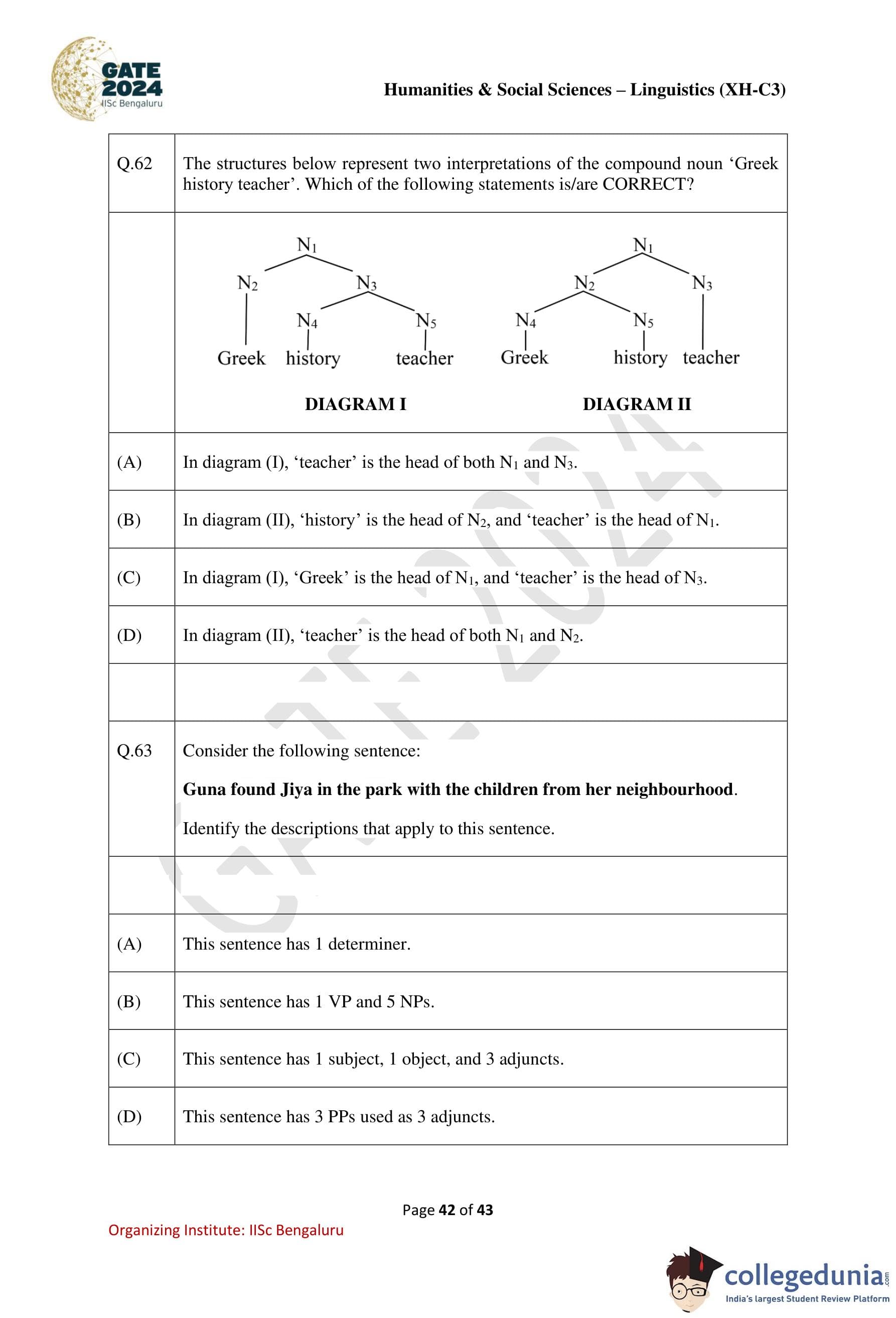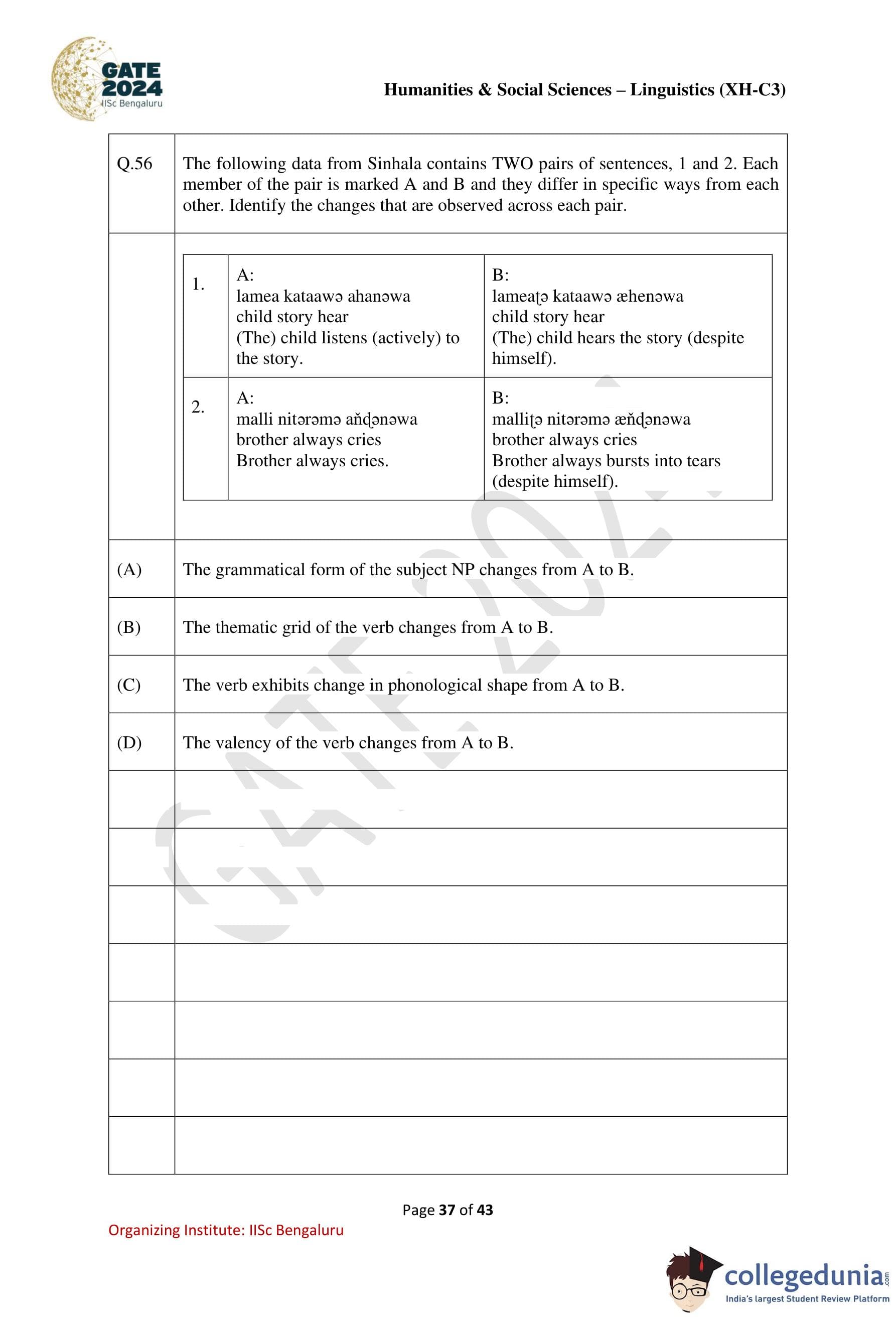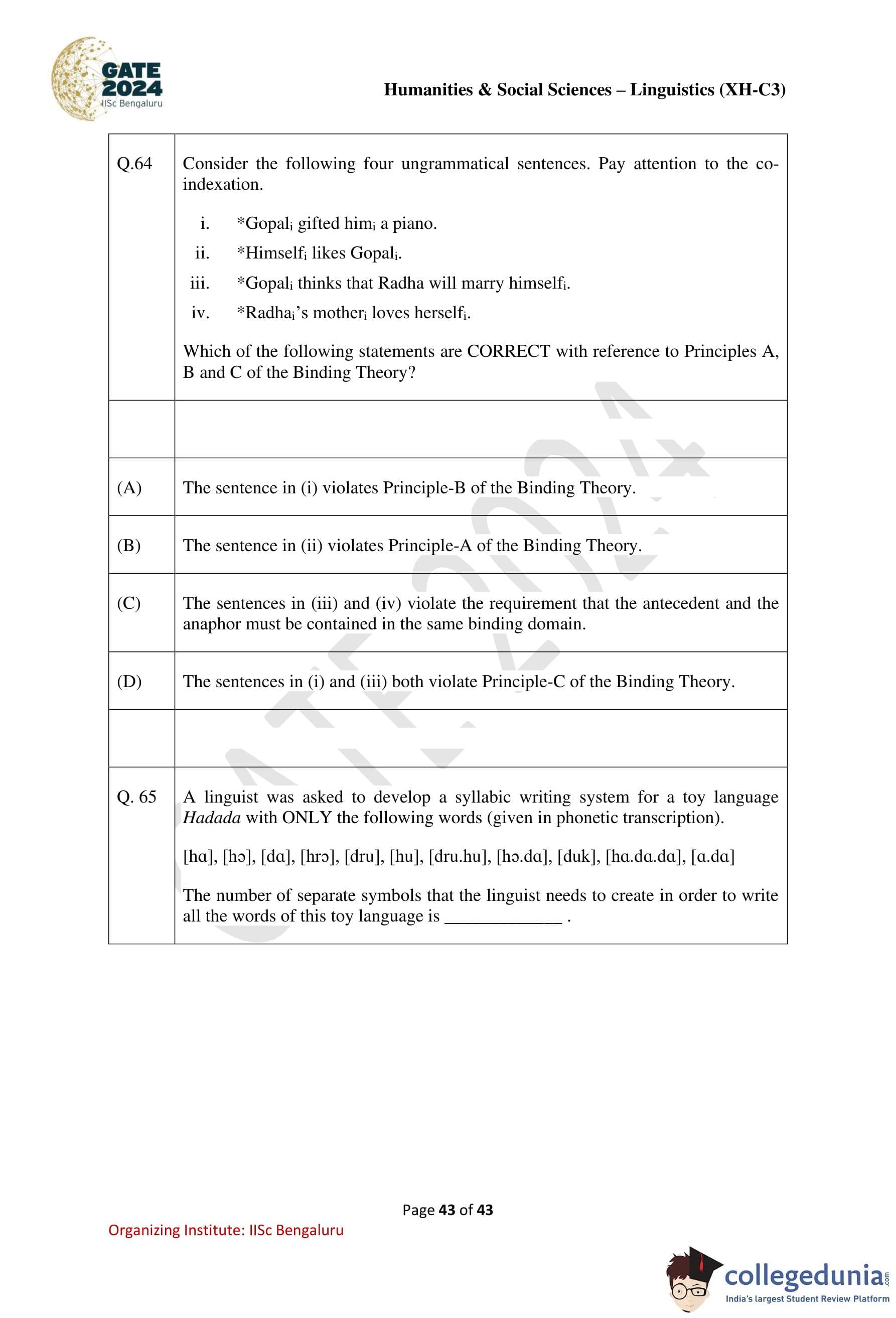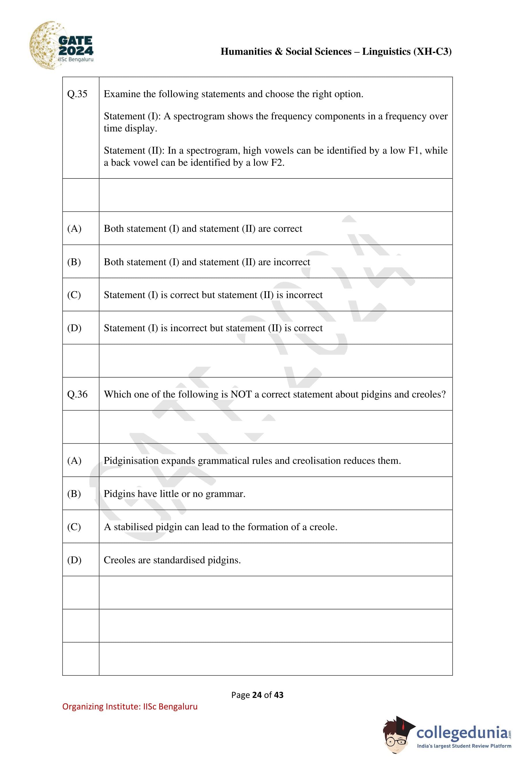 GATE 2024 Linguistics (XH-C3) Question Paper Solution
