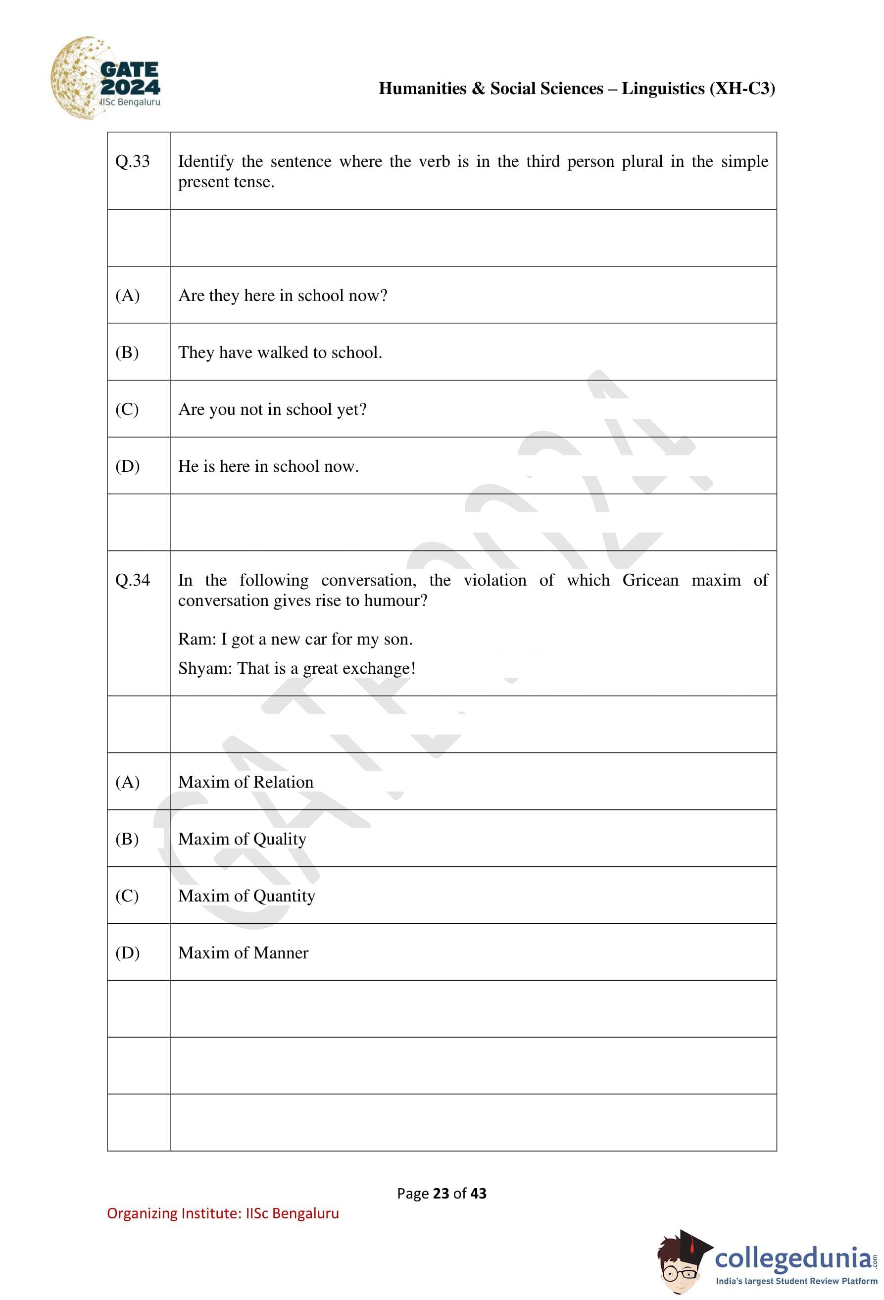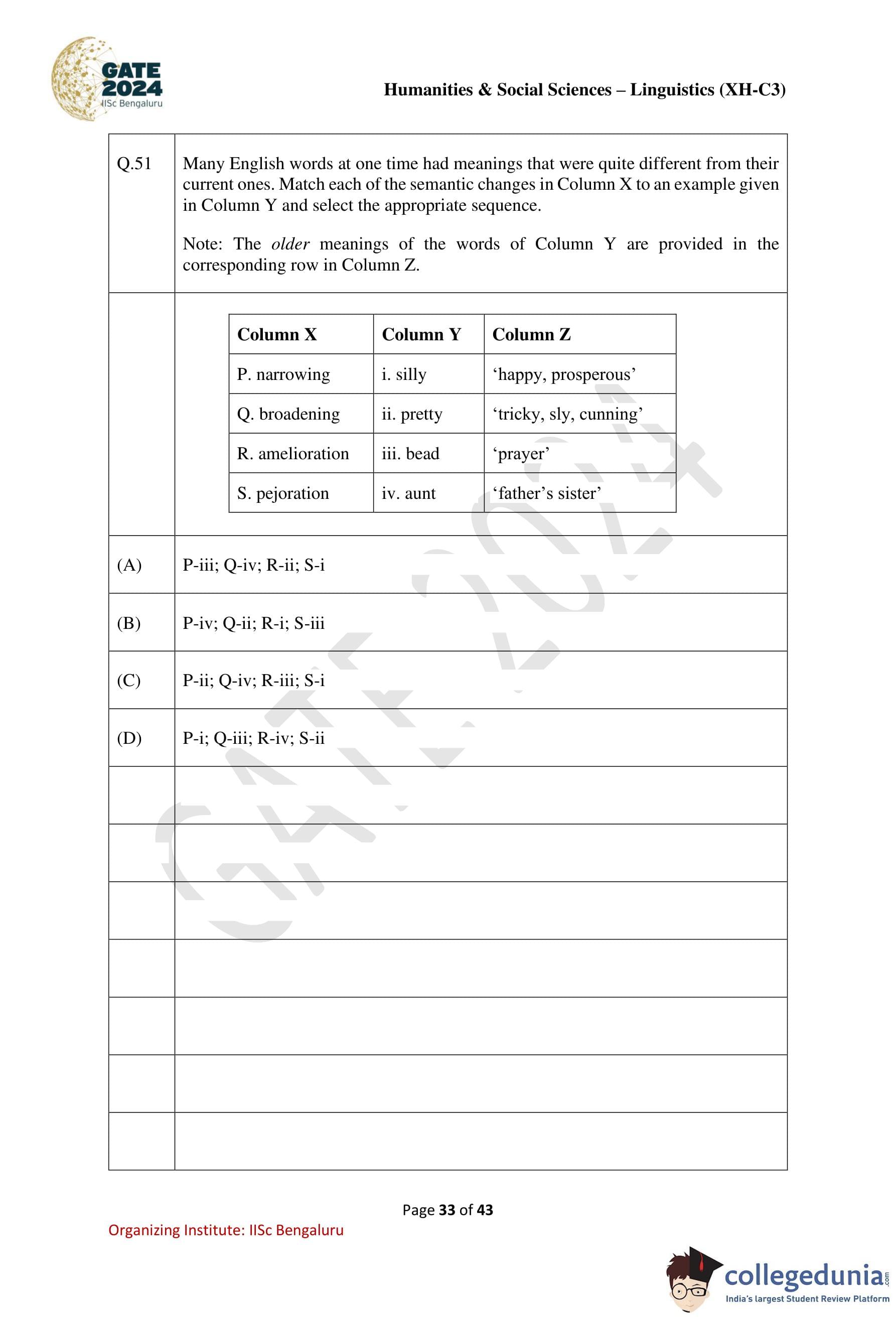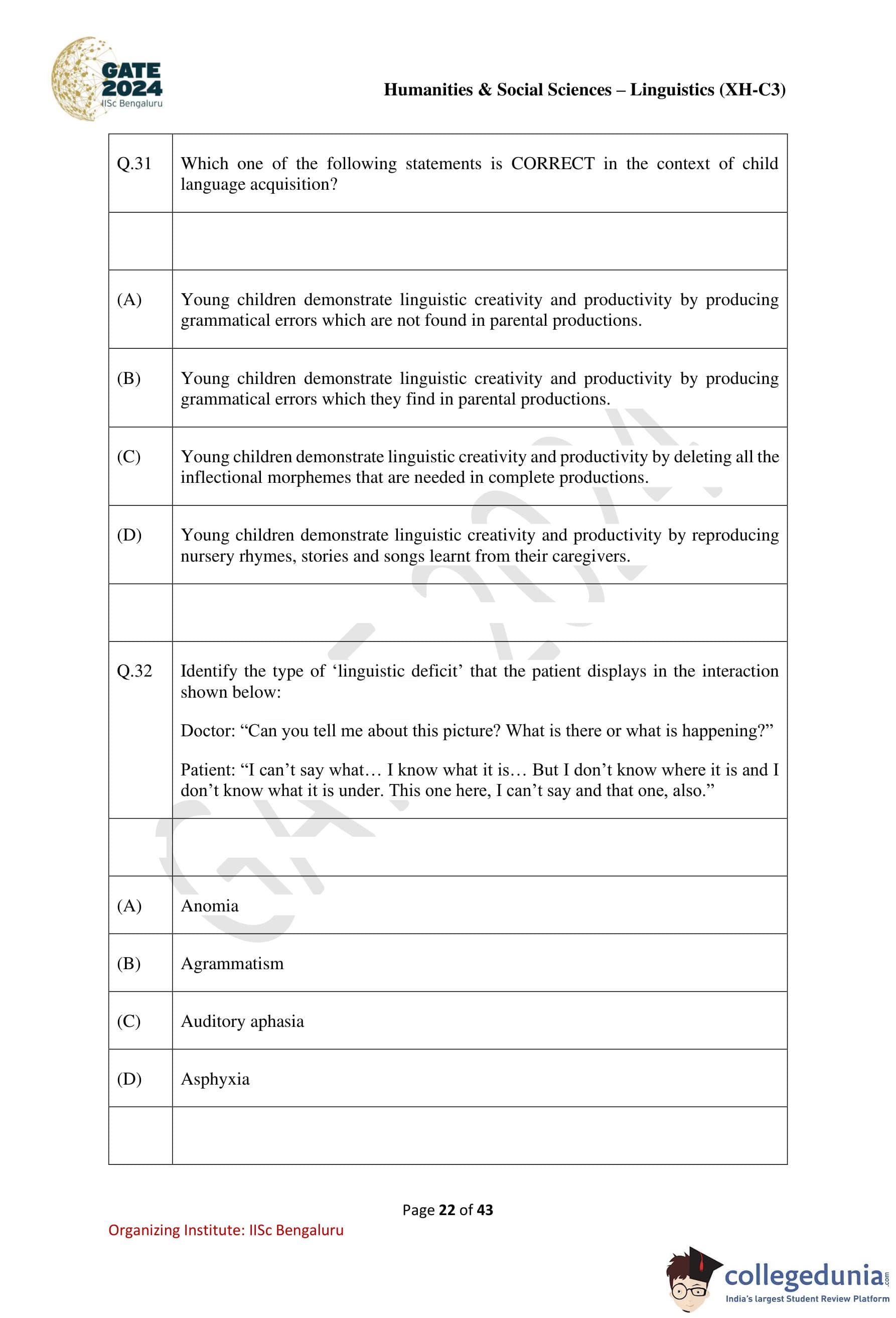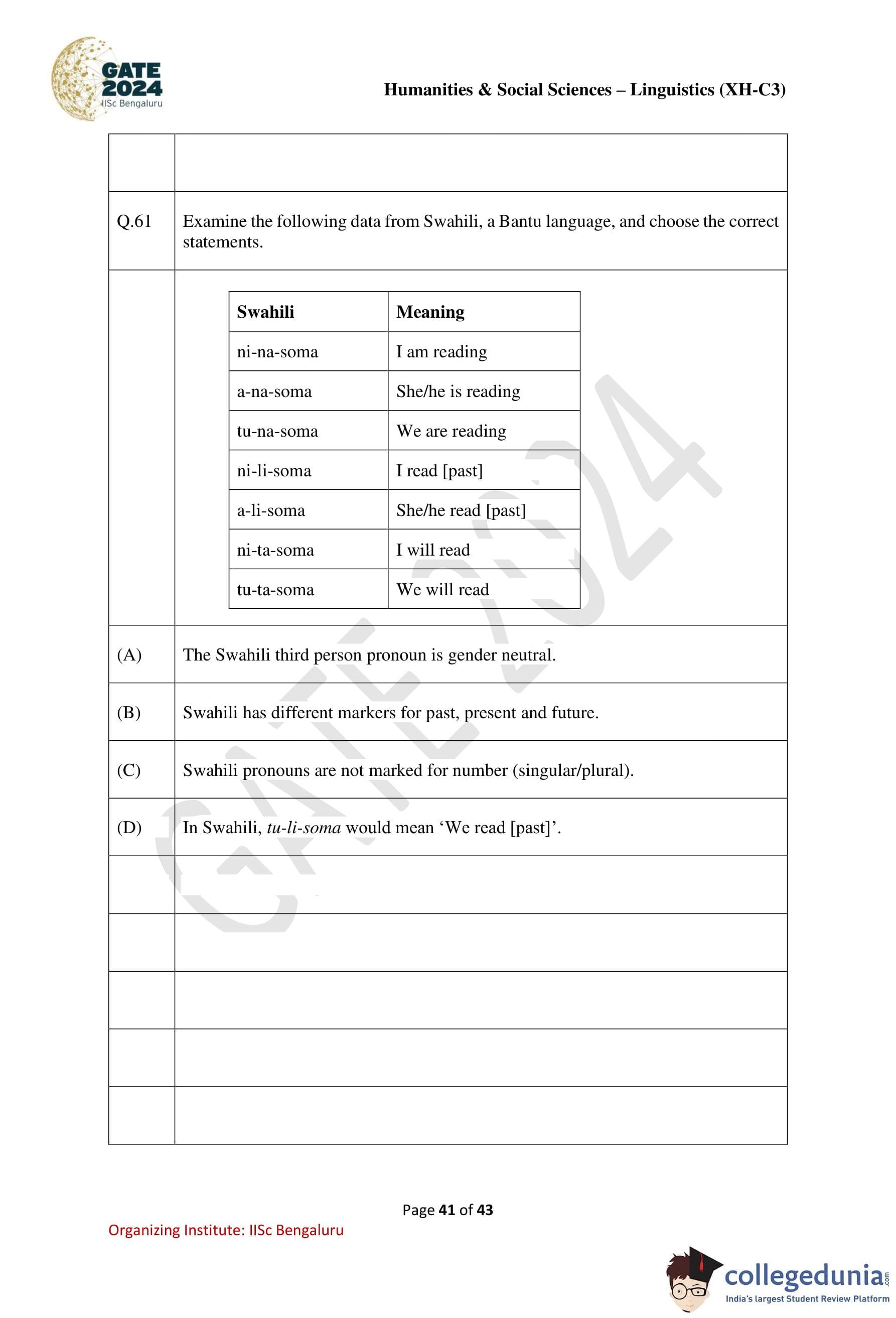 GATE 2024 Linguistics (XH-C3) Question Paper Solution
