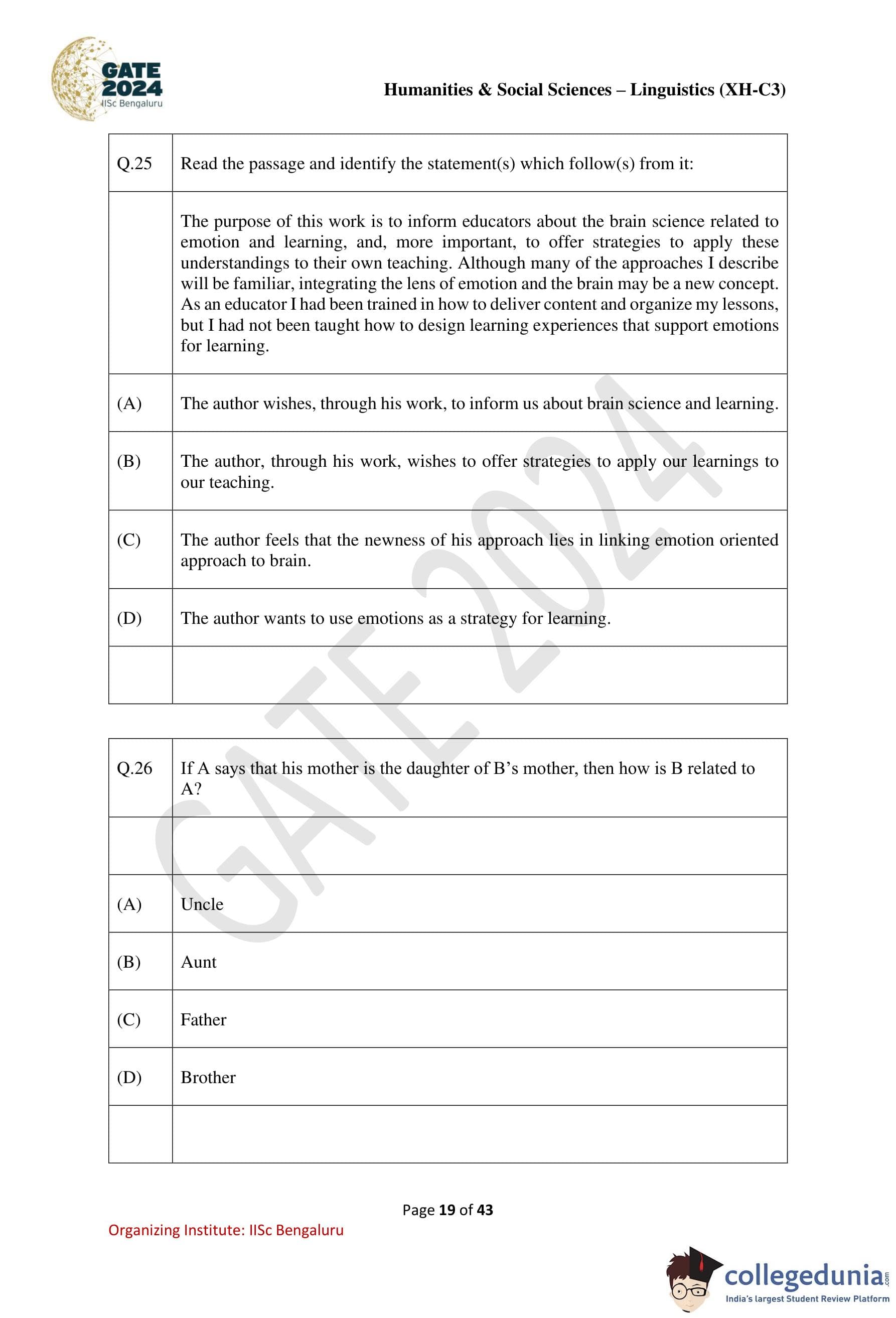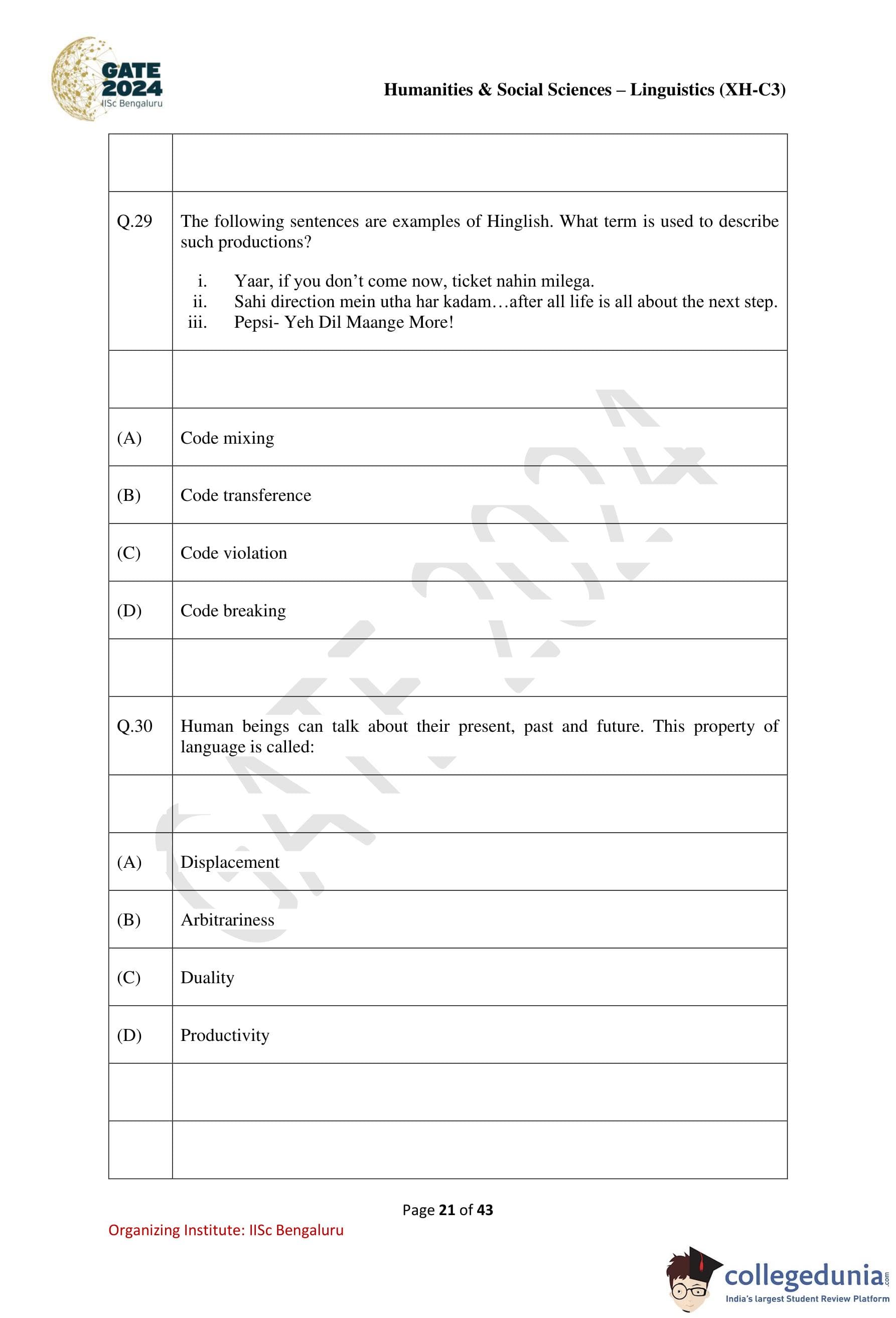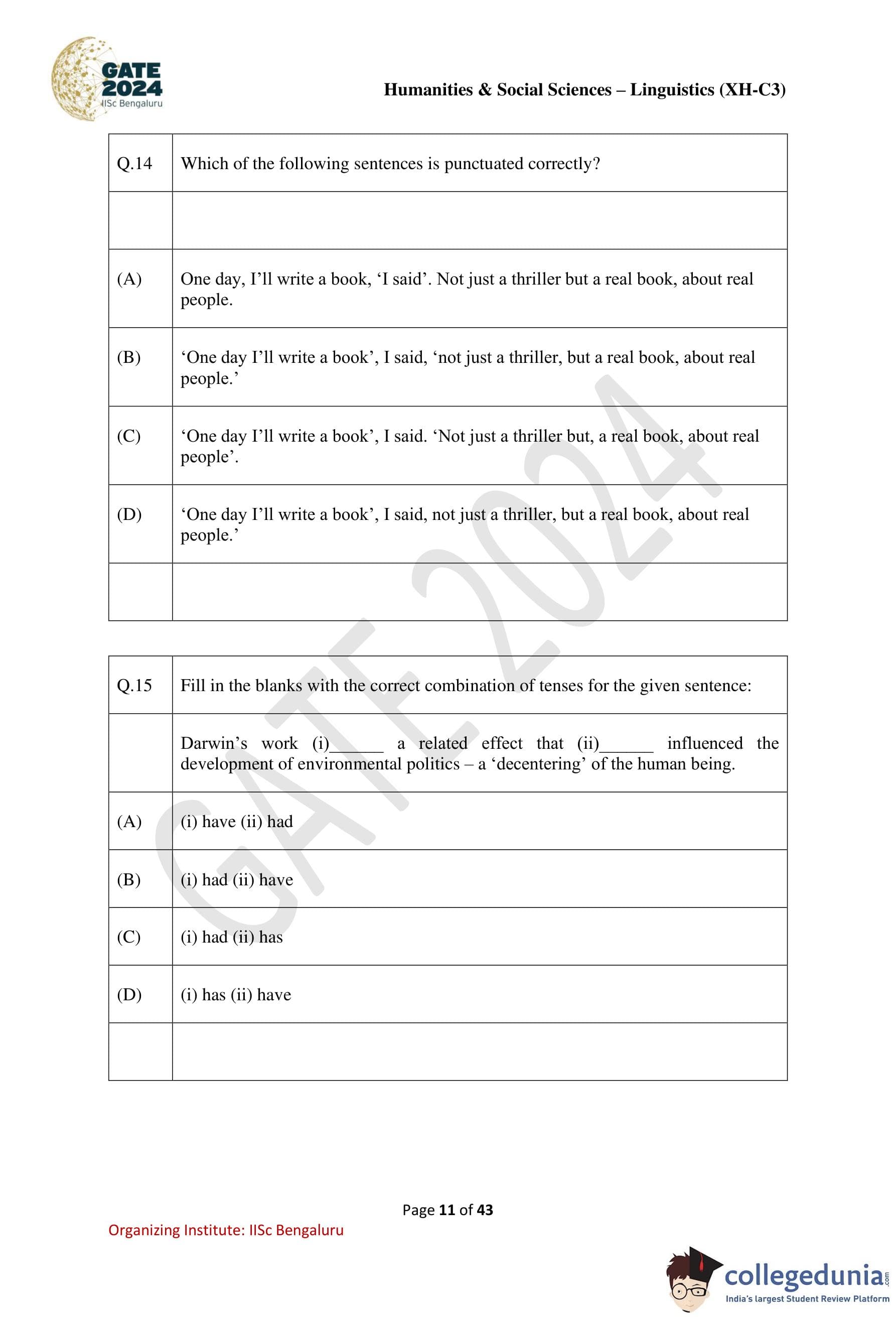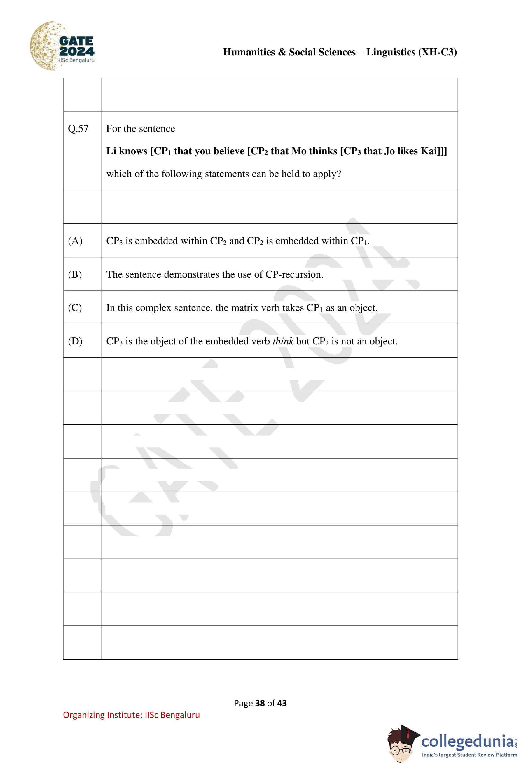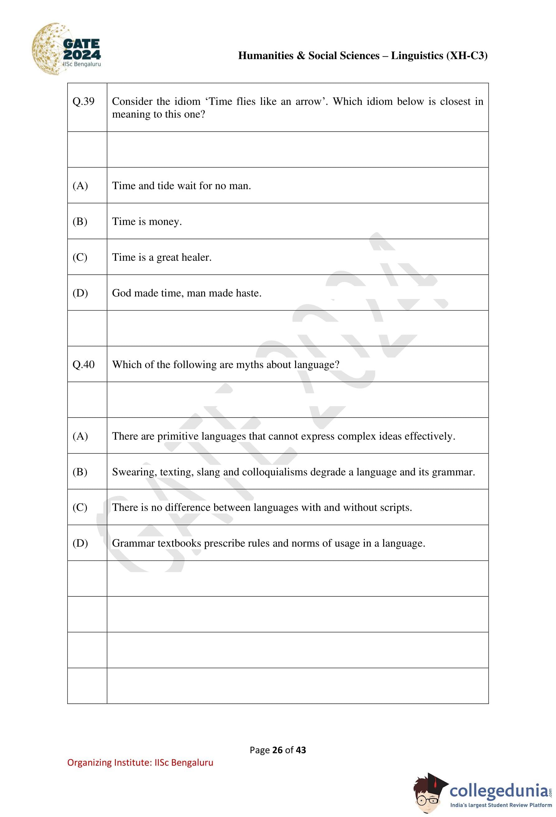 GATE 2024 Linguistics (XH-C3) Question Paper Solution