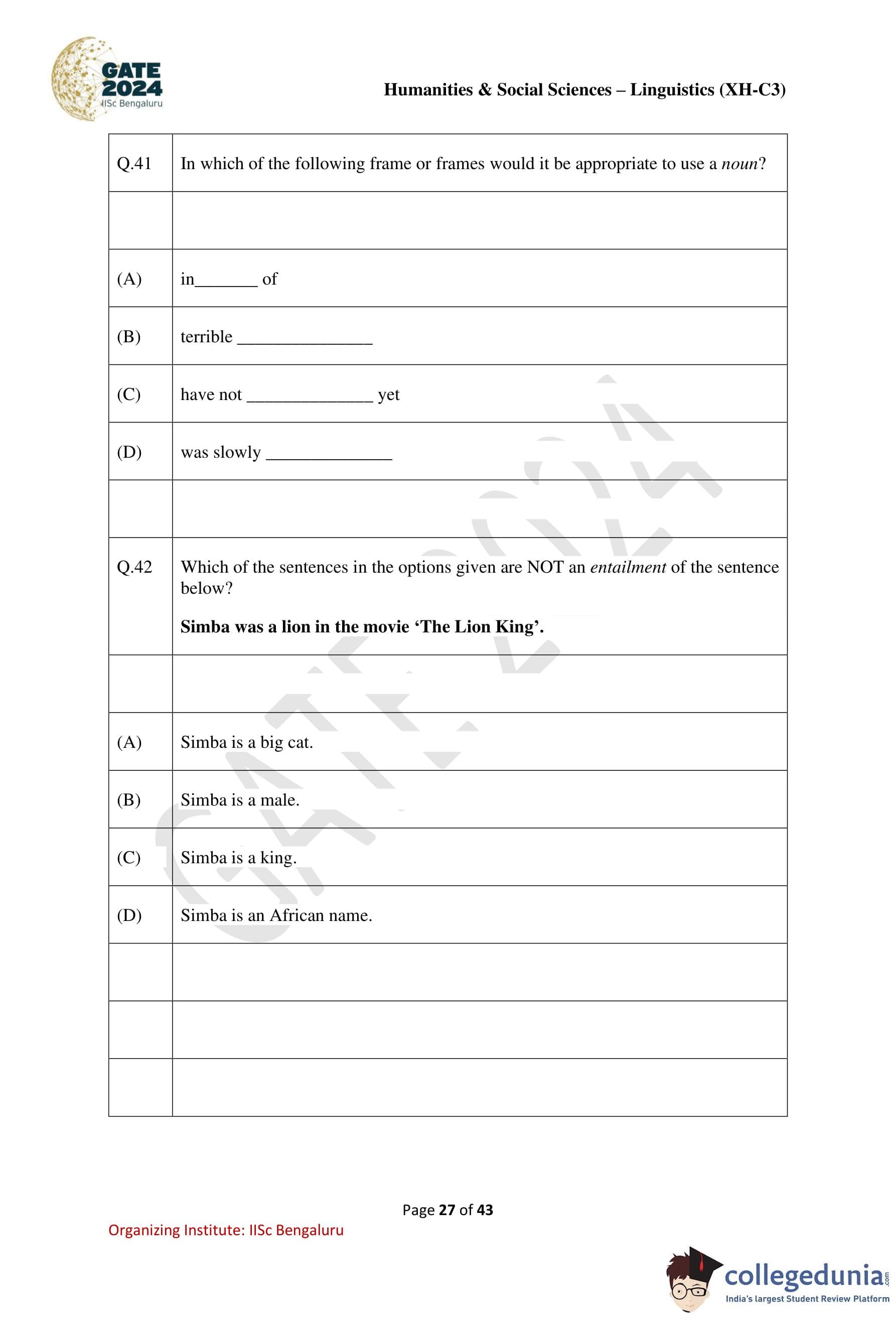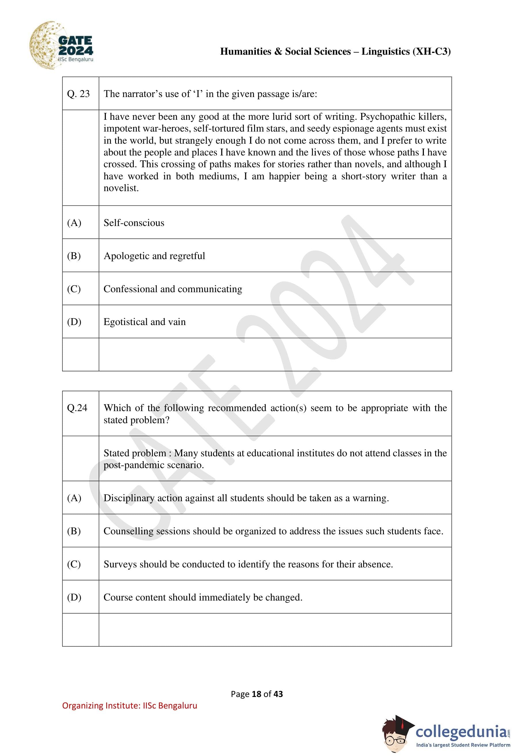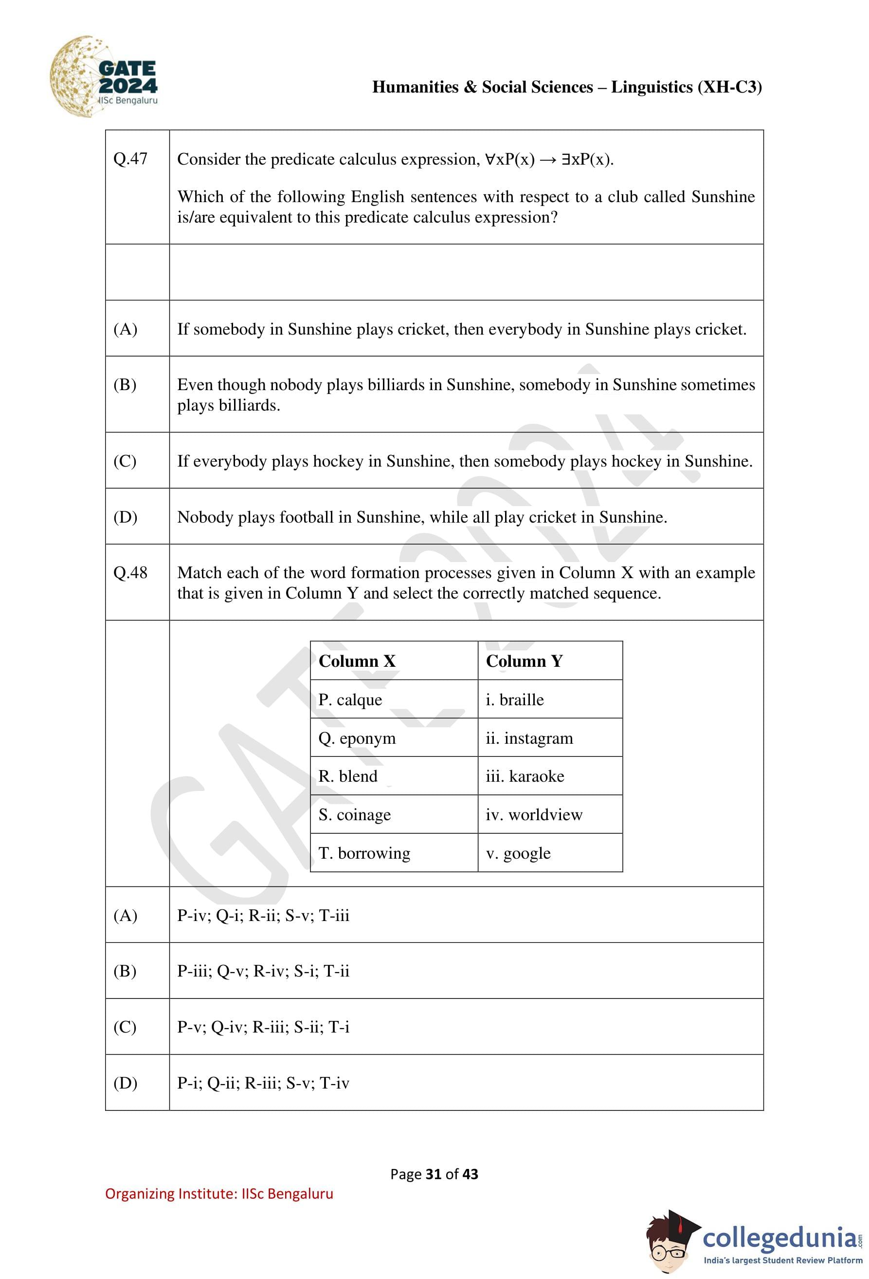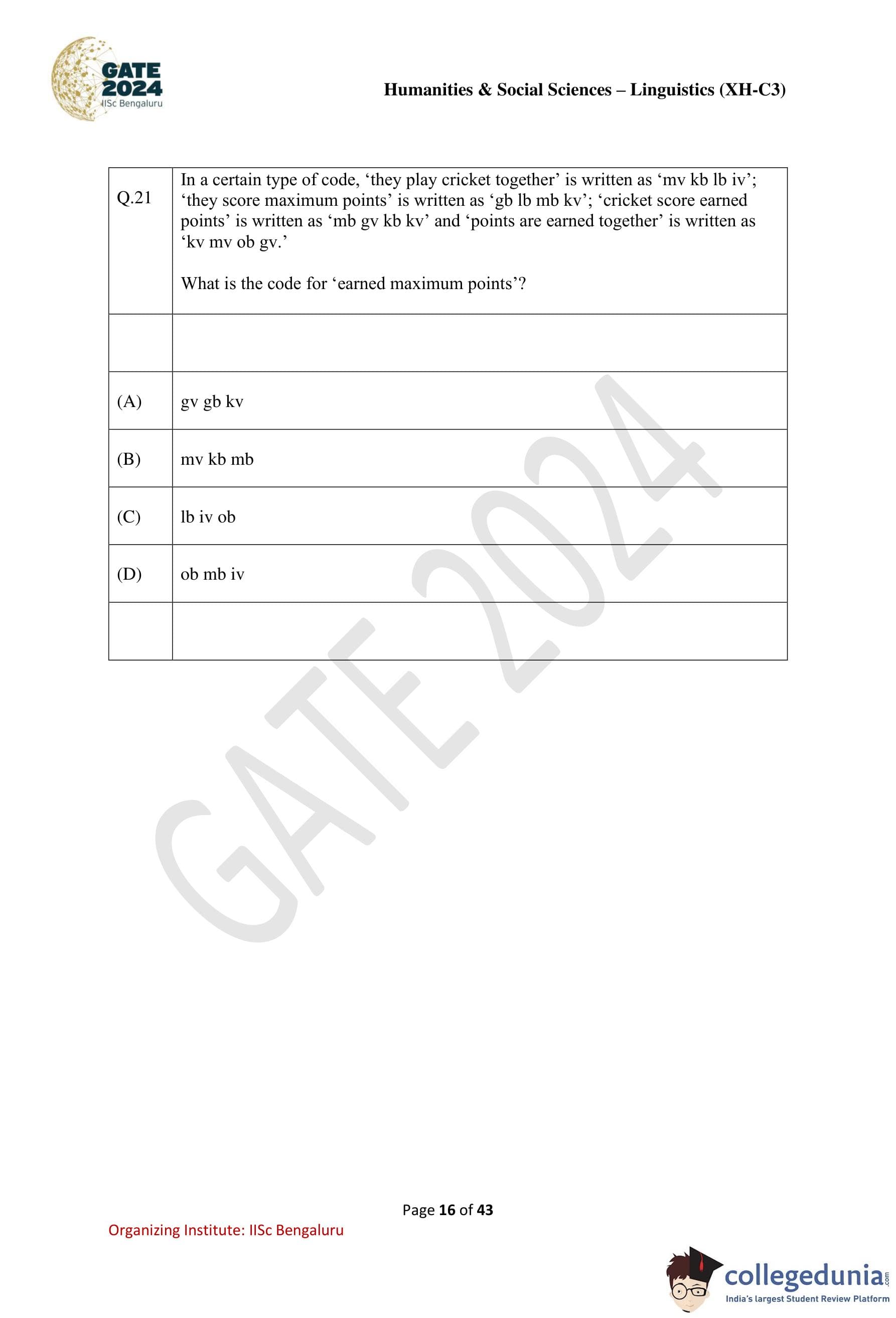 GATE 2024 Linguistics (XH-C3) Question Paper Solution