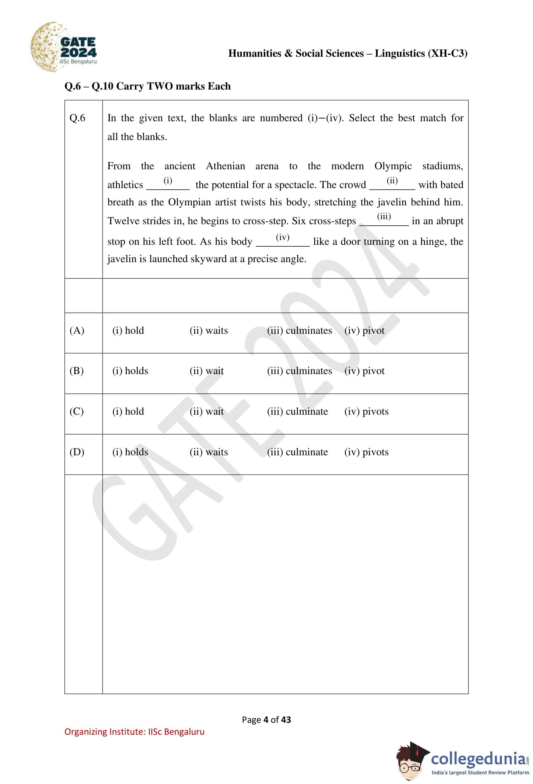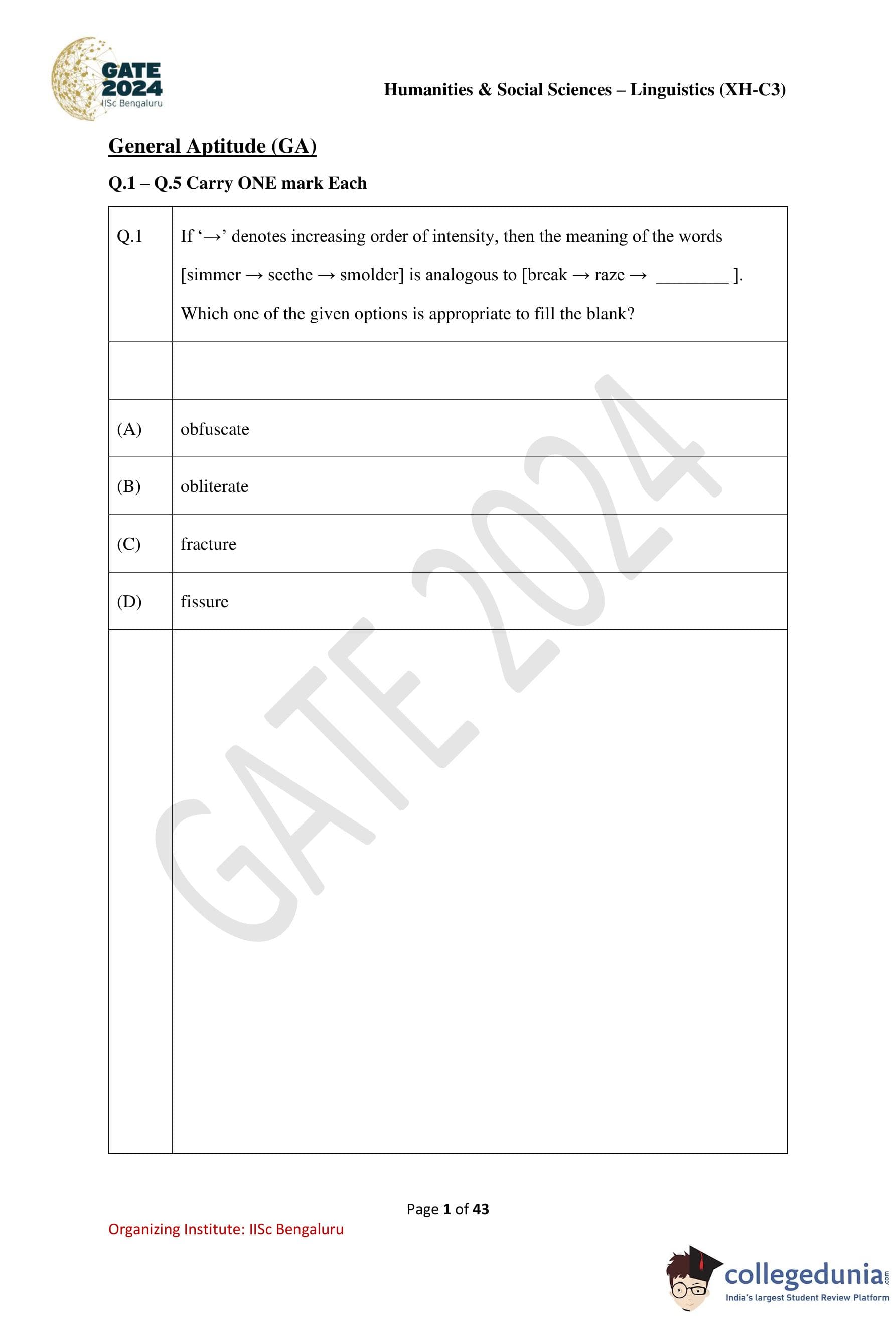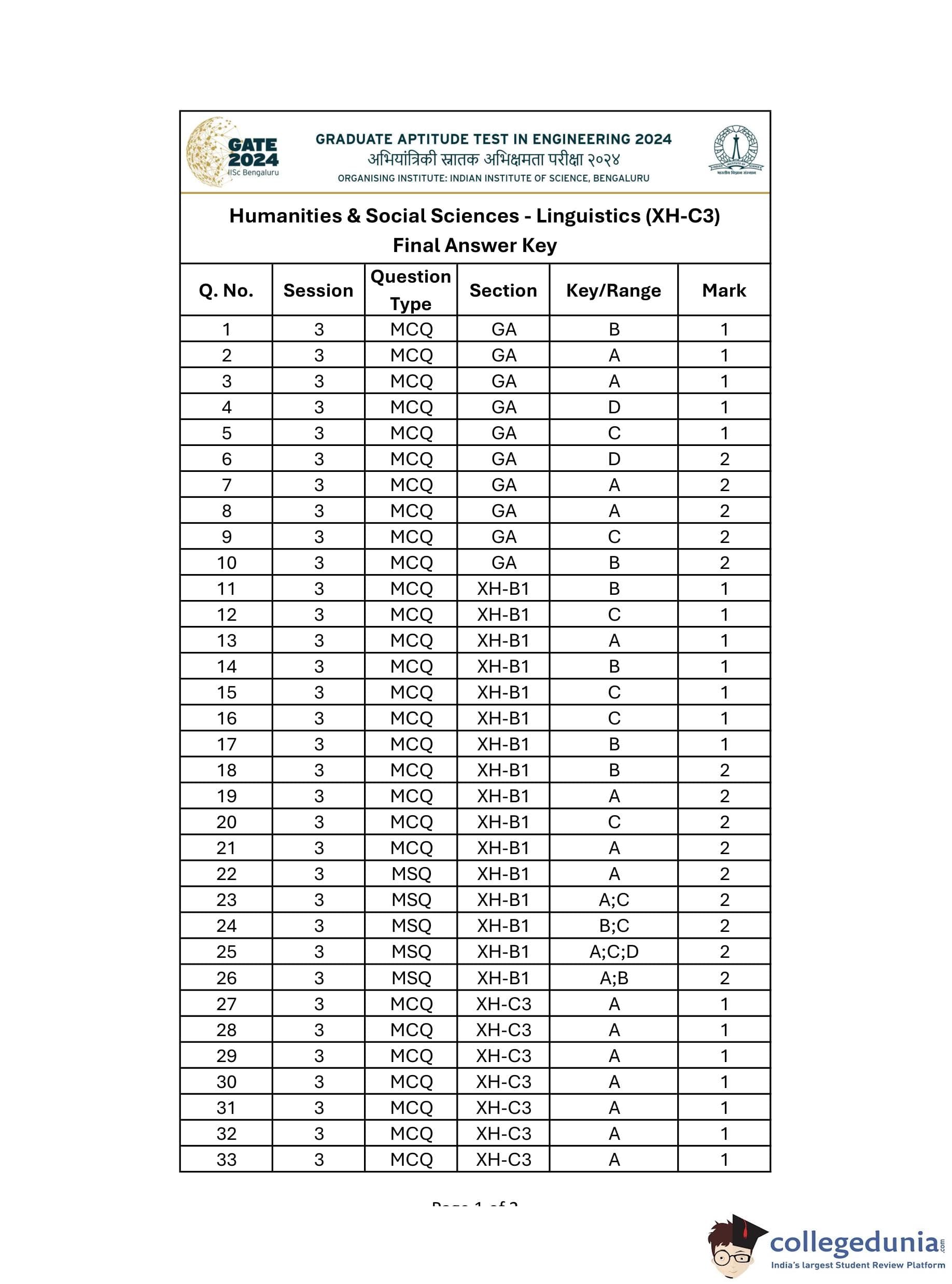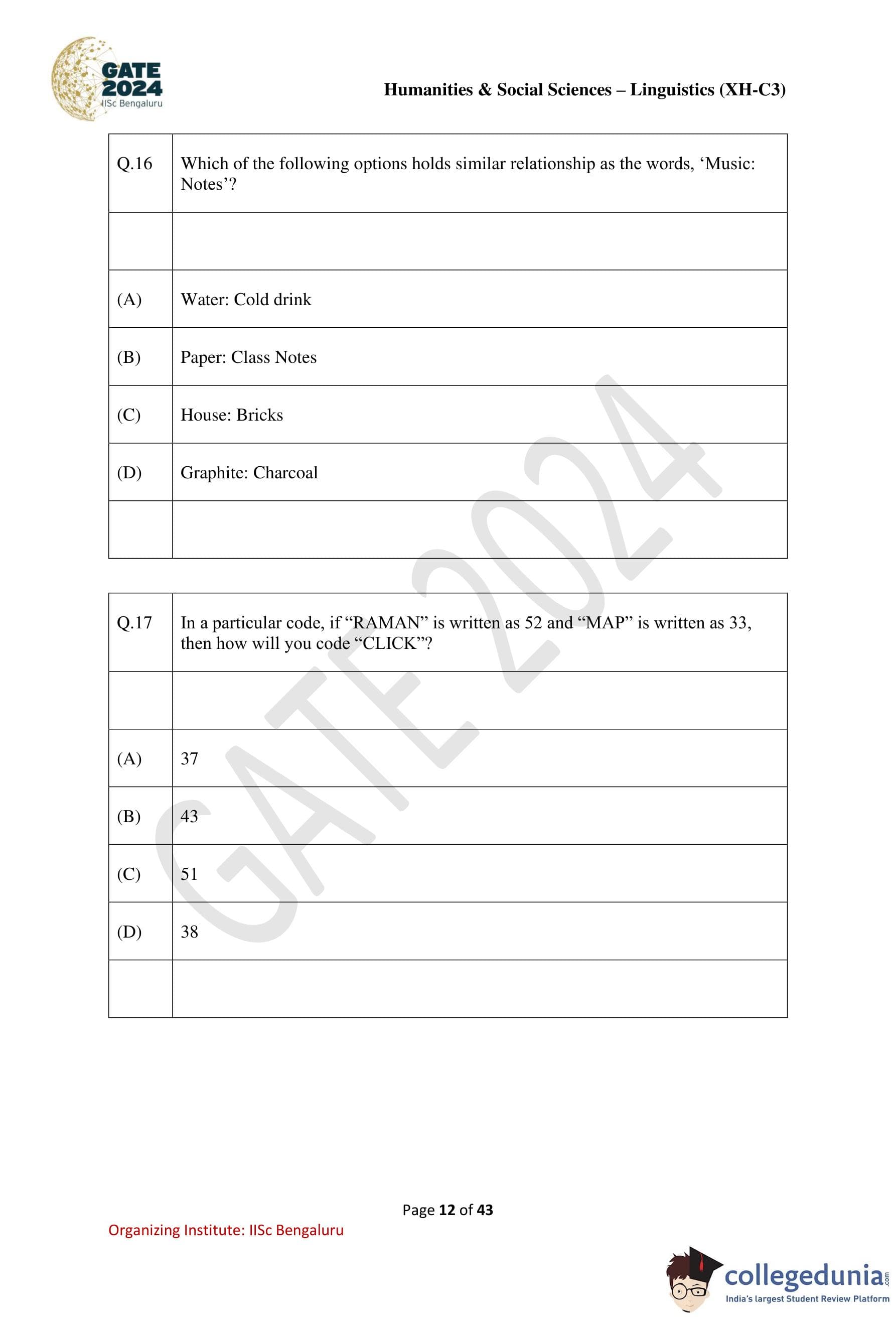 GATE 2024 Linguistics (XH-C3) Question Paper Solution