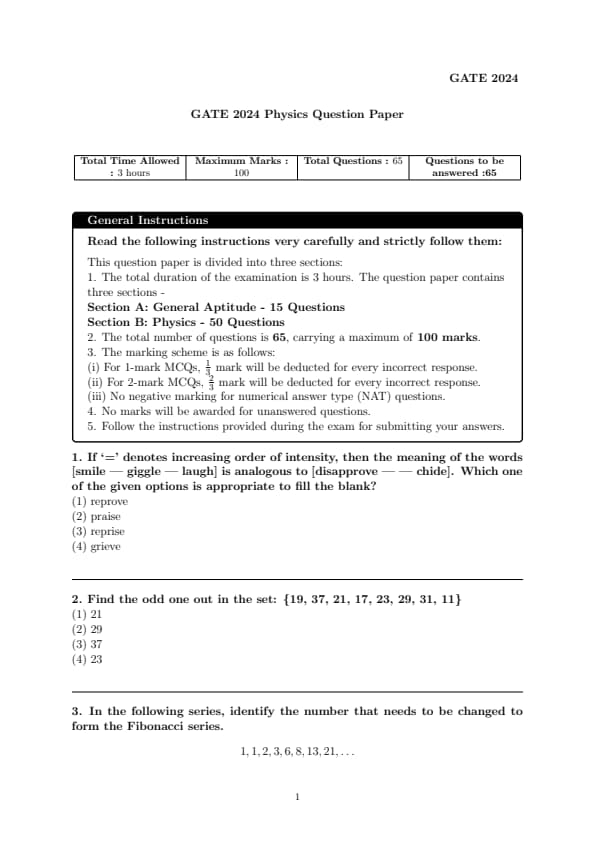 | GATE 2024 Physics Question Paper with Answer Key PDF | Download PDF | Check Solutions |