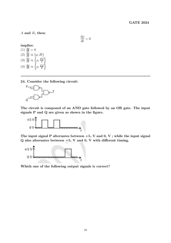 The circuit is composed of an AND gate followed by an OR gate. The input signals P and Q are given as shown in the figure.
