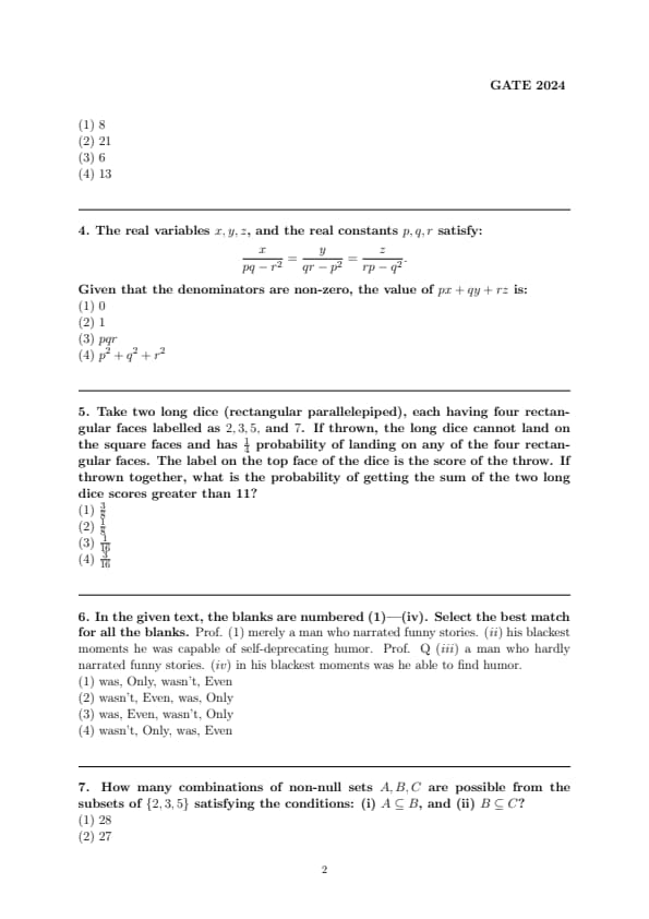 Therefore, \(px + qy + rz = 0\). Quick Tip: To solve such equations, relate all variables through a common factor and simplify the expression to uncover relationships among the coefficients.
