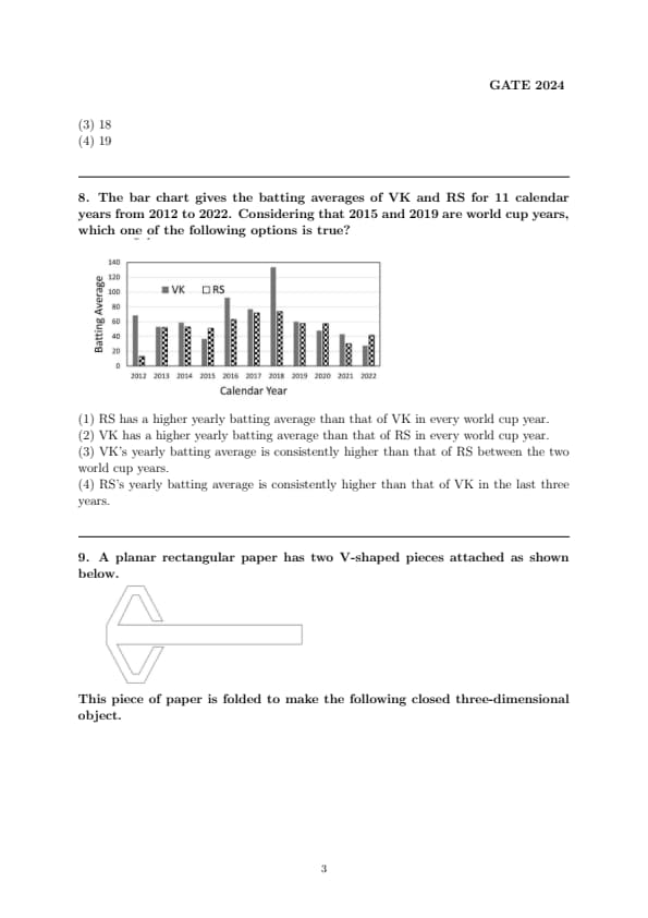 - Statement (D) is incorrect since VK's averages are not consistently lower in the last three years, as shown in 2021 and 2022. Quick Tip: When verifying data interpretation options, ensure to cross-examine all provided statements with the visual data to identify the one that matches accurately across the specified periods.
