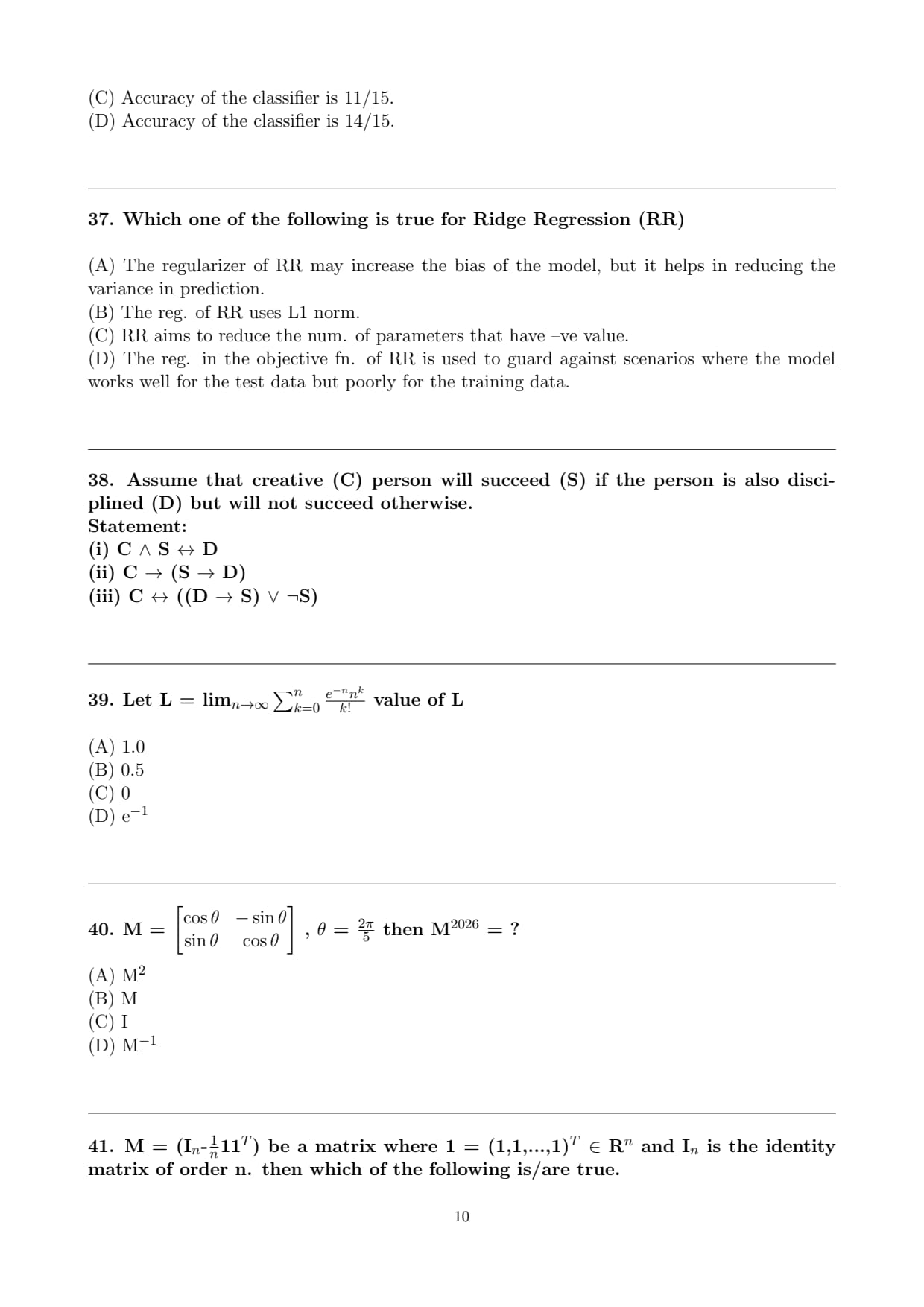 \sin\theta & \cos\theta \end{bmatrix}\) , \(\theta\) = \(\frac{2\pi}{5}\) then M\(^{2026}\) = ?