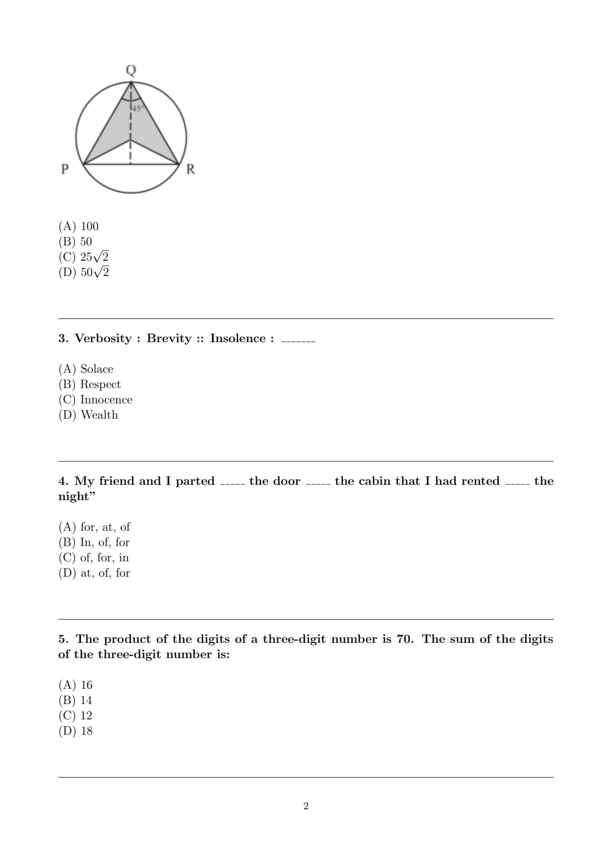 My friend and I parted _____ the door _____ the cabin that I had rented _____ the night"