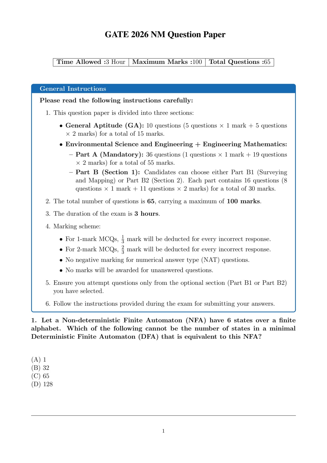 | GATE 2026 NM Question Paper with Solution PDF | Download | Check Solutions |