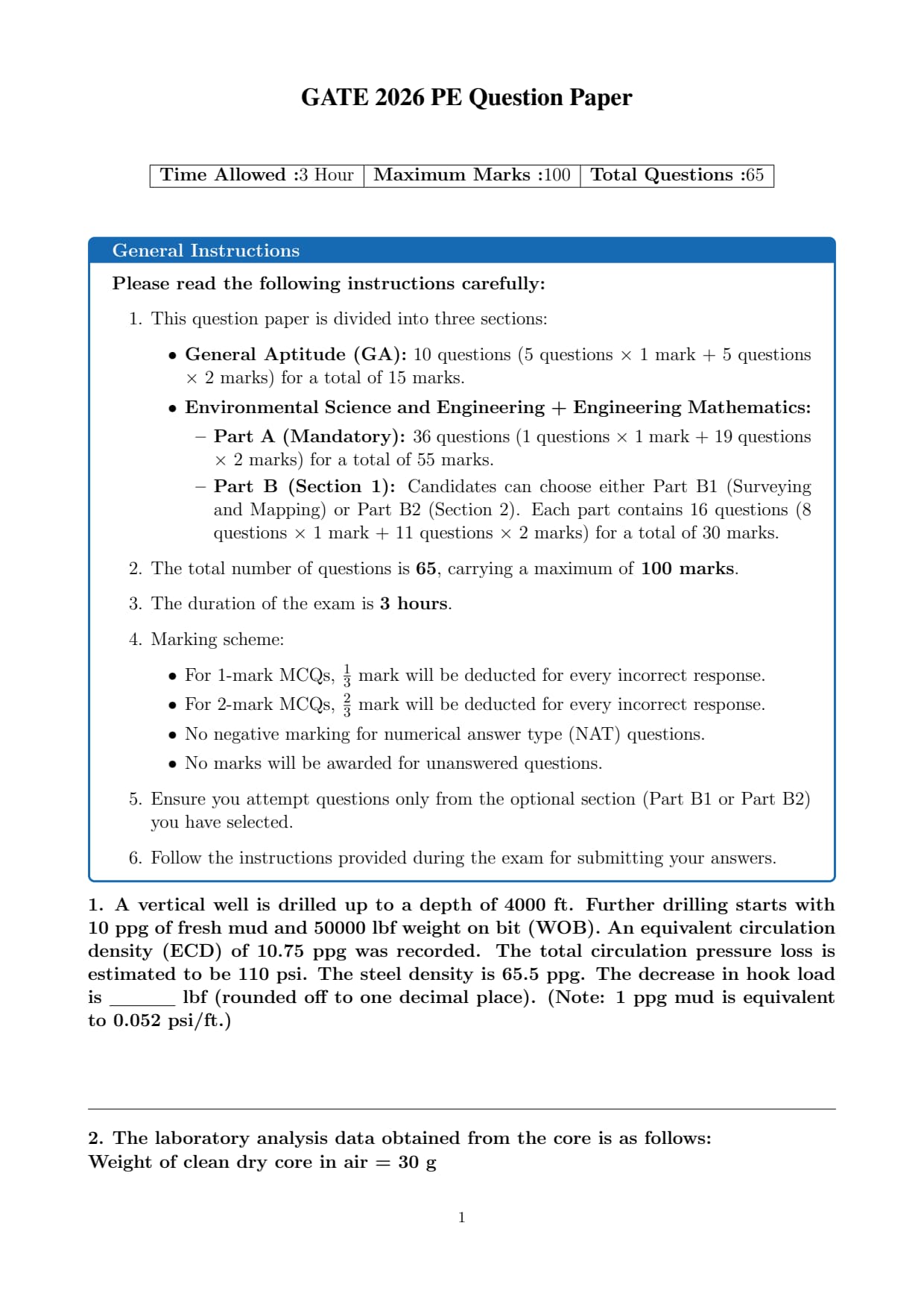 The GATE 2026 Petroleum Engineering (PE) Slot 2 Question Paper with Solution PDF will be provided here after the exam is completed. The GATE PE exam is scheduled on February 8th, in the Afternoon Session (AN) from 2:30 PM to 5:30 PM.