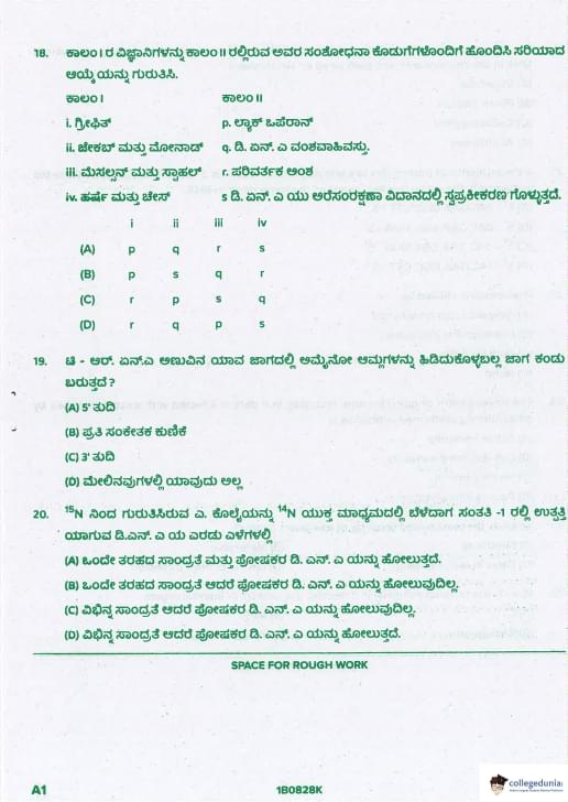 | KCET Biology Question Paper 2021 with Answer Key | Check Solution |