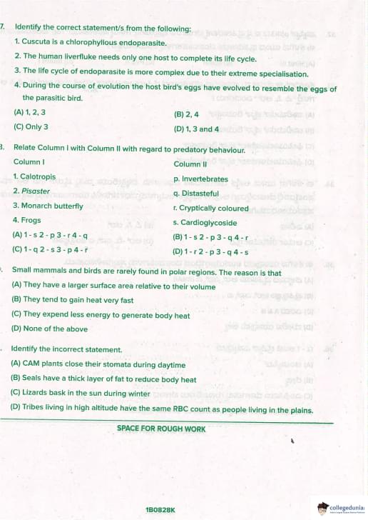 4. Correct — This is co-evolution in brood parasitism (e.g., cuckoo and crow). Quick Tip: Brood parasitism → Co-evolution → Cuckoo lays eggs that mimic host (crow) eggs → statement 4 is correct.