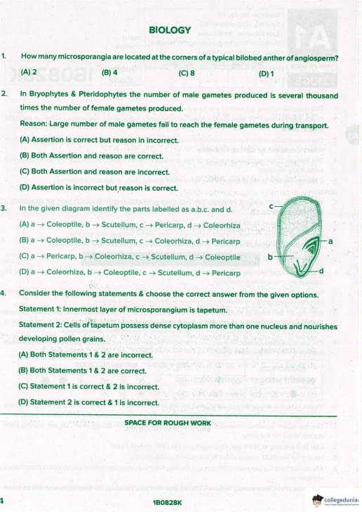 Hence total microsporangia = 2 lobes × 2 = 4. Quick Tip: Remember: “Dithecous anther → 4 microsporangia” (standard for most angiosperms).