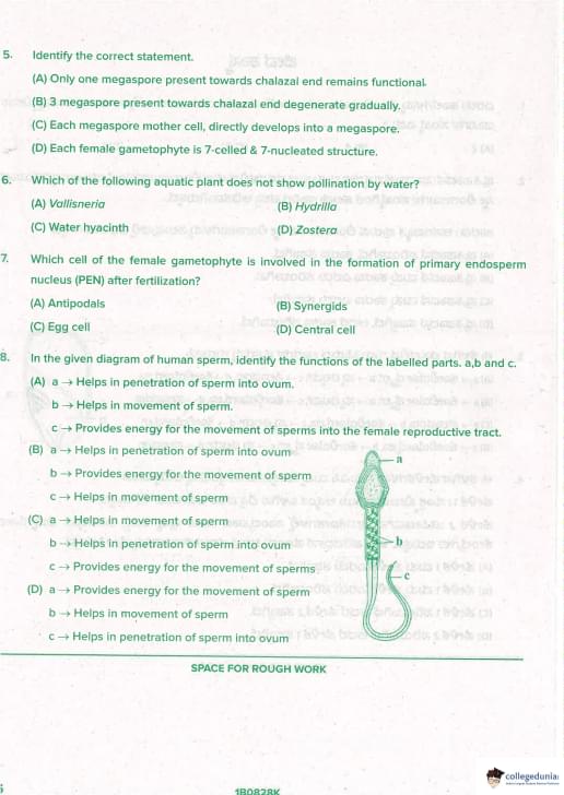 In bryophytes and pteridophytes, antherozoids are motile and need water to swim to the archegonium. Most male gametes are lost during transport; therefore, thousands are produced to ensure at least a few reach the egg. Quick Tip: This is the classic reason for “male excess” in all plants that depend on water for fertilisation.