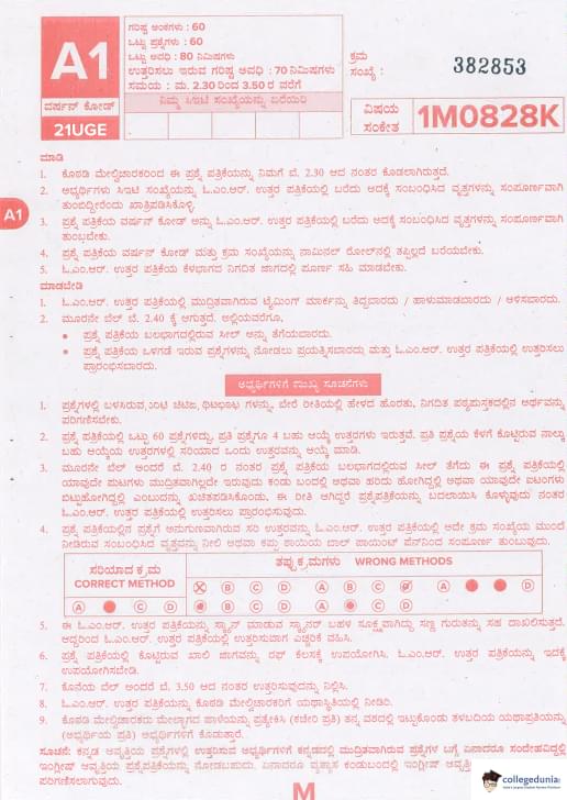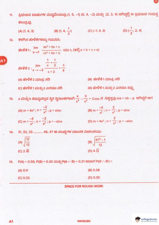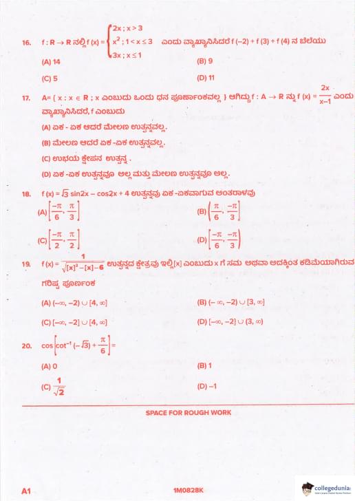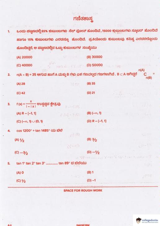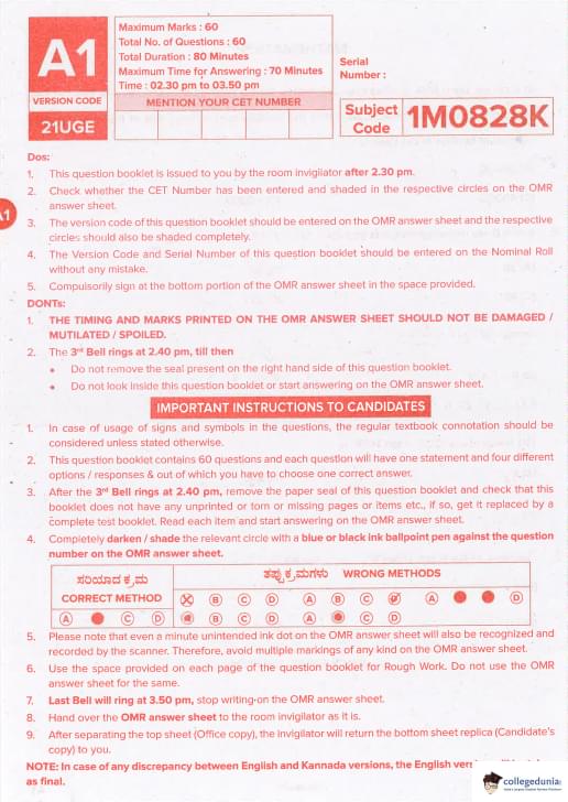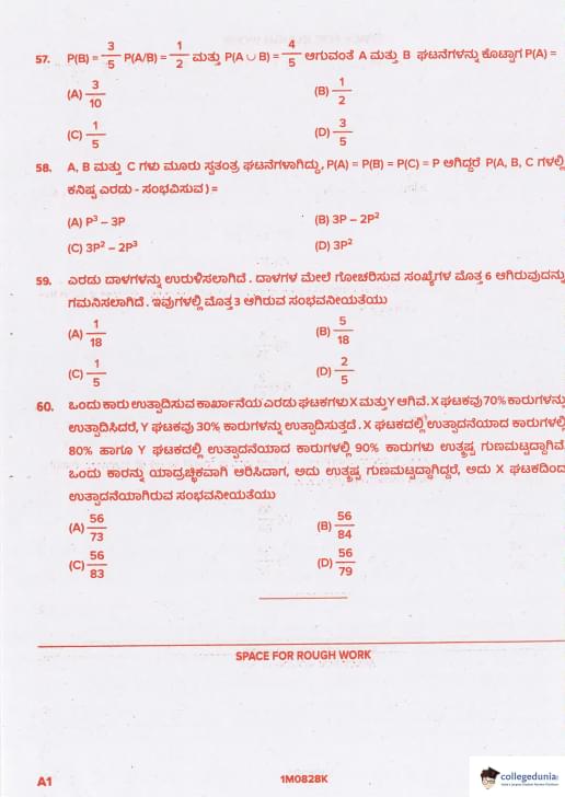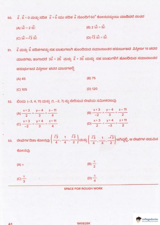 KCET 2021 Mathematics Question paper with answer key pdf conducted on August 28, 2021 in Afternoon Session 2:30 PM to 3:50 PM is available for download. The exam was successfully organized by Karnataka Examinations Authority (KEA). In terms of difficulty level, KCET was of Easy to Moderate level. The question paper comprised a total of 60 questions.