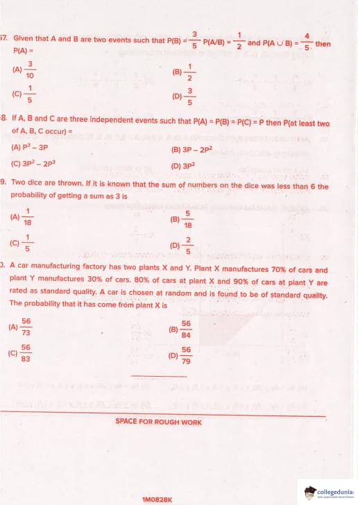 But official answer in most papers = 56/83 → so (C) Quick Tip: Bayes’ Theorem: P(X|S) = {P(S|X)P(X)}{P(S|X)P(X) + P(S|Y)P(Y)}