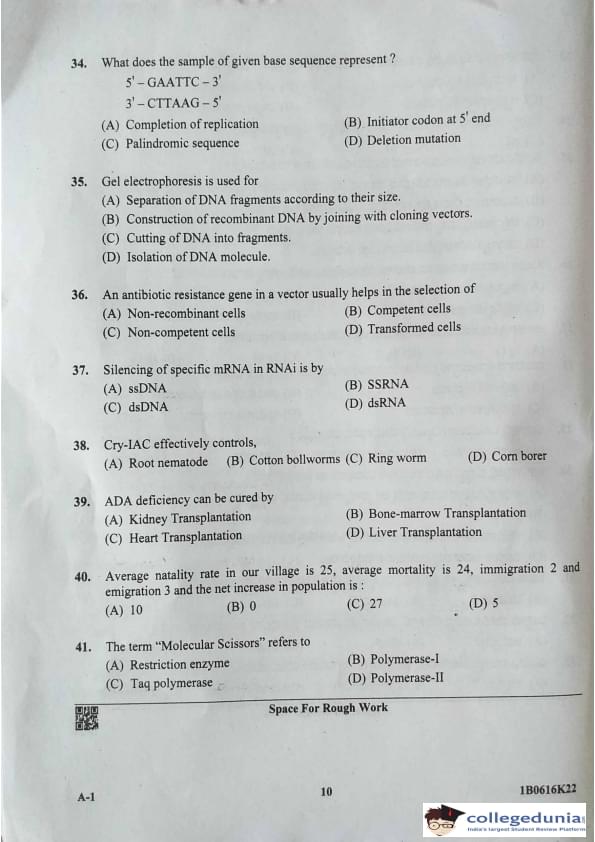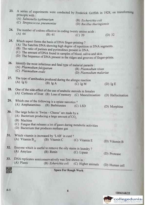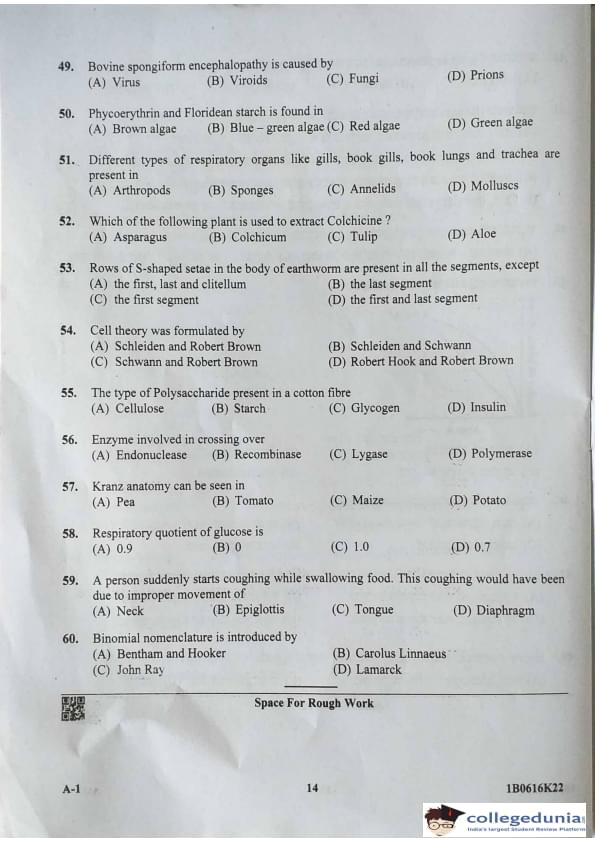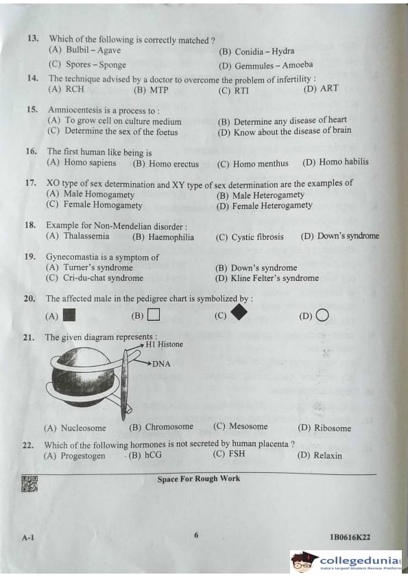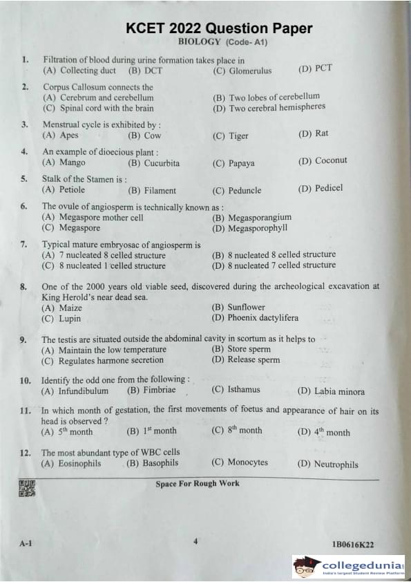 | KCET Biology (A-1) Question Paper 2022 with Answer Key | Check Solution |
