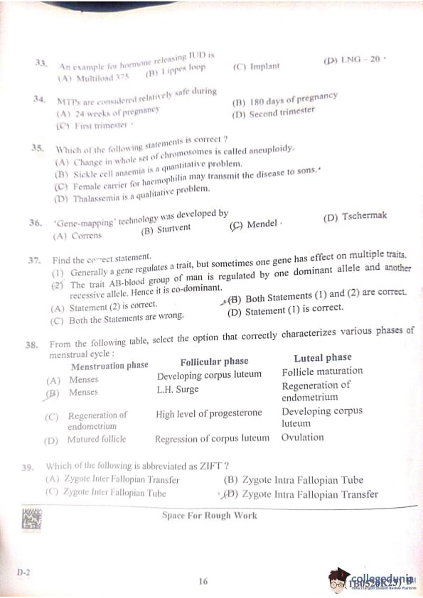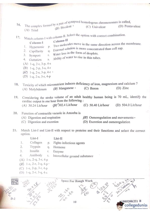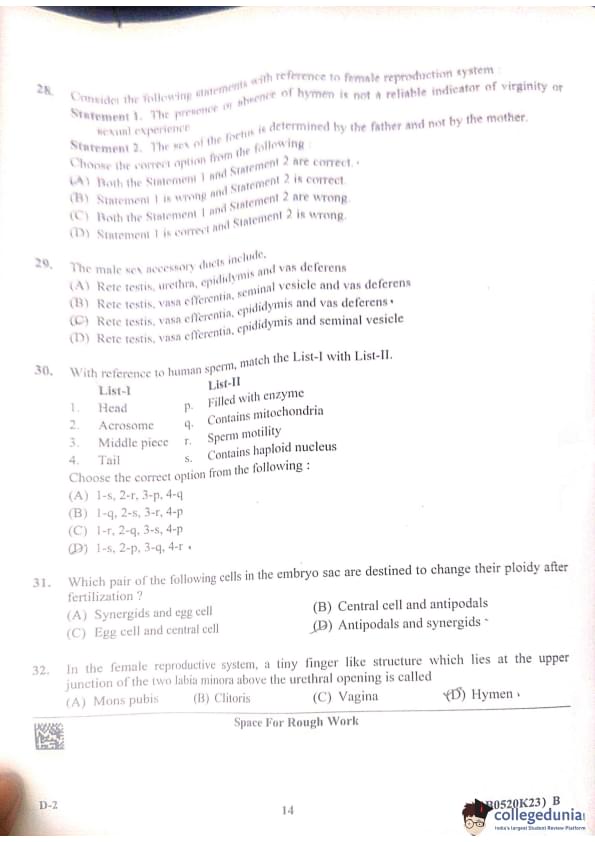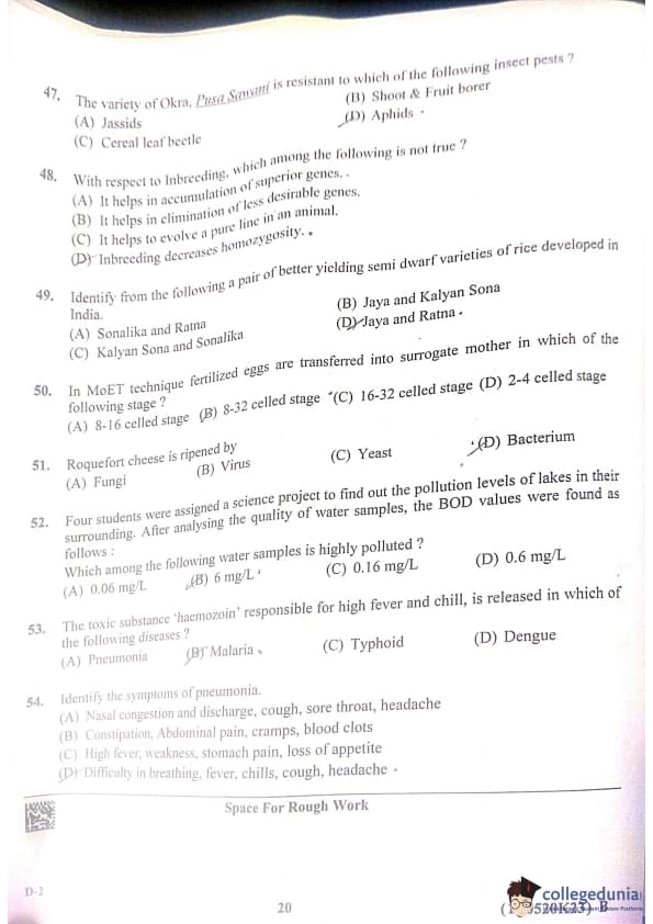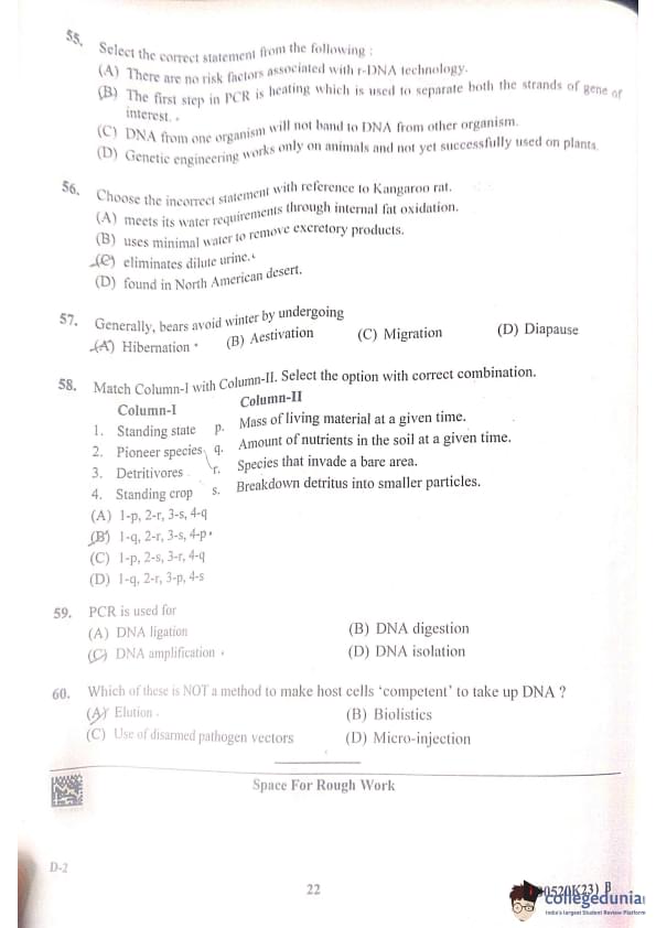 KCET 2023 Biology Question Paper with Answer Key PDF Set D2