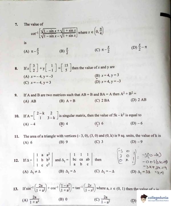 KCET 2023 Mathematics Questions with Solutions