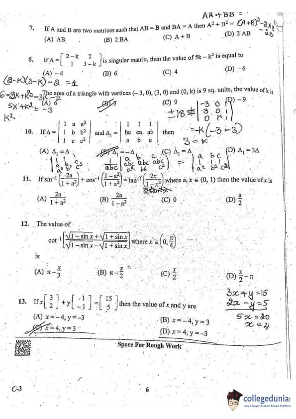 KCET 2023 Mathematics Question Paper with Answer Key PDF Set C3