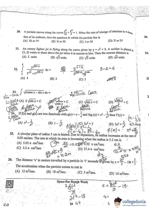 KCET 2023 Mathematics Question Paper Set C3 is available here for download. KCET 2023 Question Paper May 20 Shift 2 2:30 PM to 3:50 PM will be conducted for Mathematics Paper. KCET 2023 Question Paper consisted of 60 MCQ-based questions in total. Each candidate is awarded +1 for correct answers, however, there will be no negative marking for incorrect responses. Students got 80 minutes to attempt KCET 2023 Mathematics Question Paper.