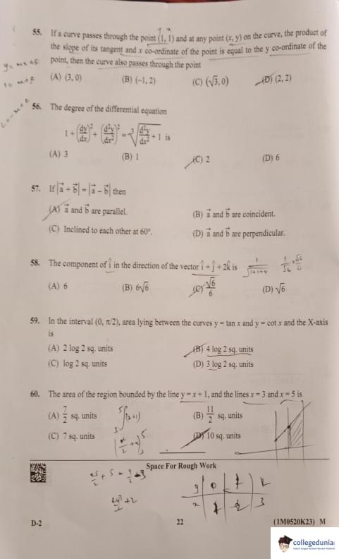 KCET 2023 Mathematics Question Paper Set D2 is available here for download. KCET 2023 Question Paper May 20 Shift 2 2:30 PM to 3:50 PM was conducted for Mathematics Paper. KCET 2023 Question Paper included 60 MCQ-based questions in total. Each candidate is awarded +1 for correct answers, however, there will be no negative marking for incorrect responses. Students got 80 minutes to attempt KCET 2023 Mathematics Question Paper.