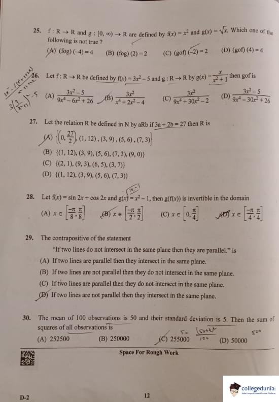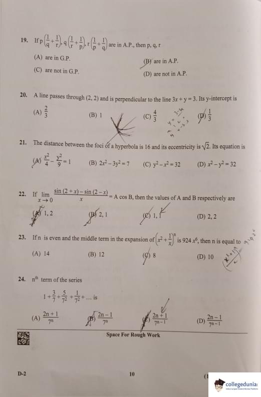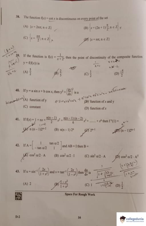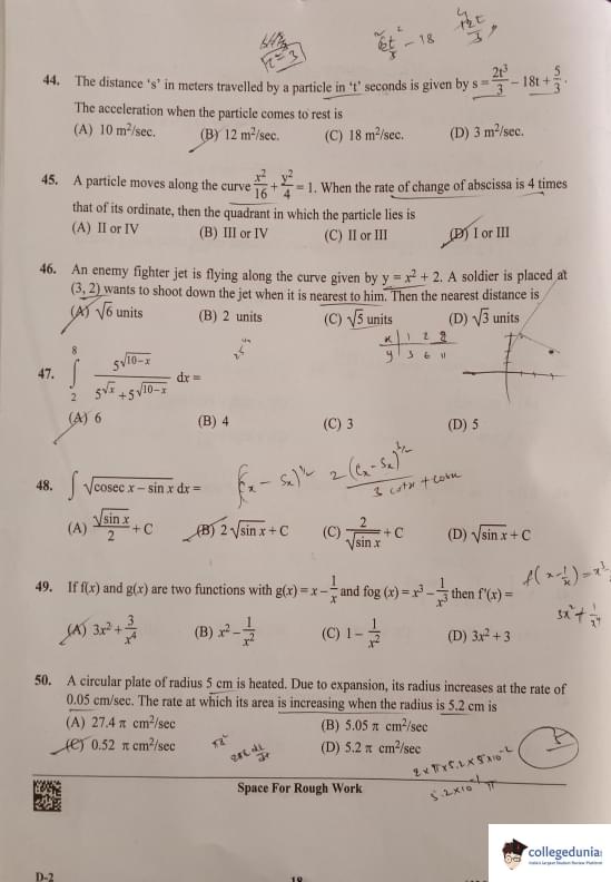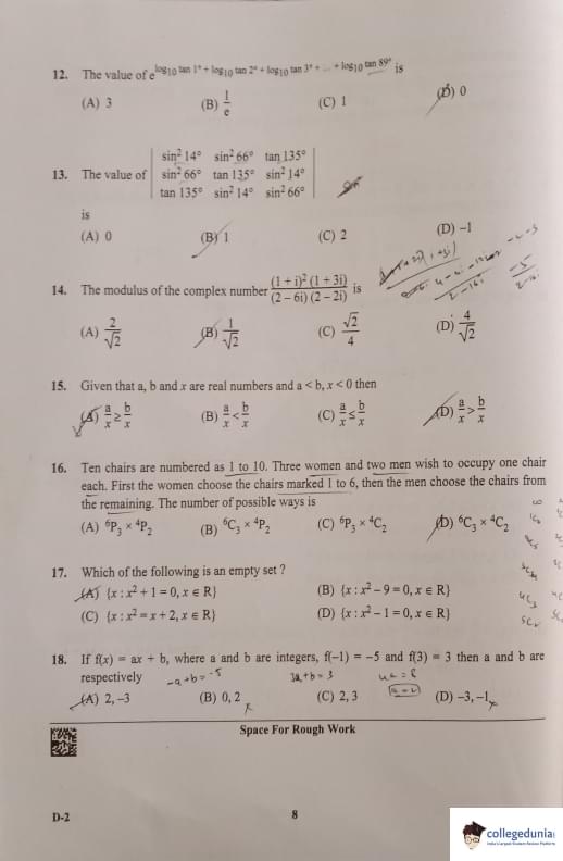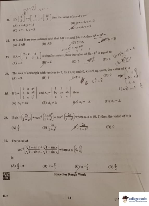 KCET 2023 Mathematics Question Paper with Answer Key PDF Set D2