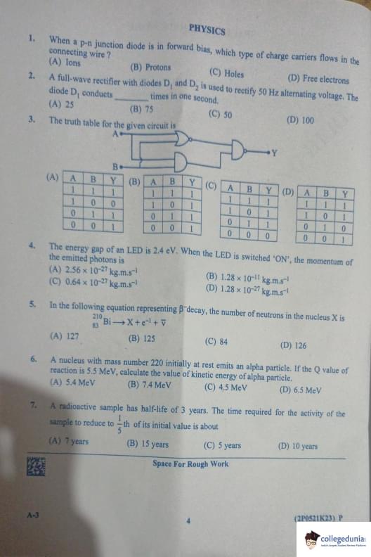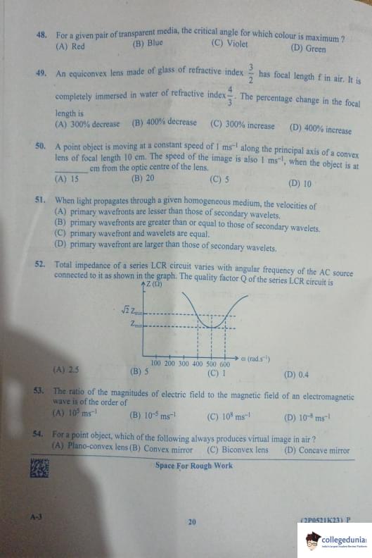 KCET 2023 Physics Question Paper A3 is available for download here. KCET 2023 Question Paper May 21 Shift 1 10:30 AM to 11:50 AM was conducted for Physics Paper. KCET 2023 Question Paper included 60 MCQ-based questions in total. Each candidate is awarded +1 for correct answers, however, there will be no negative marking for incorrect responses. Students got 80 minutes to attempt KCET 2023 Physics Question Paper.