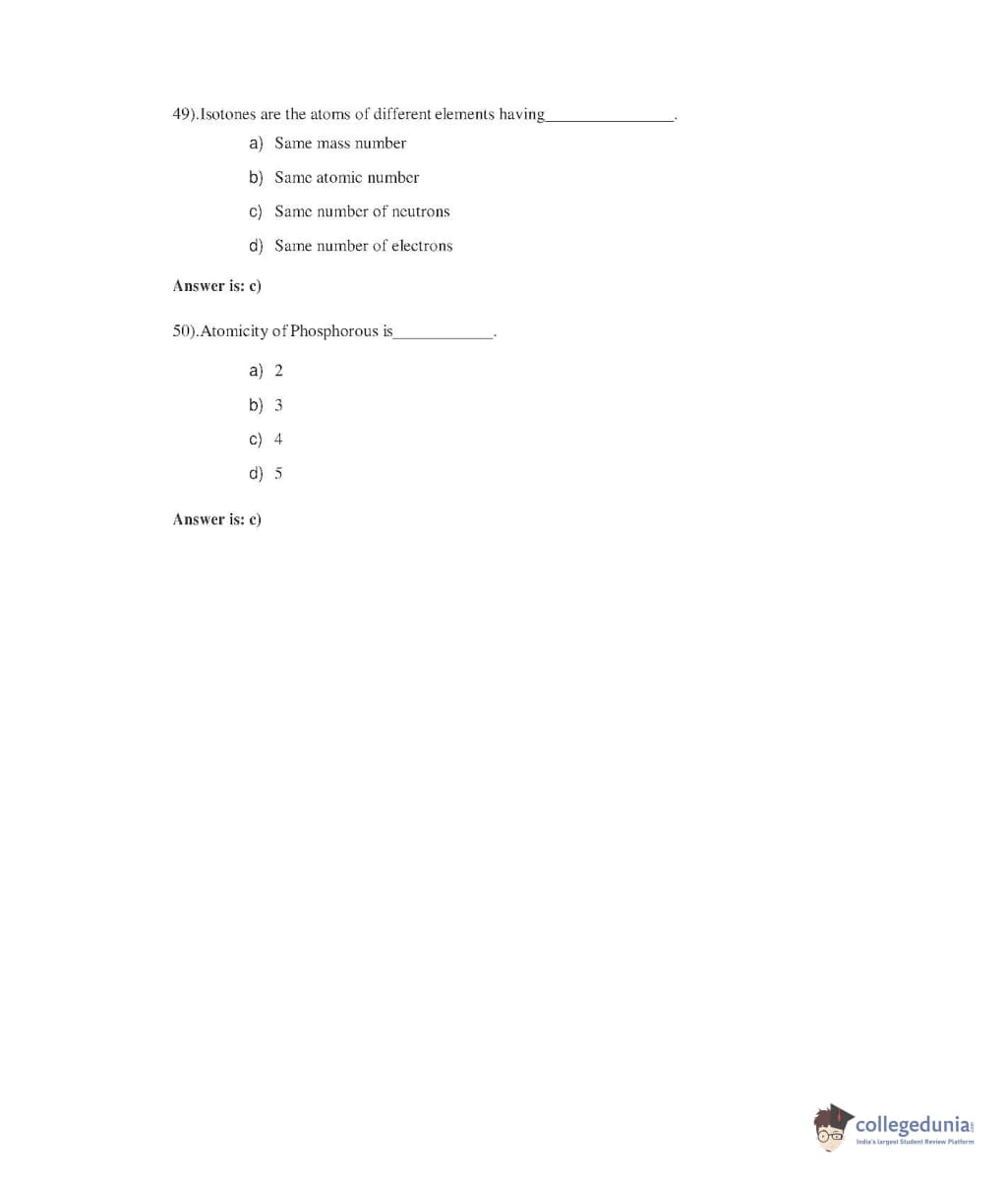 | SRMS EET 2019 Chemistry Question Paper PDF | SRMS EET 2019 Chemistry Answer Key PDF |