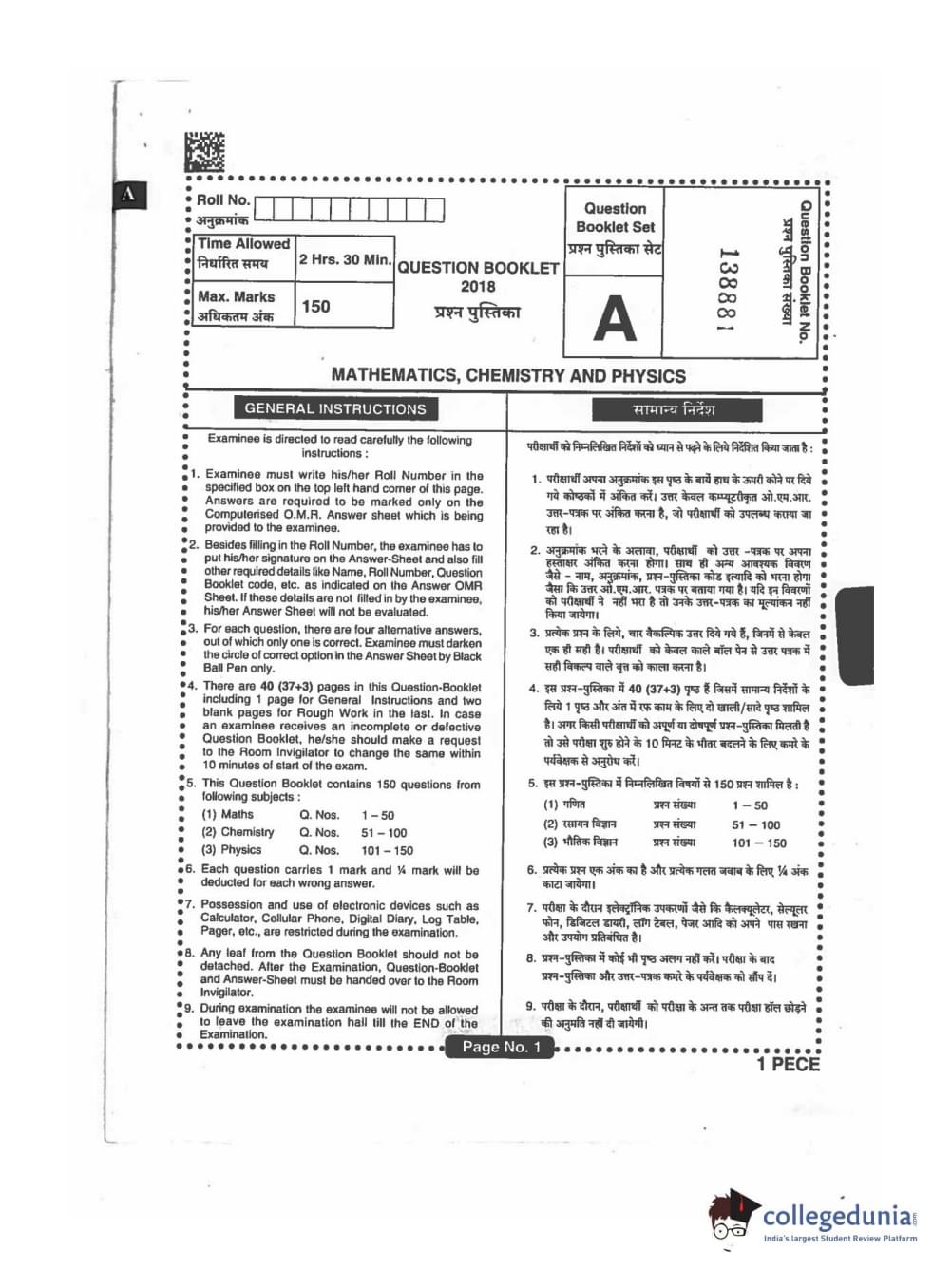 Jharkhand Polytechnic 2018 Question paper Set A with answer key pdf conducted on May 19 in Forenoon Session 10 AM to 12:30 PM is available for download. The exam was successfully organized by JCECE Board. The question paper comprised a total of 150 questions divided among 3 sections.