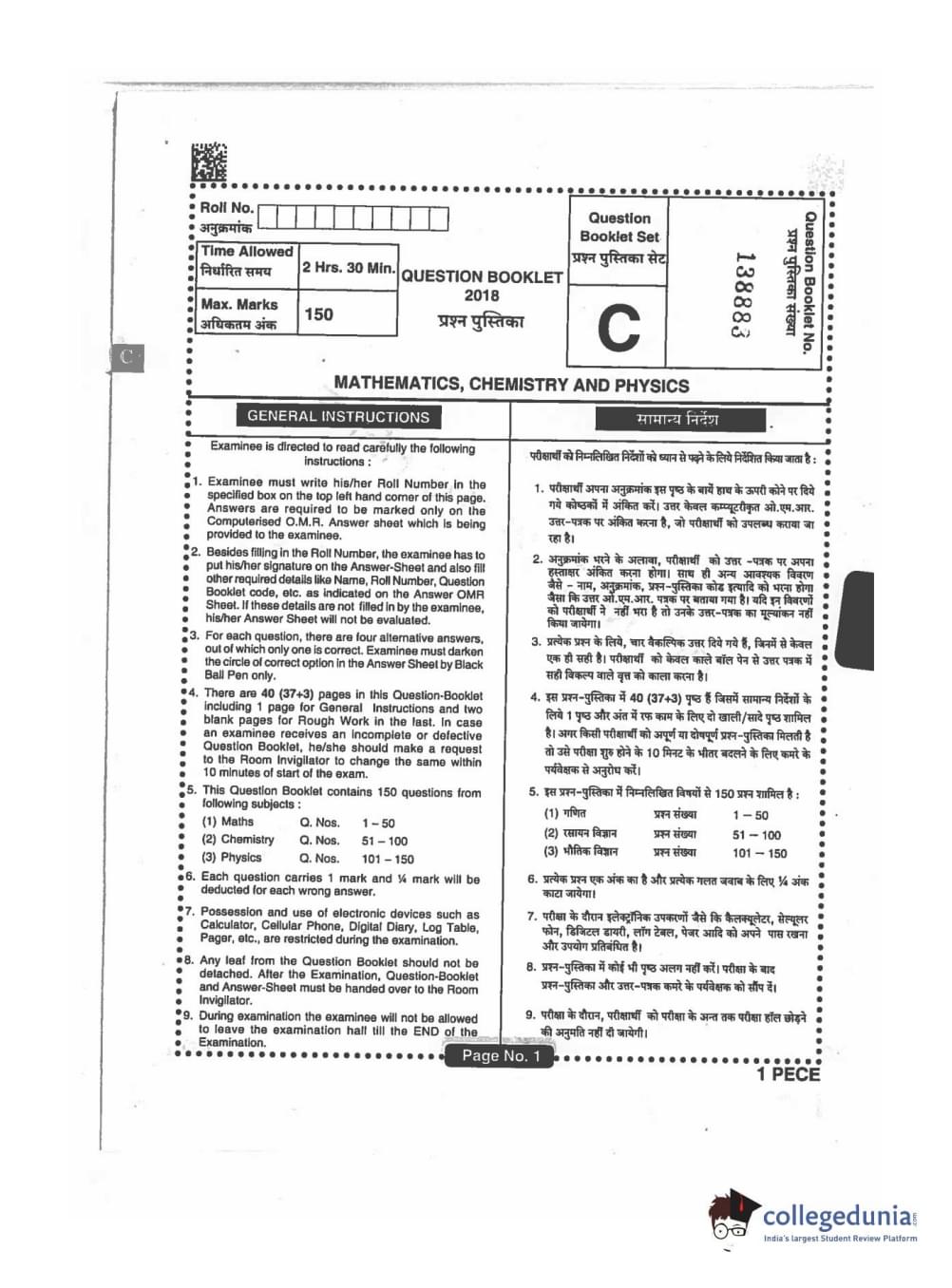 Jharkhand Polytechnic 2018 Set C Question paper with answer key pdf conducted on May 19 in Forenoon Session 10 AM to 12:30 PM is available for download. The exam was successfully organized by JCECE Board. The question paper comprised a total of 150 questions divided among 3 sections.
