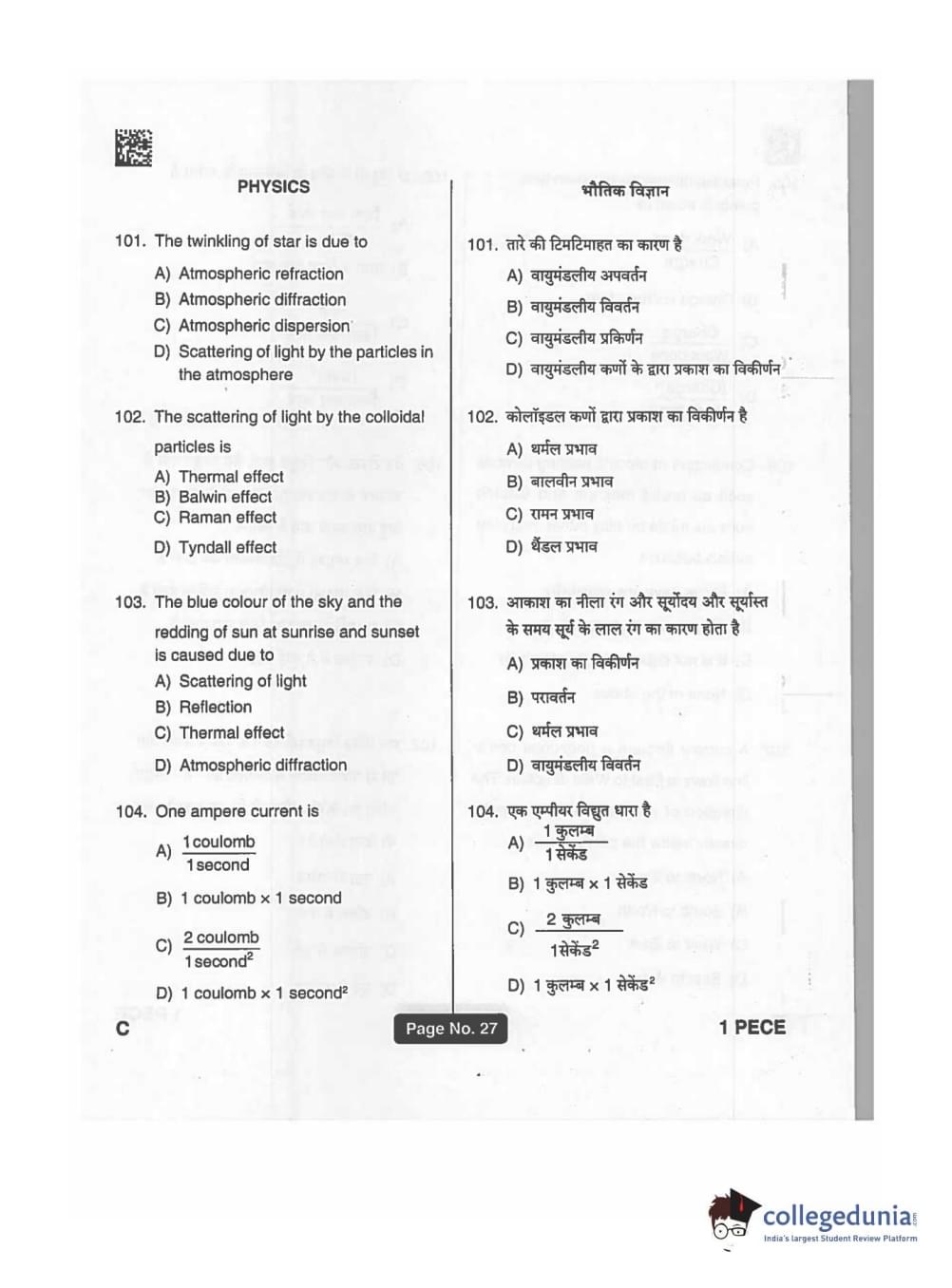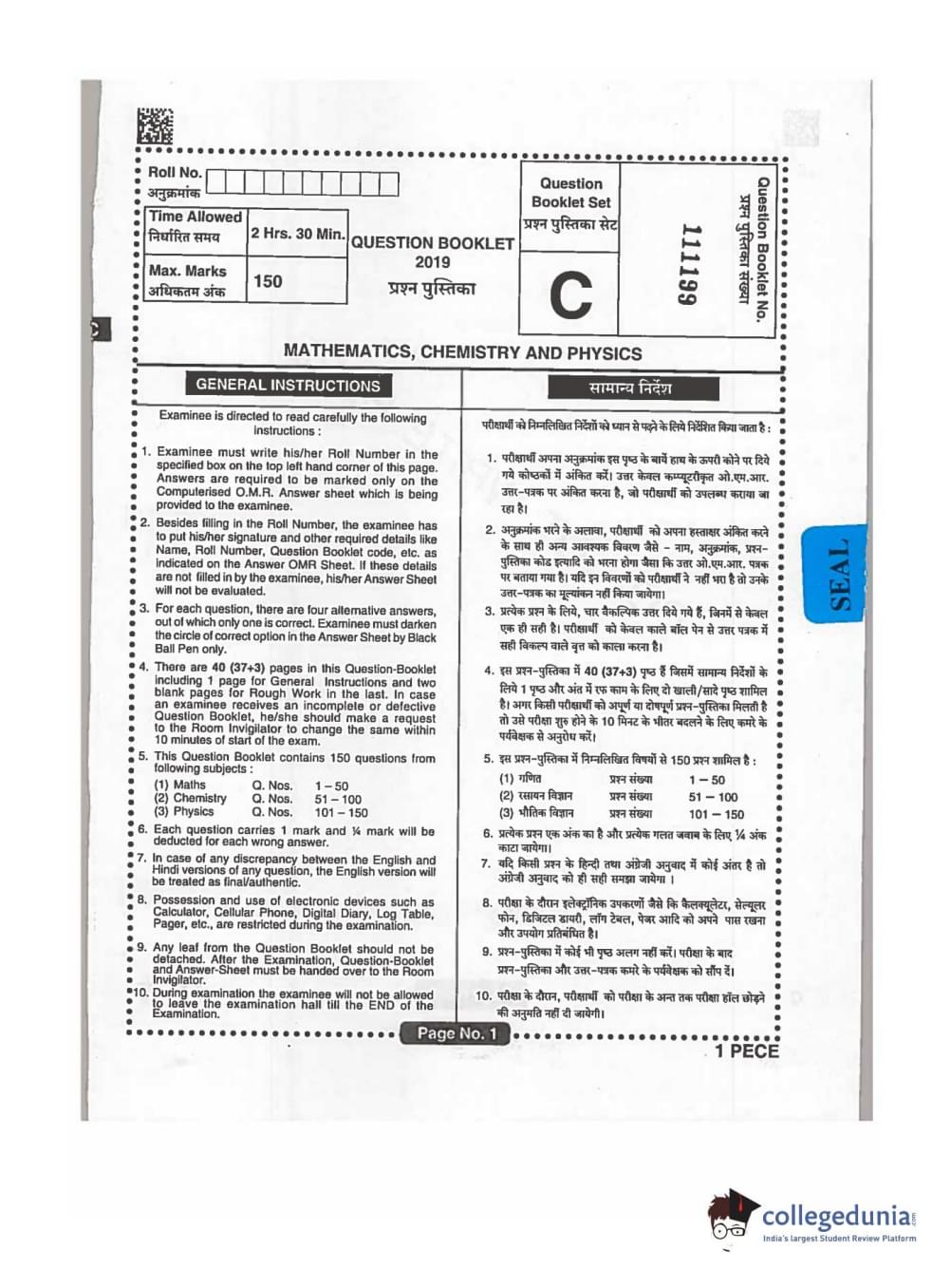 Jharkhand Polytechnic 2019 Question paper with answer key pdf conducted on May 26 for SET C is available for download. The exam was successfully organized by JCECE Board. The question paper comprised a total of 150 questions divided among 3 sections.