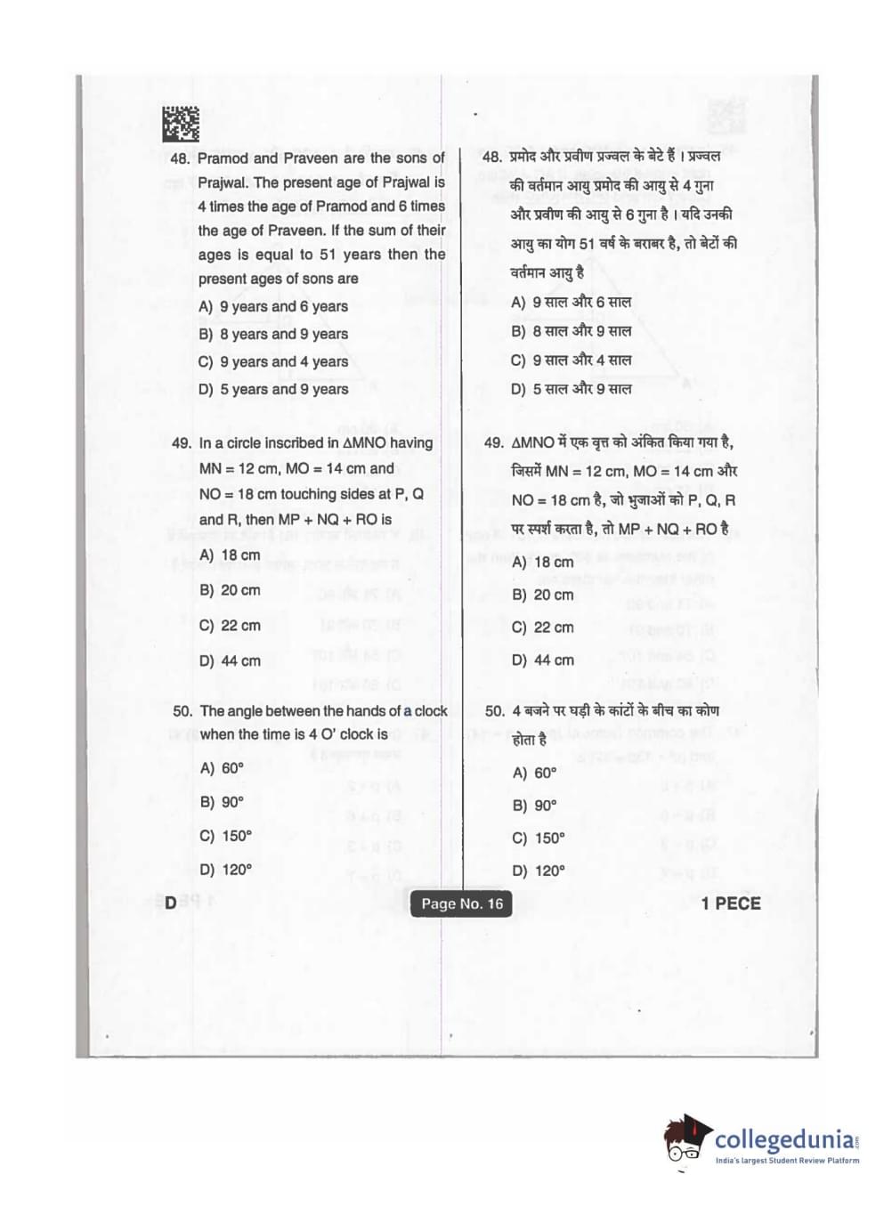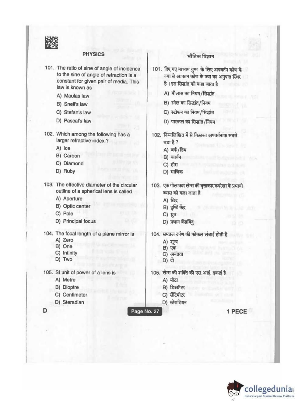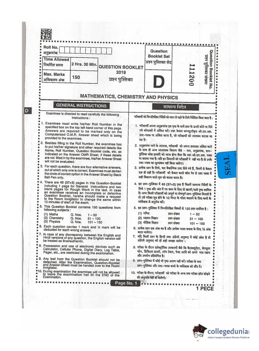 Jharkhand Polytechnic 2019 Question paper with answer key pdf conducted on May 26 for SET D is available for download. The exam was successfully organized by JCECE Board. The question paper comprised a total of 150 questions divided among 3 sections.
