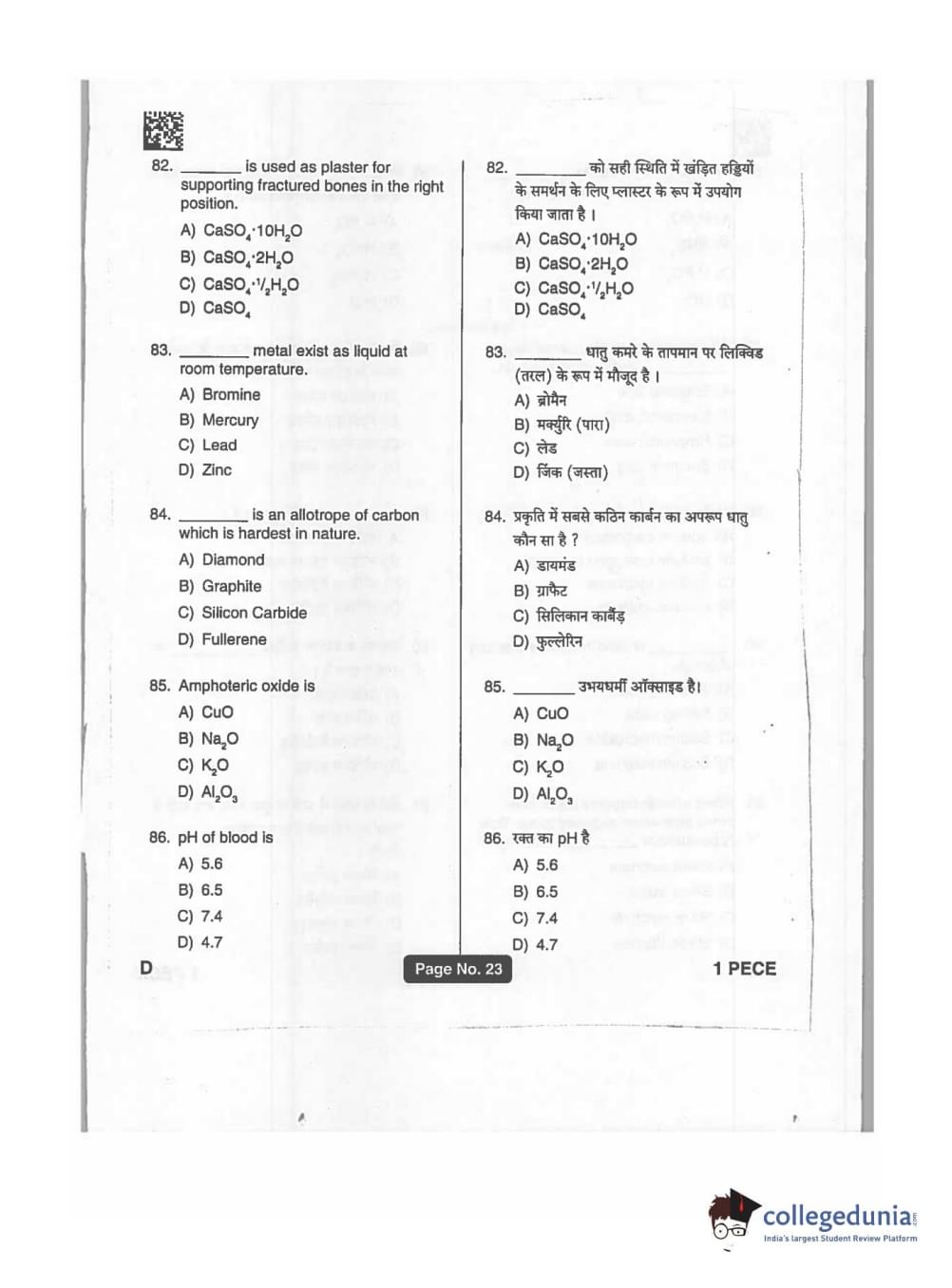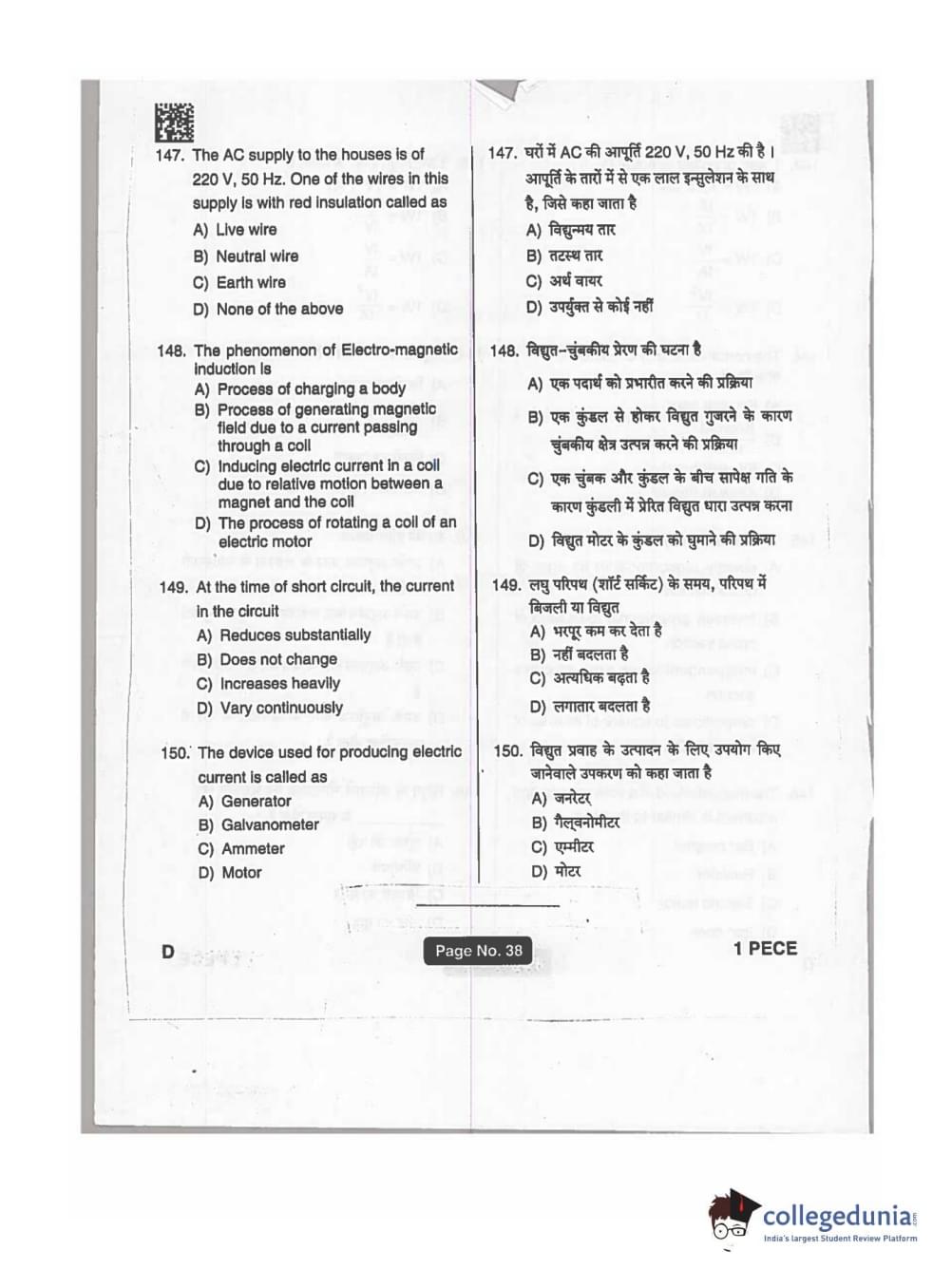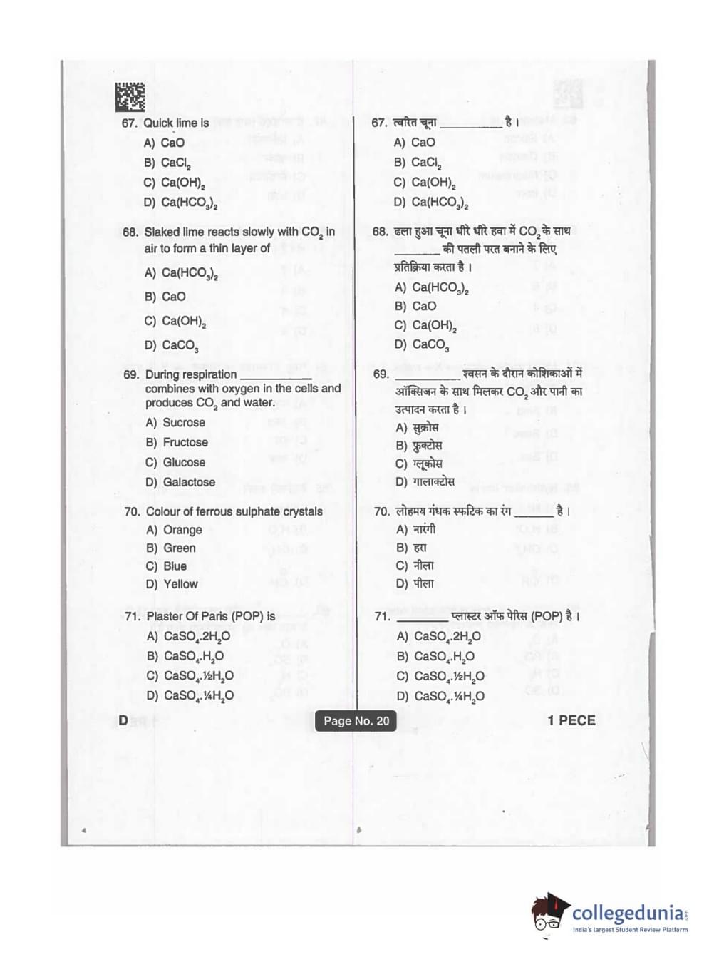 Jharkhand Polytechnic 2019 Set D Question Paper with Answer Key PDFs