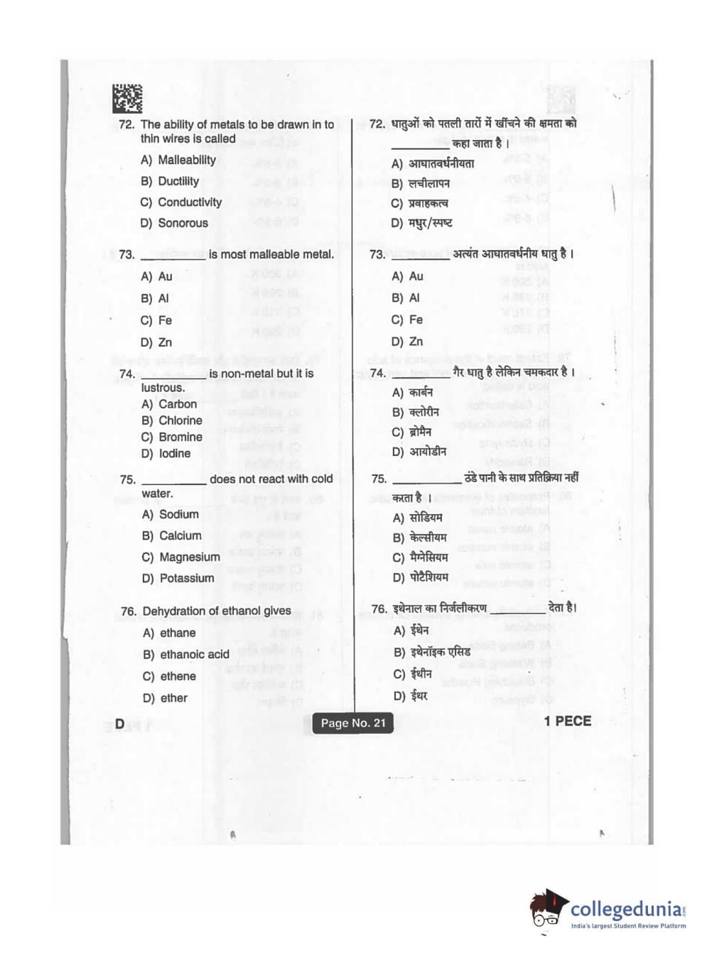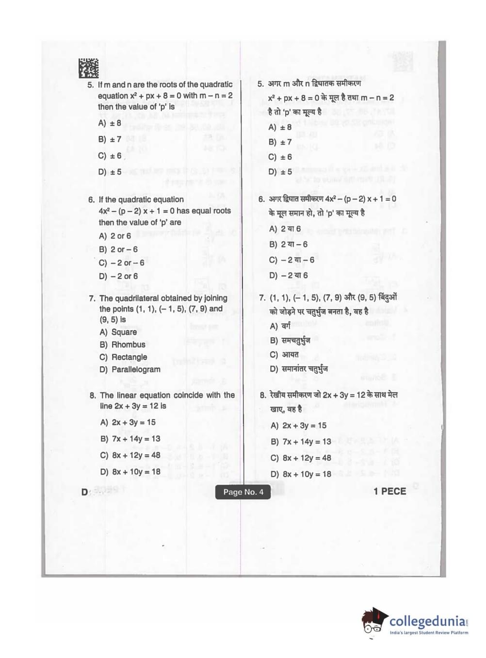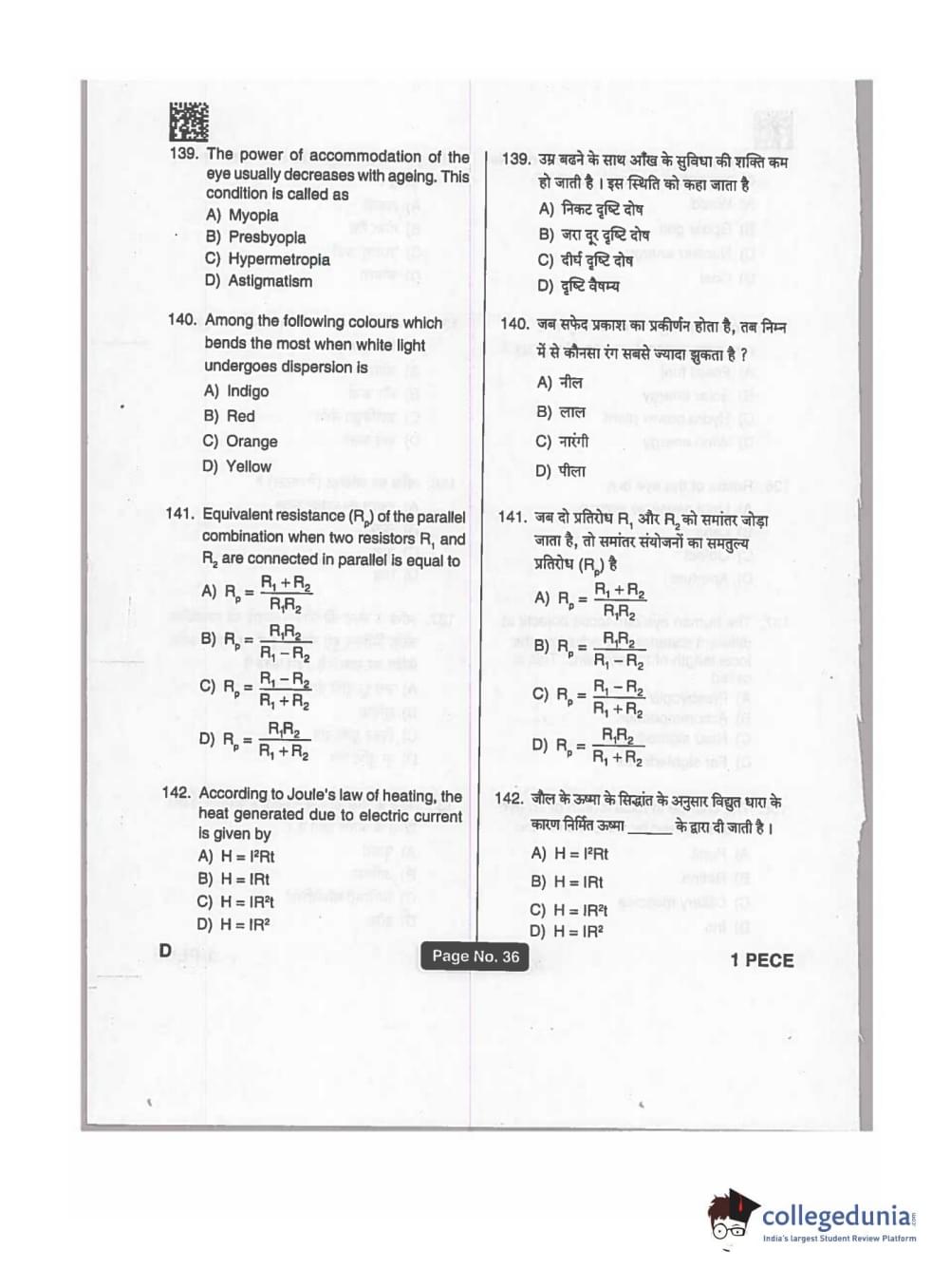 Jharkhand Polytechnic 2019 Set D Question Paper with Answer Key PDFs