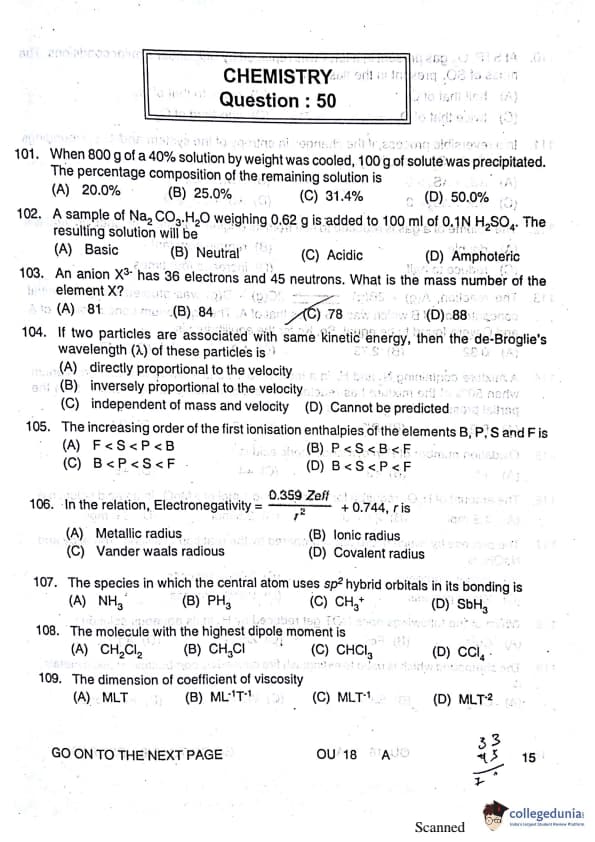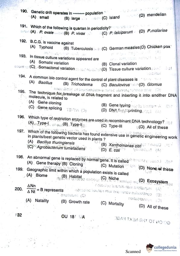 OUAT 2018 Question paper with answer key pdf conducted on April 29, 2018 is available for download. The exam was successfully organized by Orissa University of Agriculture and Technology. The question paper comprised a total of 200 questions.