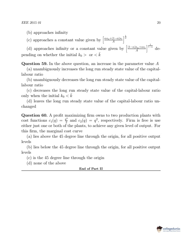 AUCET 2016 MA Economics Question Paper with Answer Key PDF